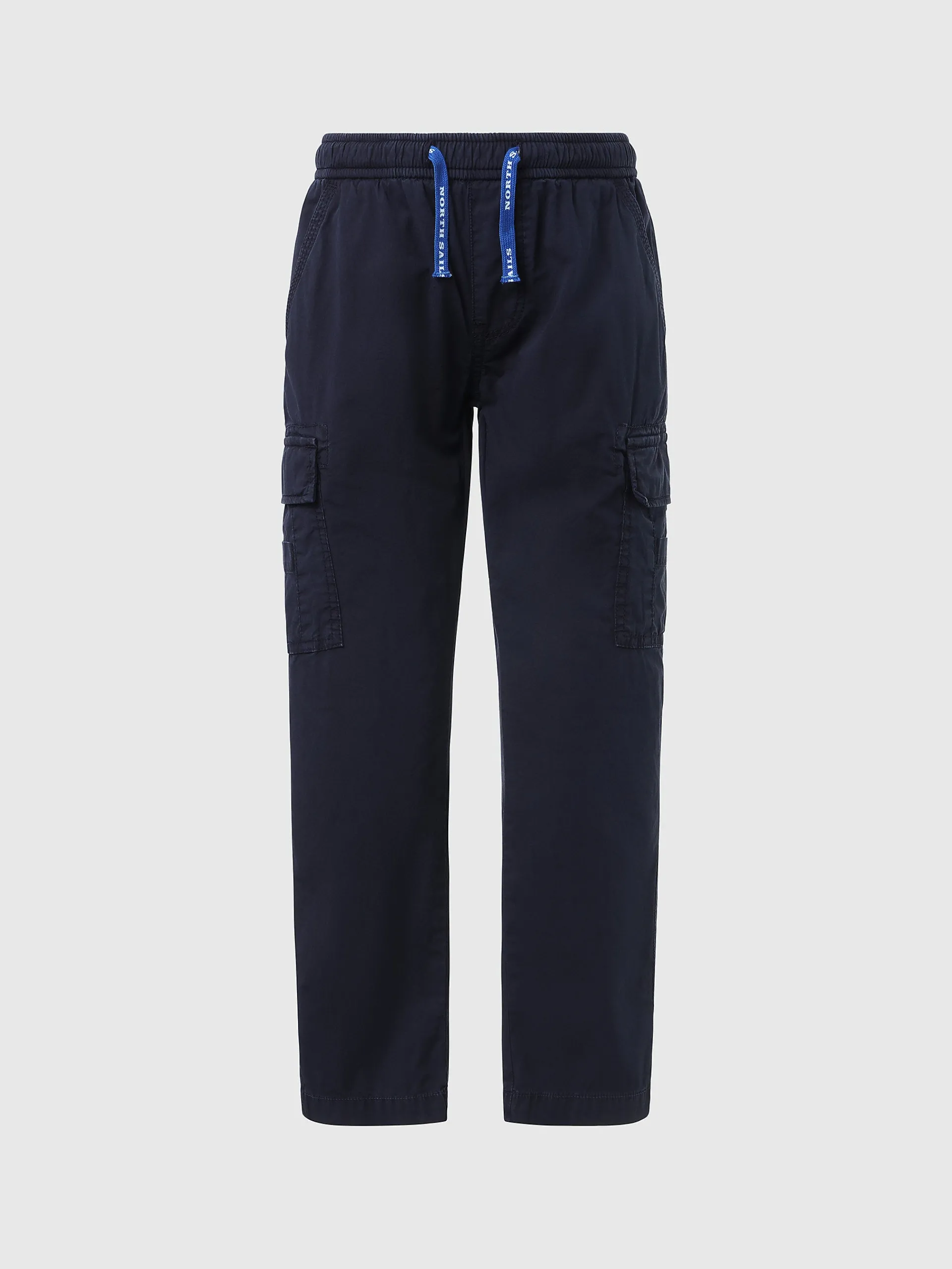 Questi pantaloni cargo sono perfetti da indossare a scuola e nel tempo libero. Il modello è realizzato in popeline stretch di cotone organico con elastico in vita per un comfort eccezionale. La coulisse personalizzata e il logo sul retro completano il design con un deciso tocco North Sails.