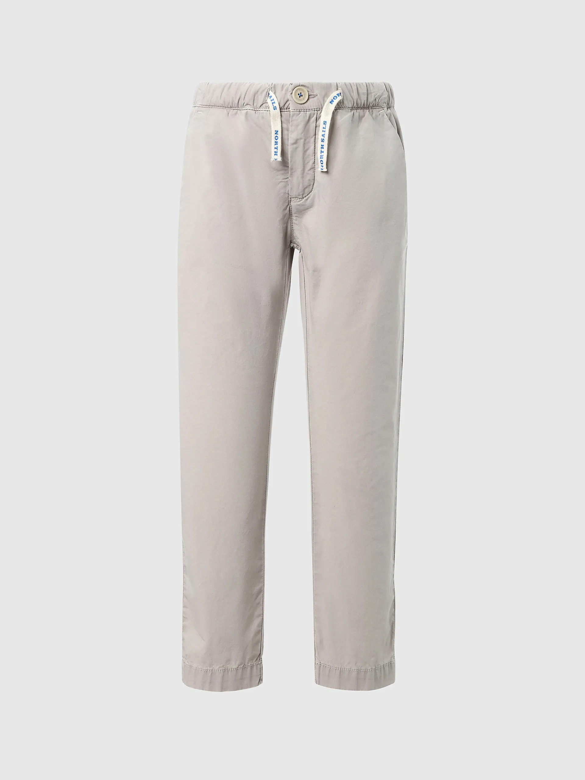 I pantaloni chino pensati per la scuola e il tempo libero che aggiorna il guardaroba dei bambini. Il modello è realizzato in popeline stretch di cotone organico e ultra confortevole. La coulisse personalizzata e il logo applicato sul retro completano il design con un deciso tocco North Sails.