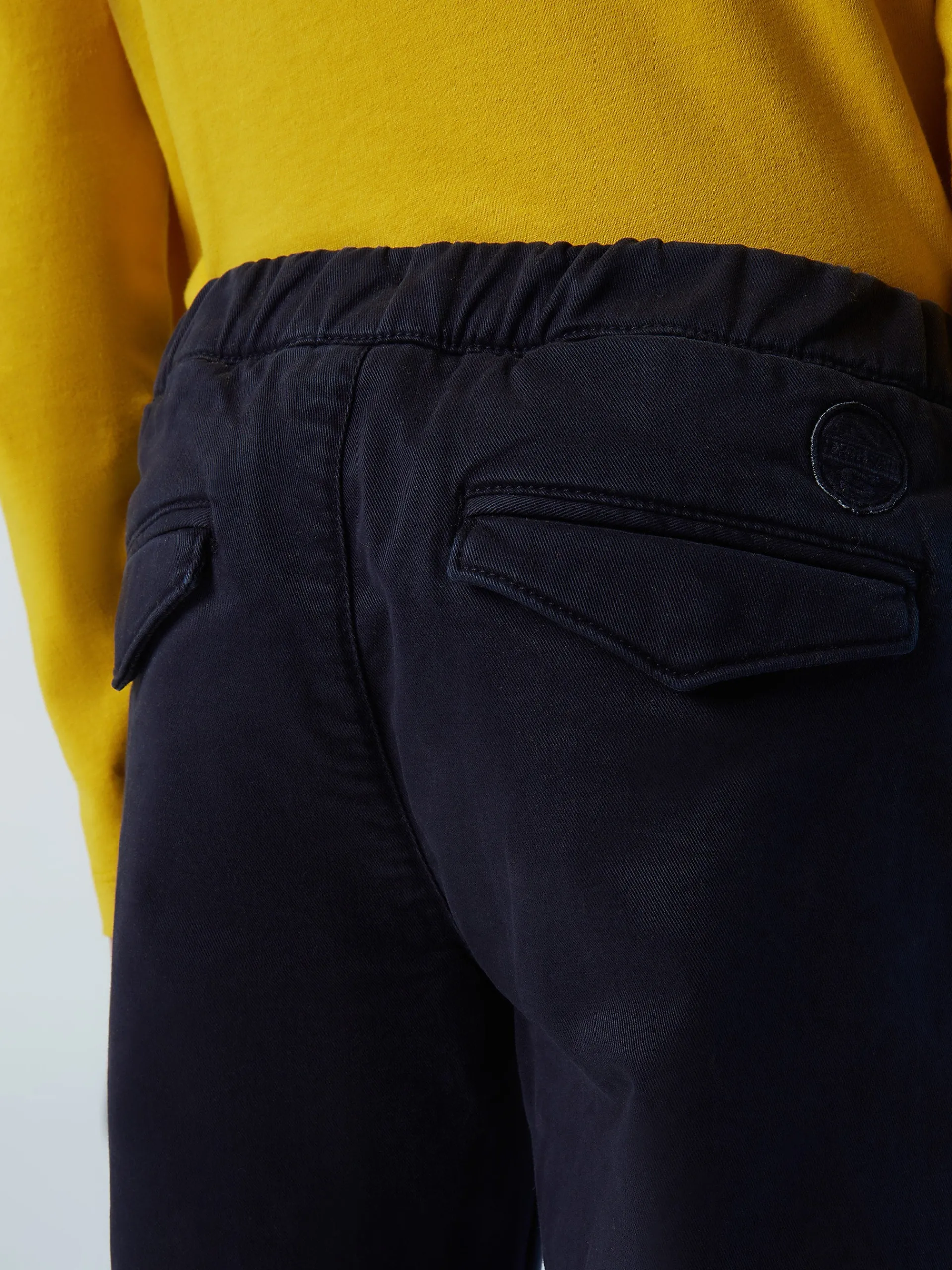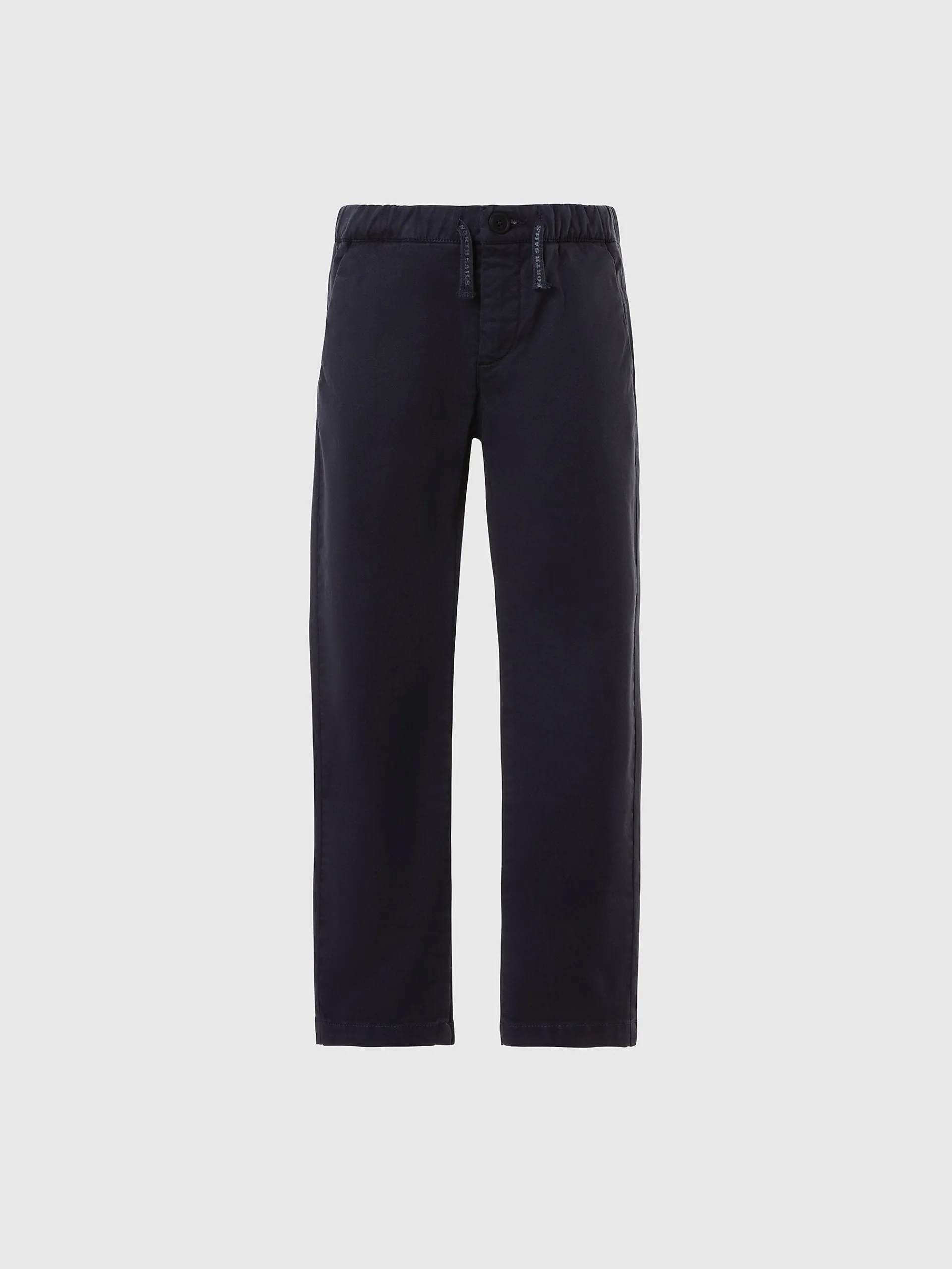 I pantaloni chino dall'attitudine smart casual che completano il guardaroba dei ragazzi. Il modello è realizzato in gabardina di cotone organico che rispetta il pianeta e trattata per essere super morbida a contatto con la pelle. L'inserto elastico in vita offre la massima libertà di movimento e può essere regolato con una comoda coulisse logata.