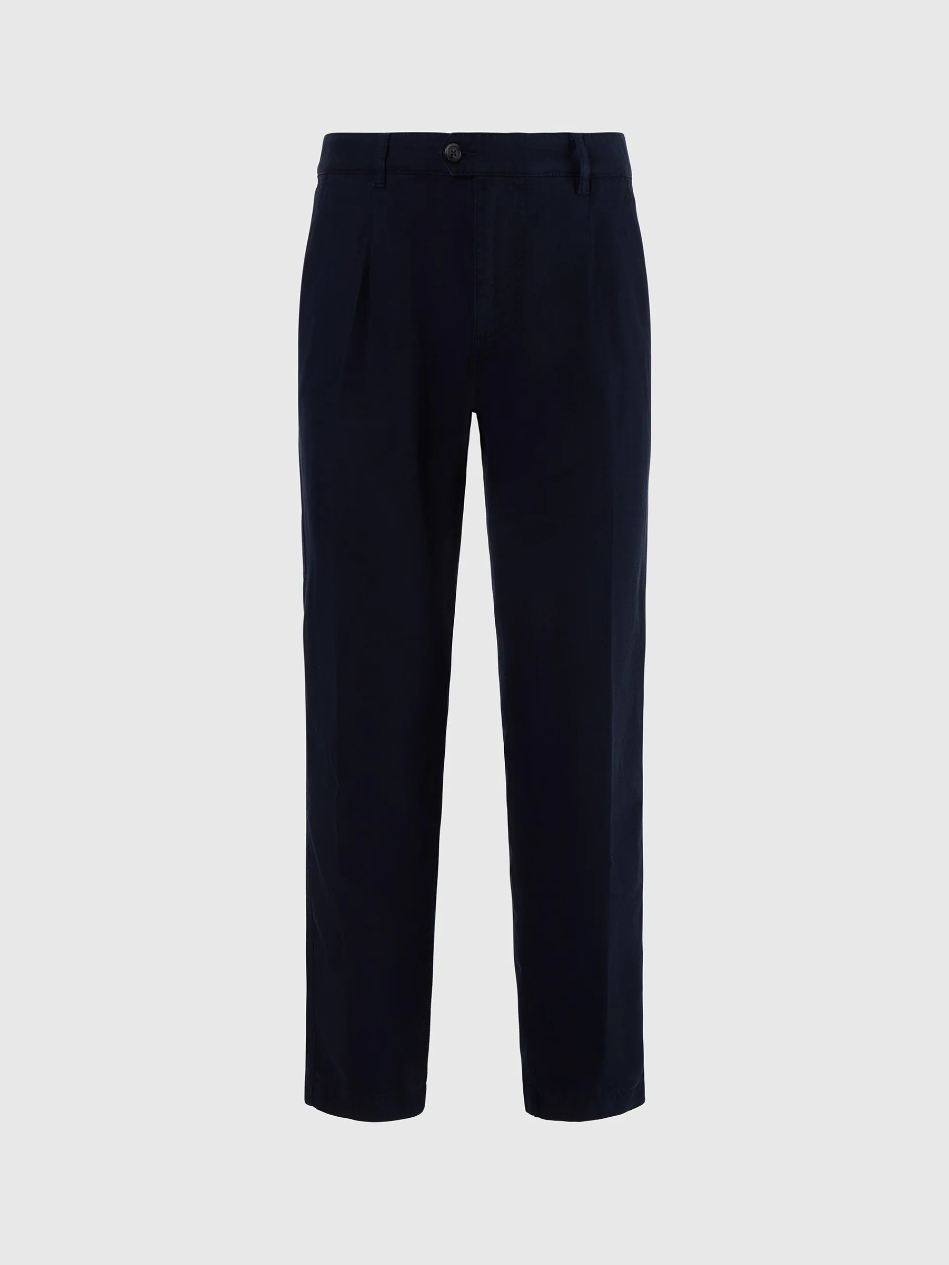 Mischief sono i pantaloni chino dall'eleganza ricercata ma funzionale. Il modello è realizzato in pregiato tessuto Panama che unisce cotone organico e lino: una texture fresca, leggera e anche attenta al pianeta. La tasca applicata sul lato e le tasche con patta sul retro aggiungono un tocco casual, mentre la patch con logo tono su tono è un elemento iconico North Sails.