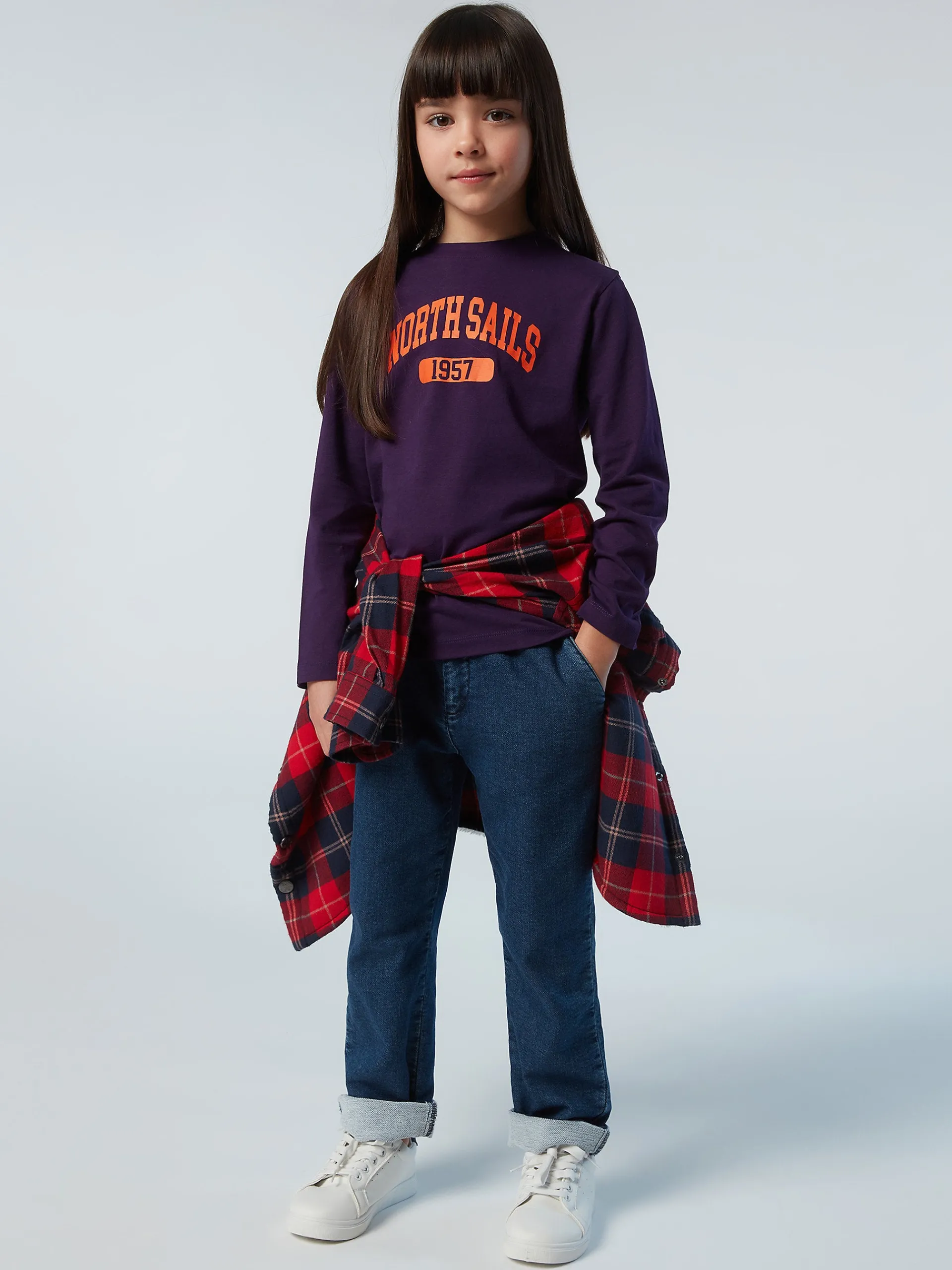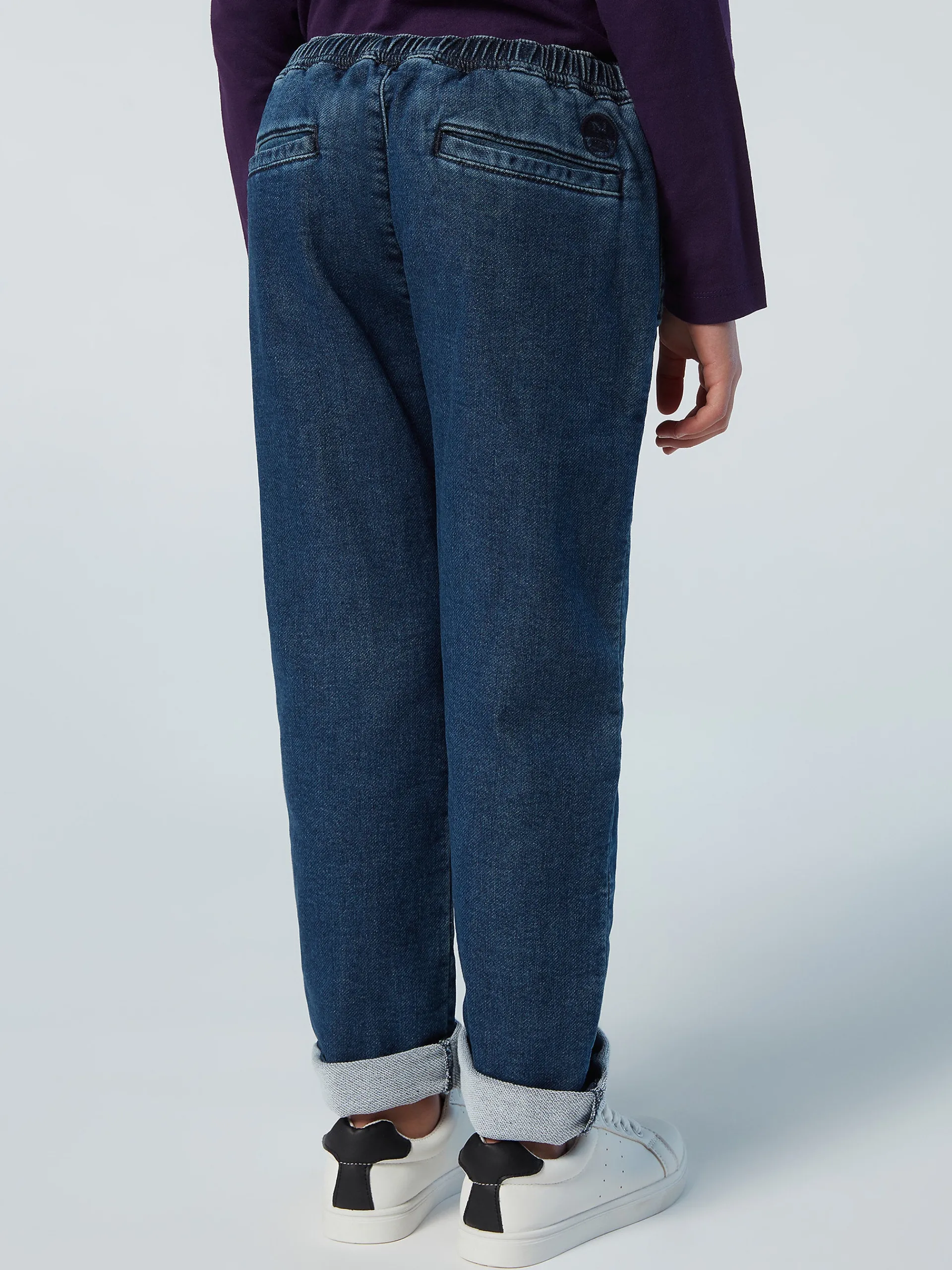 Questi pantaloni a gamba larga interpretano moltissimi abbinamenti e sono un vero must have del guardaroba quotidiano dei bambini. Il modello è realizzato in cotone organico stretch che offre massima libertà di movimento e allo stesso tempo rispetta l'ambiente perchè contiene il consumo di acqua e le emissioni. La coulisse personalizzata e il logo ricamato sul retro esprimono il DNA North Sails.