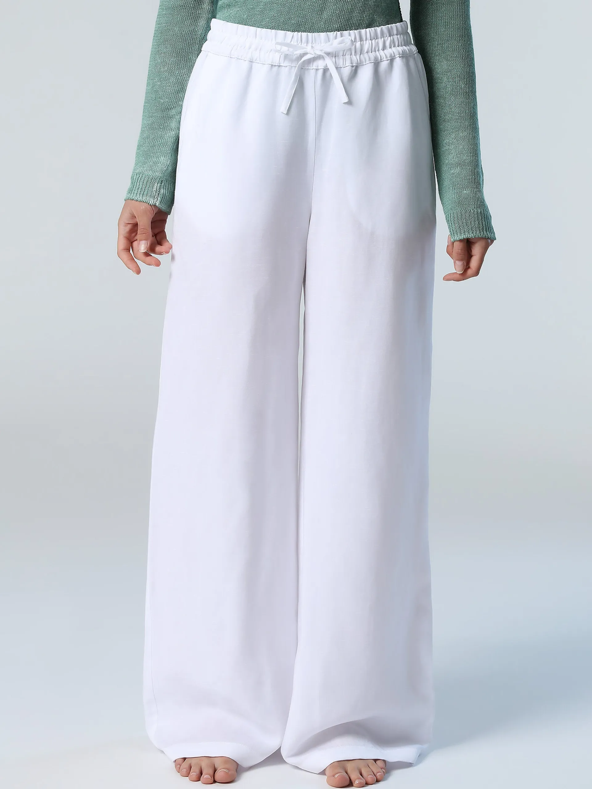 Progettati pensando allo stile e al Pianeta, questi pantaloni da donna sono realizzati in una texture morbida di lino leggero e tencel: una fibra di origine vegetale naturalmente traspirante ottenuta da pasta di legno sostenibile. L'inserto elastico in vita con coulisse offre massimo comfort, mentre la label con logo riflettente sulla tasca posteriore è il simbolo North Sails.