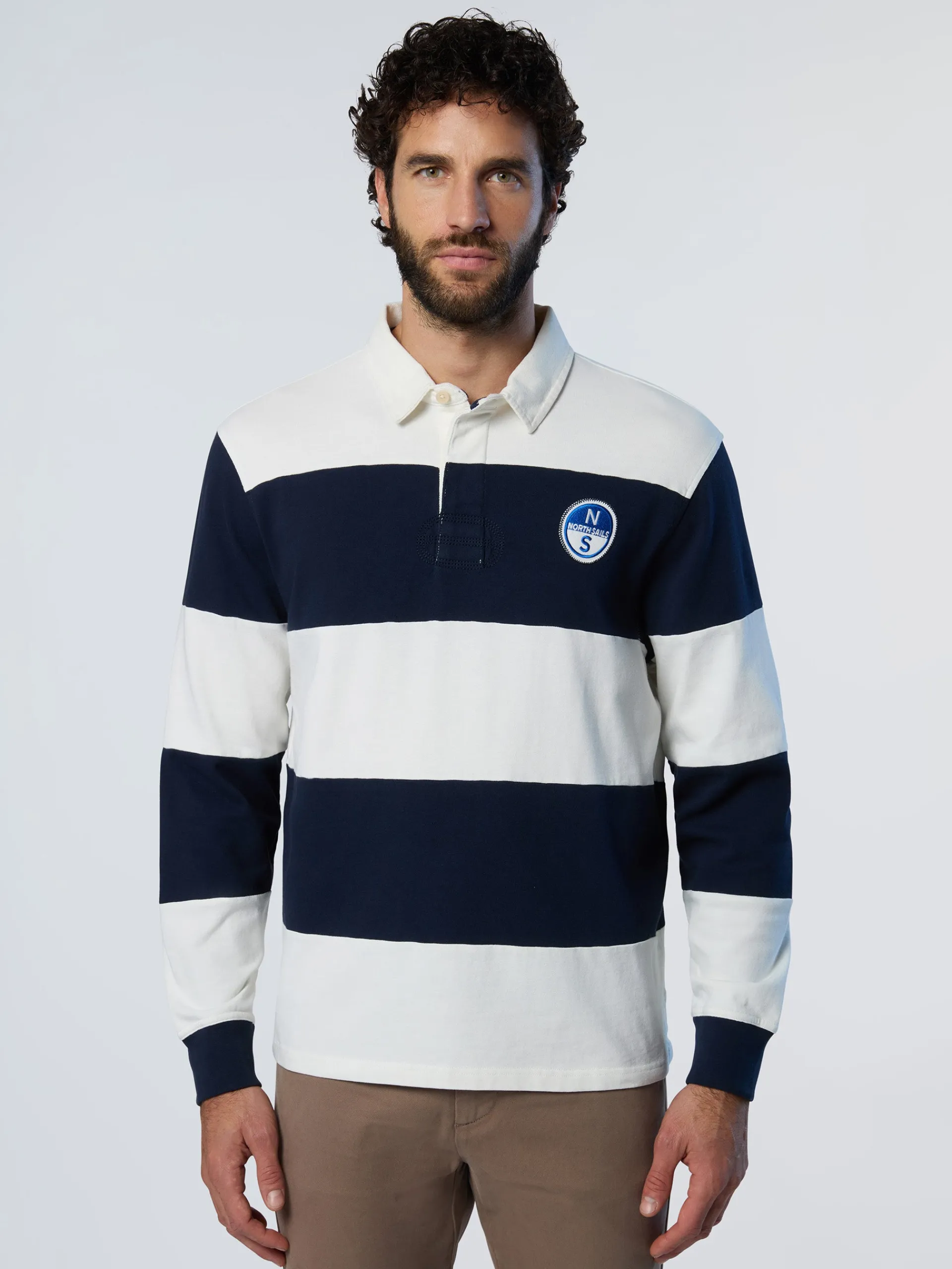 La polo a righe in stile rugby perfetta da indossare con i pantaloni chino e i jeans. Il modello è realizzato in cotone organico che riduce le emissioni e lo spreco di acqua rispetto alle fibre tradizionali. Si caratterizza per il motivo a righe color block, il colletto in twill tinta unita e la chiusura coperta. La maxi patch sul petto è il tocco iconico North Sails.