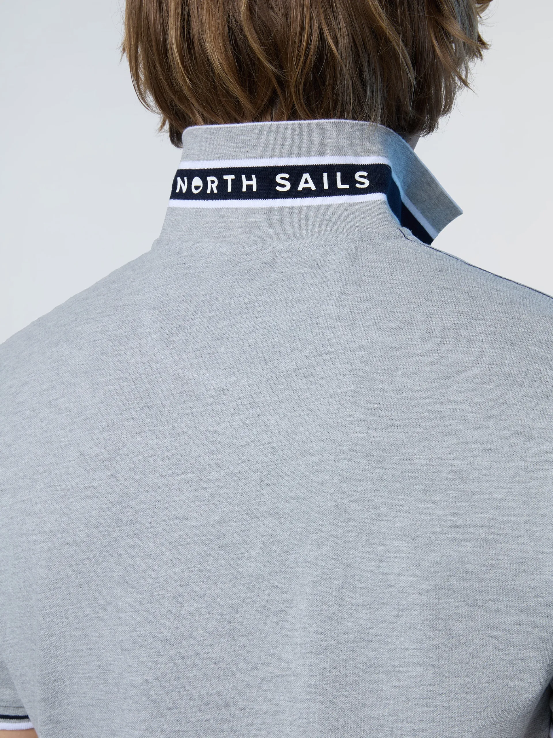 Casual e ricercata al tempo stesso, questa polo interpreta diversi stili e occasioni d'uso. Il modello è realizzato in piquet di cotone organico che dimostra il nostro impegno positivo per il pianeta. Il colletto, i bordi delle maniche e le spalle sono decorate con un elegante motivo a righe. La lettering a contrasto sotto il colletto e la patch applicata sul petto sono dettagli iconici North Sails.