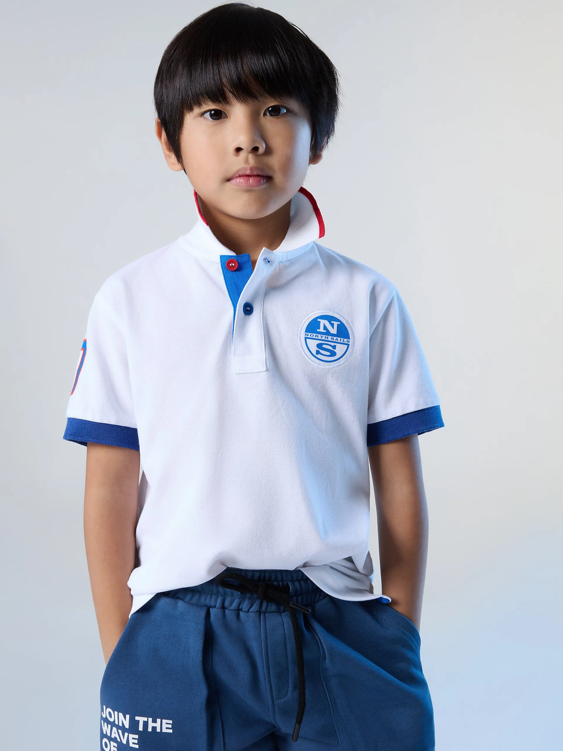Questa polo mini me è un essenziale per l'estate che combina l'estetica North Sails e l'etica ispirata alla difesa del Pianeta. Il modello è realizzato in piquet di cotone organico che riduce le emissioni e il consumo di acqua. Si caratterizza per il gioco color block con l'abbottonatura e i bordi delle maniche dal colore a contrasto. Il numero 57 stampato sulla manica è un omaggio all'anno di nascita del brand.