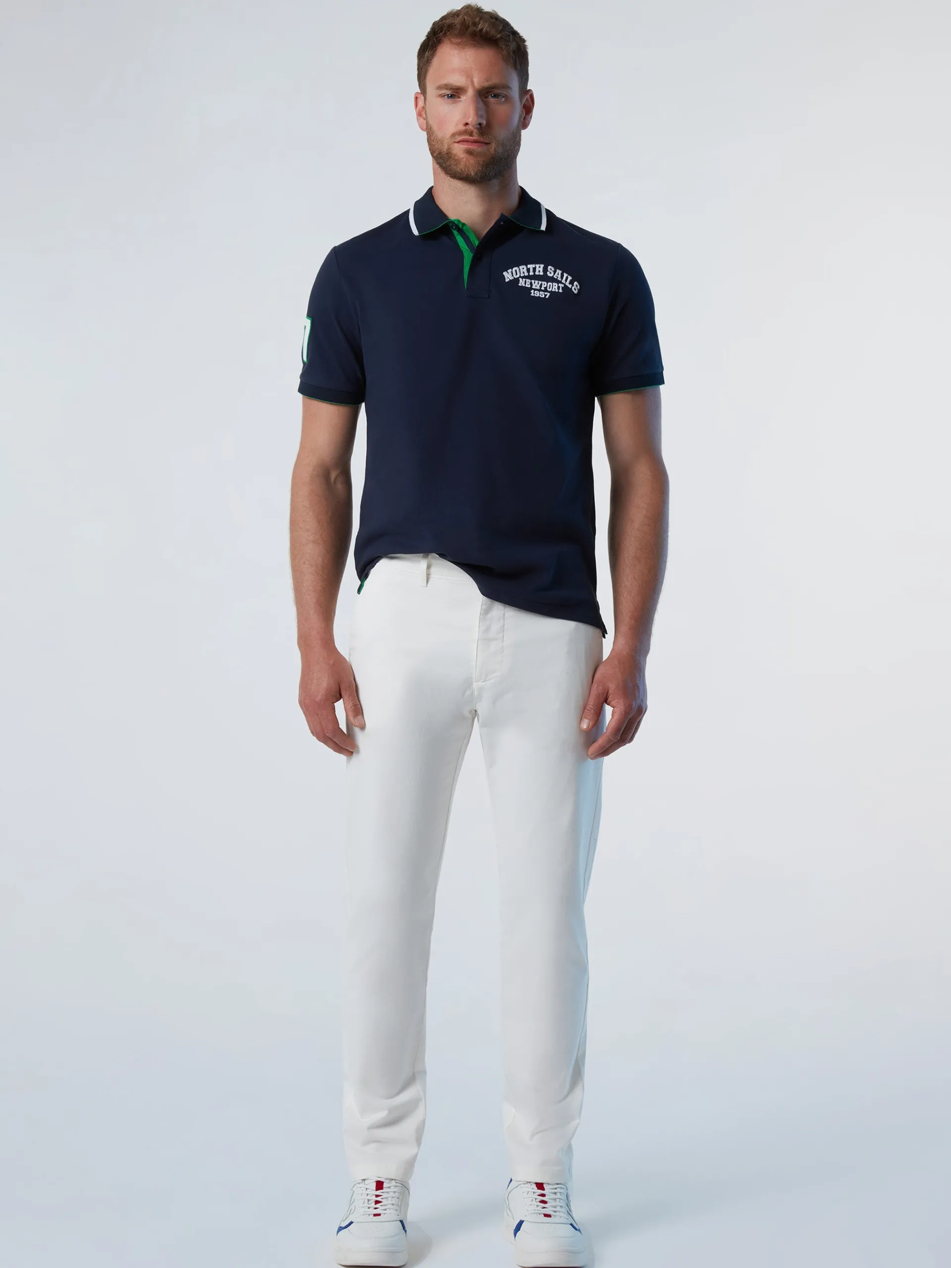 L'heritage North Sails legato alla vela incontra l'ispirazione preppy. Questa polo è realizzata in piquet di cotone organico stretch che segue i movimenti e rispetta il pianeta. Il modello da uomo è rifinito con il ricamo "Newport 1957" sul petto e le patch in twill sulla manica. Il lettering sotto il colletto è un elemento iconico dell'estetica North Sails.