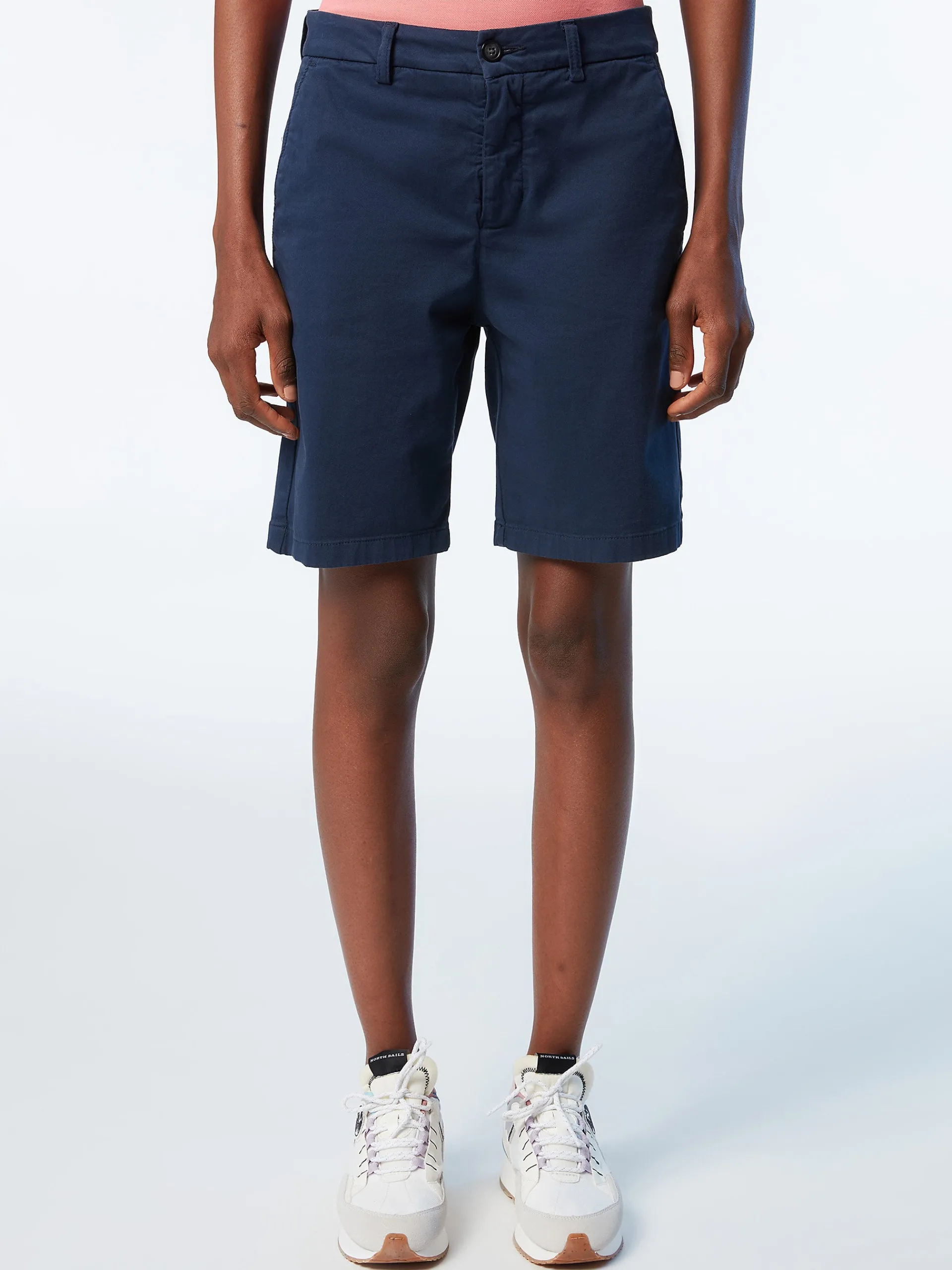 Il capo estivo che interpreta infiniti look off duty. Questi shorts da donna si caratterizzano per il classico taglio chino e sono realizzati in gabardina stretch di cotone organico a basso impatto ambientale. Il logo riflettente sulla tasca posteriore eleva il modello con un tocco moderno.