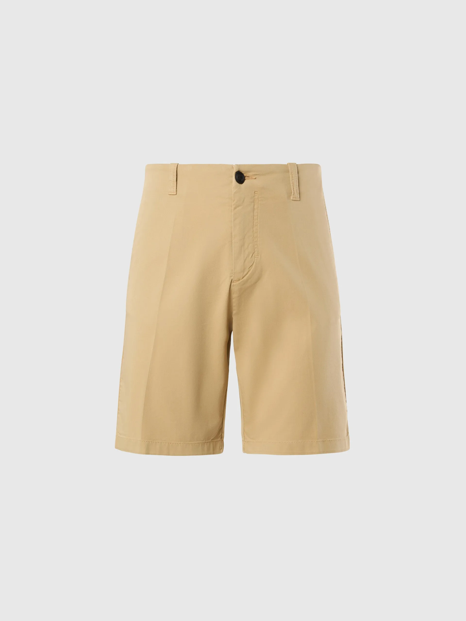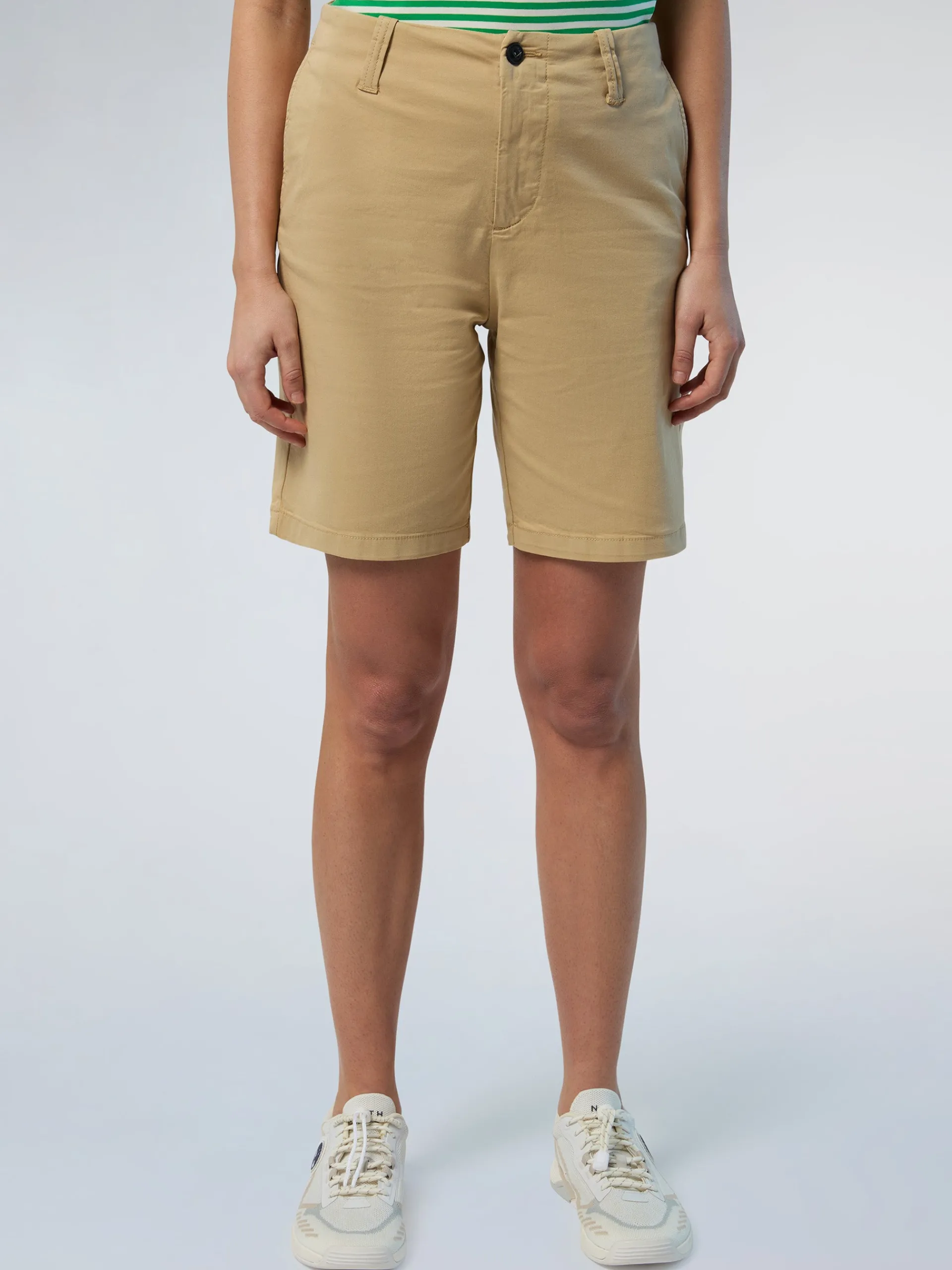 Questi shorts chino da donna sono l'essenziale chic nel guardaroba estivo. Il modello ha una silhouette femminile ed elegante con gamba dritta e leggermente aderente. La texture in gabardina di cotone organico elasticizzato rispetta il pianeta e segue i movimenti con disinvoltura. Logo ricamato sul retro per un tocco distintivo North Sails.