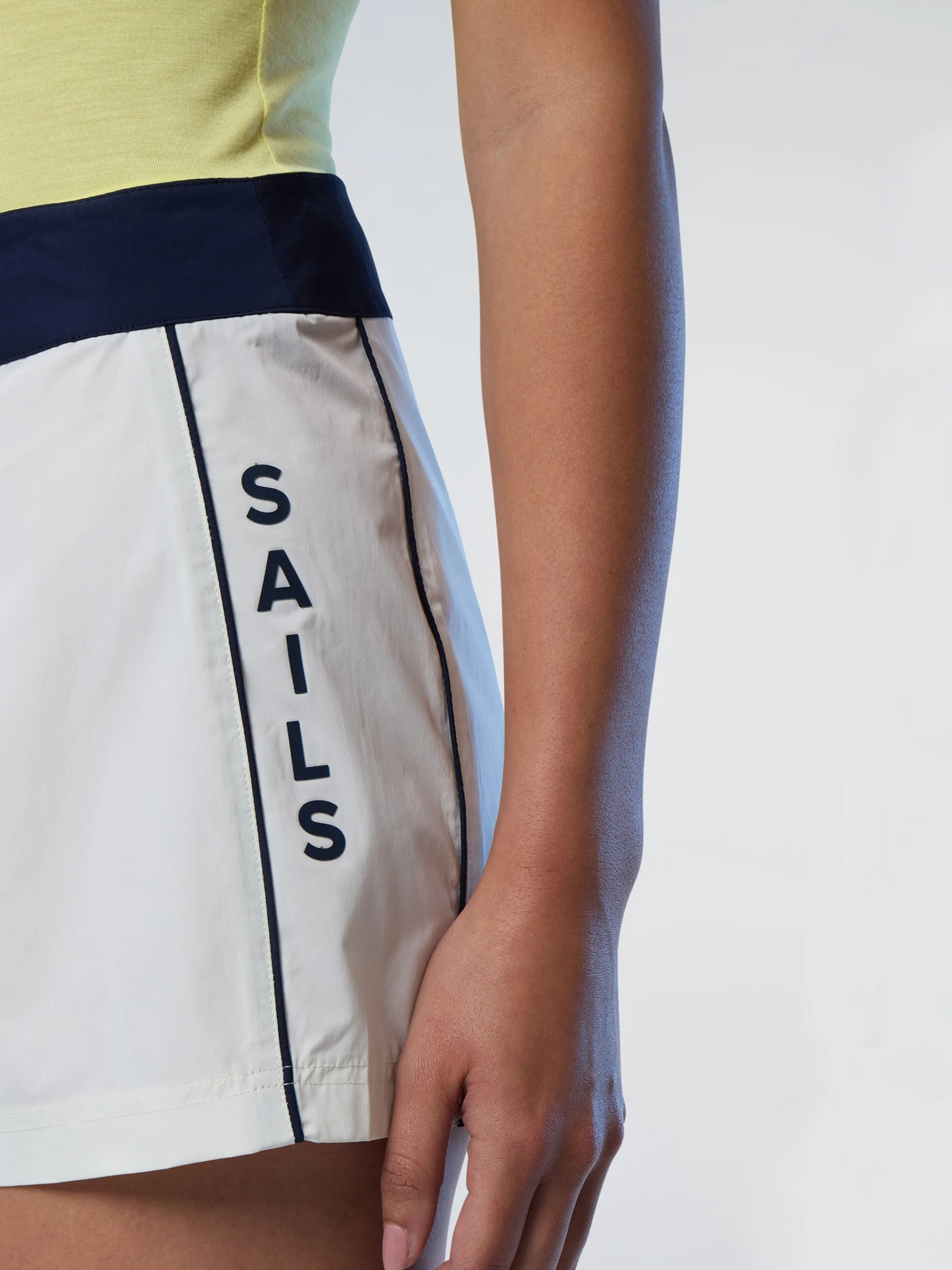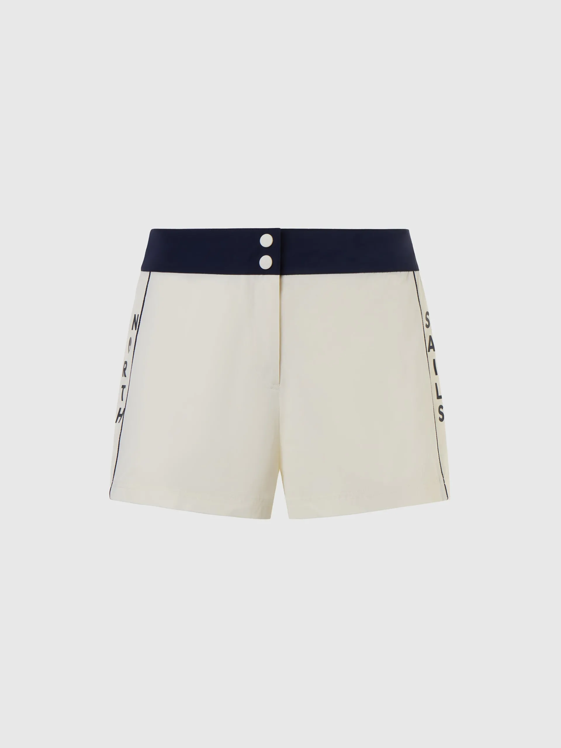 Stile vintage North Sails dall'attitudine moderna. Questi shorts mare da donna si ispirano si ispirano ai classici del brand e sono realizzati in tessuto memory riciclato che segue delicatamente ogni movimento e offre una vestibilità impeccabile. Il lettering gommato lungo i lati aggiunge una nota ricercata, mentre la chiusura con bottoni a pressione rende il capo comodo da indossare.