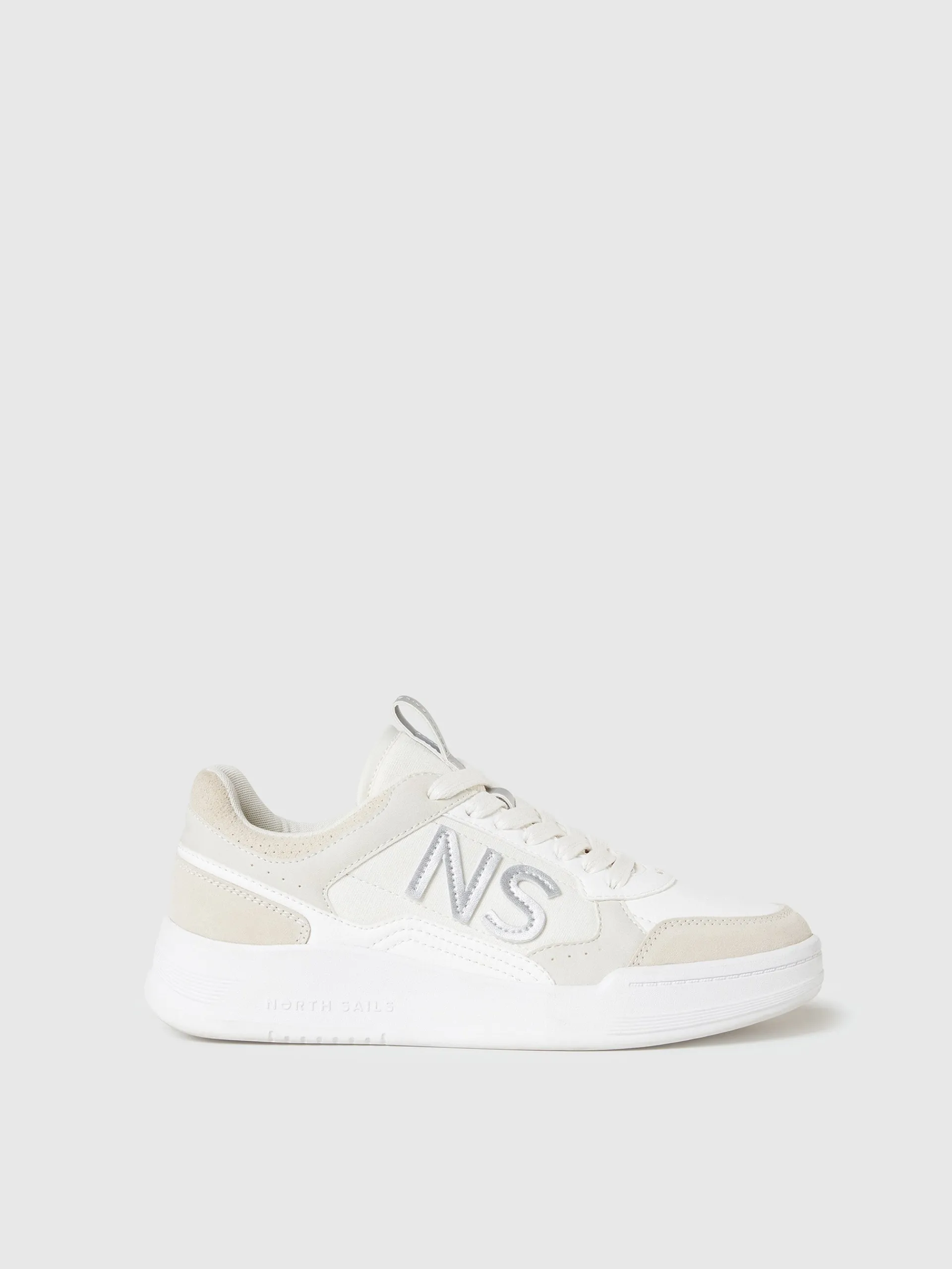 Jetty Nuance è la sneaker chic e disinvolta, dedicata al tempo libero e ai momenti leisure in città. Il modello è realizzato in nylon con dettagli in microfibra riciclata e rinforzi in suede traforata per una sensazione delicata sulla pelle. La sua silhouette d'ispirazione tennis è rifinita con le patch NS in texture laminata che illuminano ogni passo.