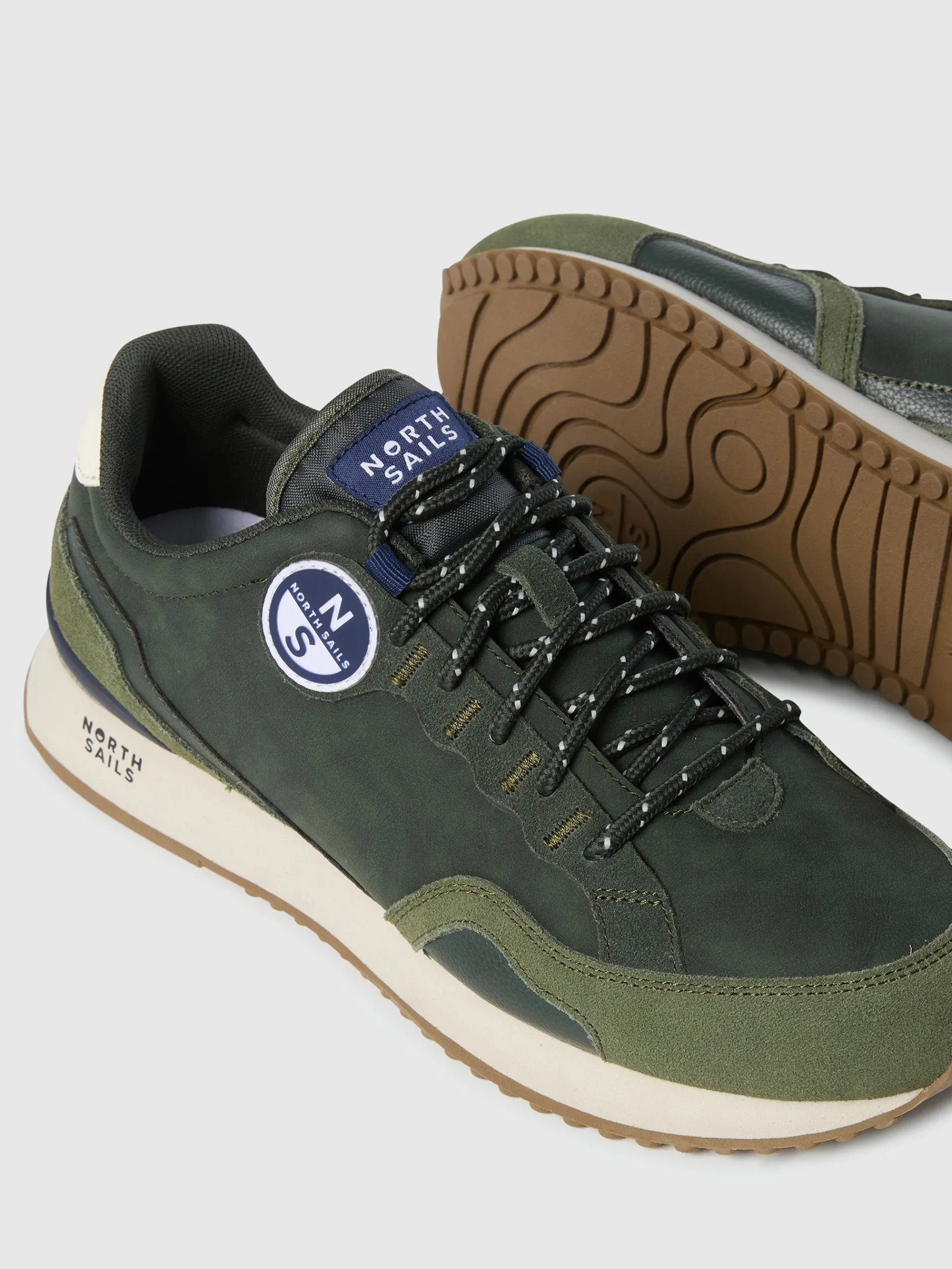 Sleek and sinuous with boundless energy. This running sneaker is elevated with tonal suede overlays, a tan tread and nautical-style laces as a nod to our sailing roots. Its contoured eyestay proudly showcases a round logo patch, marking every stride with the unmistakable charisma of North Sails.