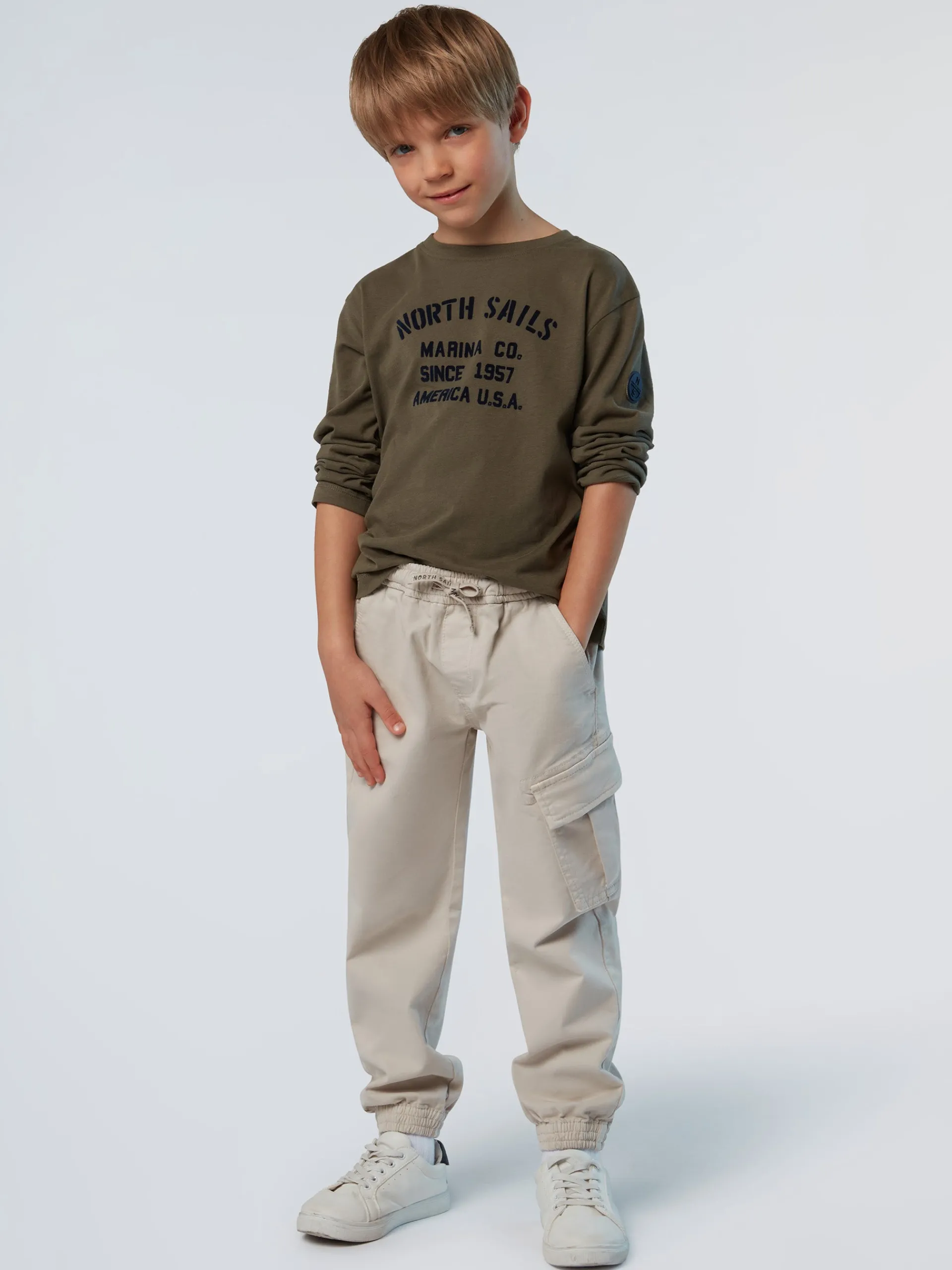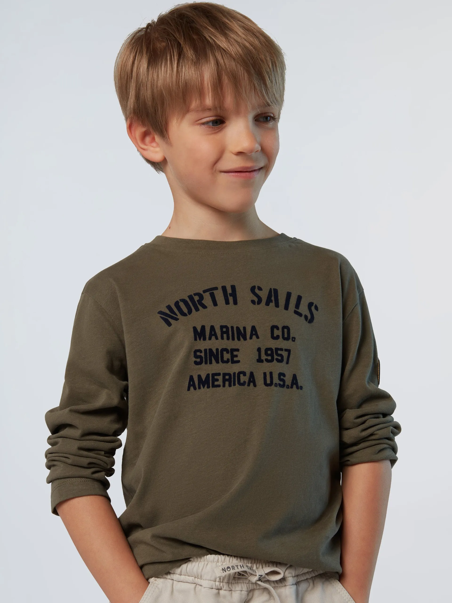 Questa t-shirt da bambino celebra lo spirito North Sails con la maxi stampa flock sul davanti. Il modello è realizzato in jersey di cotone organico che rispetta l'ambiente perché limita le emissioni e il consumo di acqua rispetto alle fibre tradizionali. Si caratterizza per il design versatile con collo a giro e maniche lunghe.
