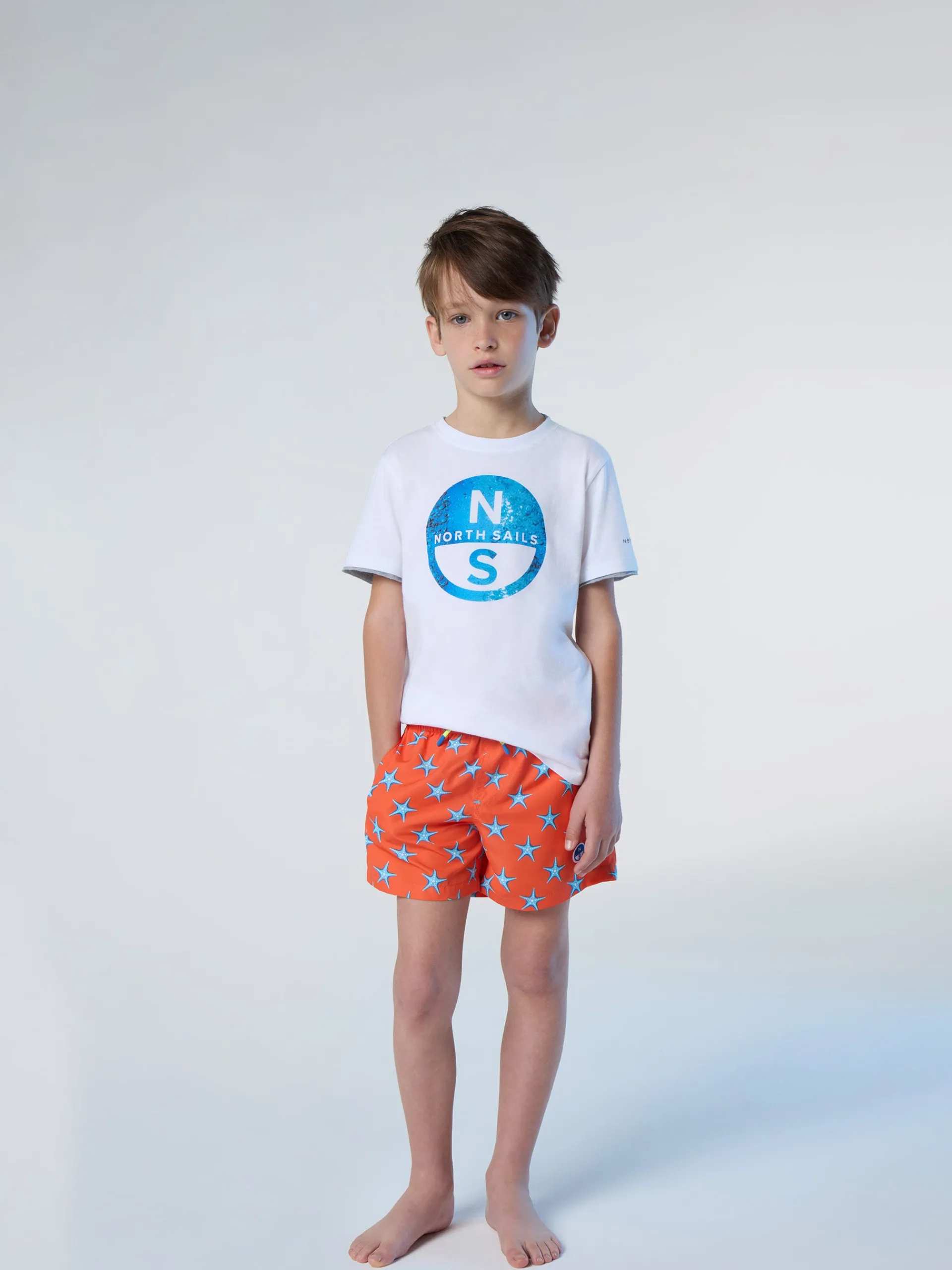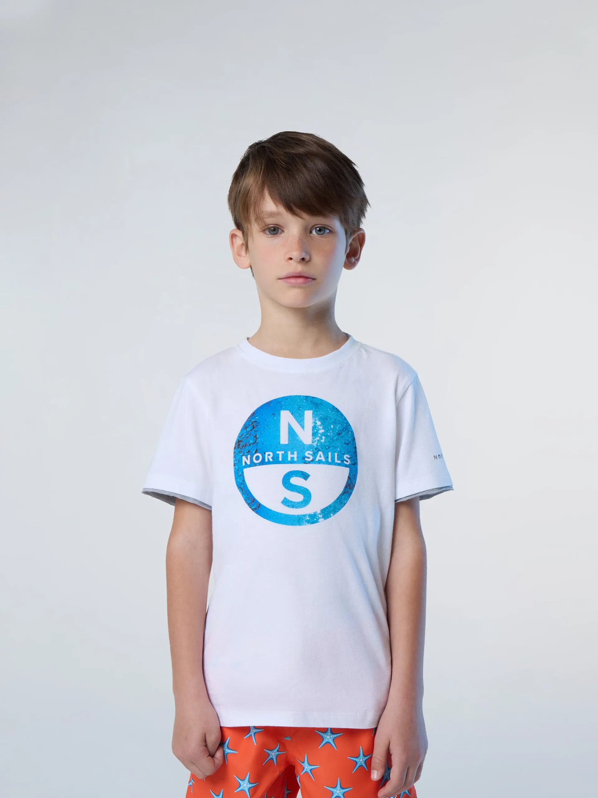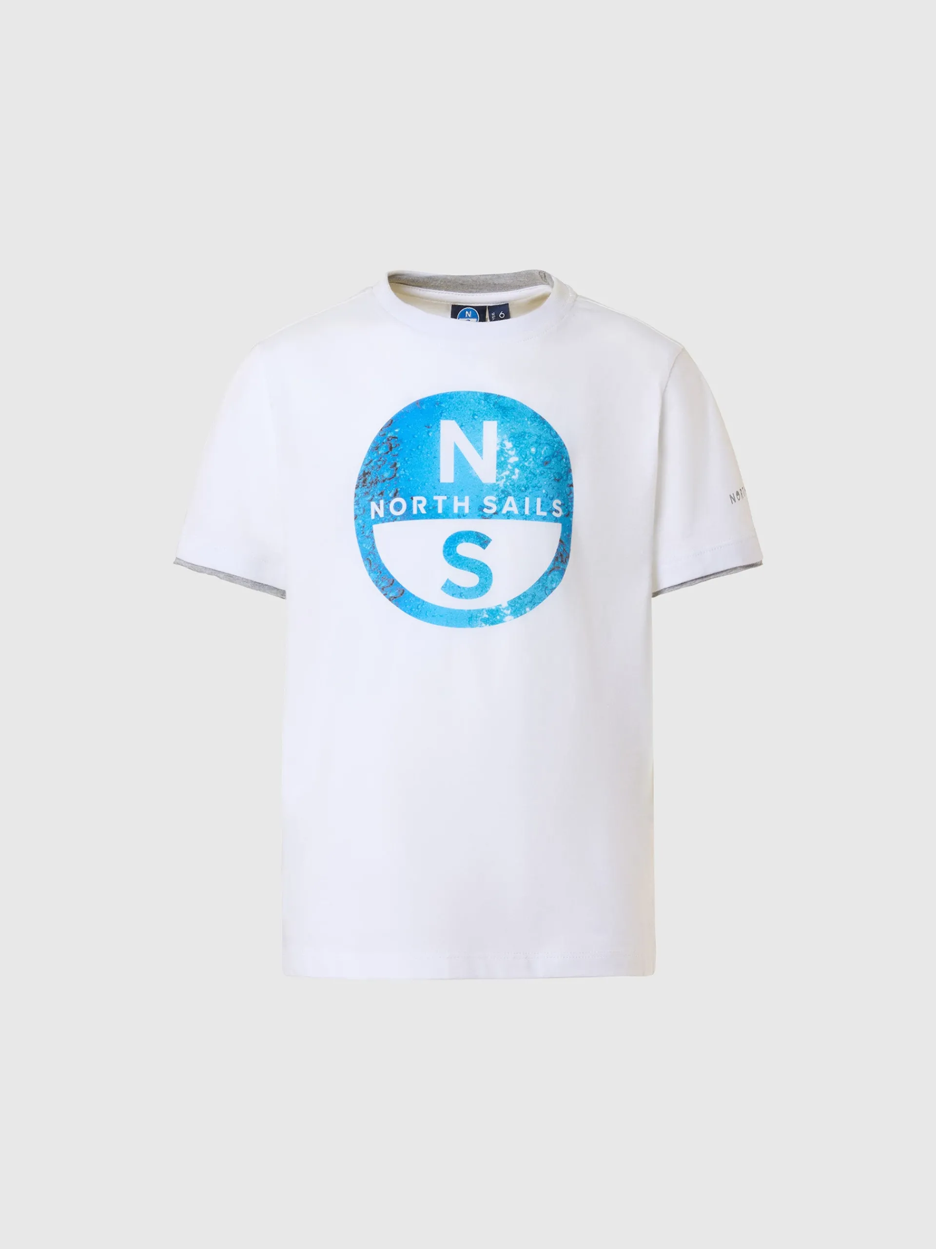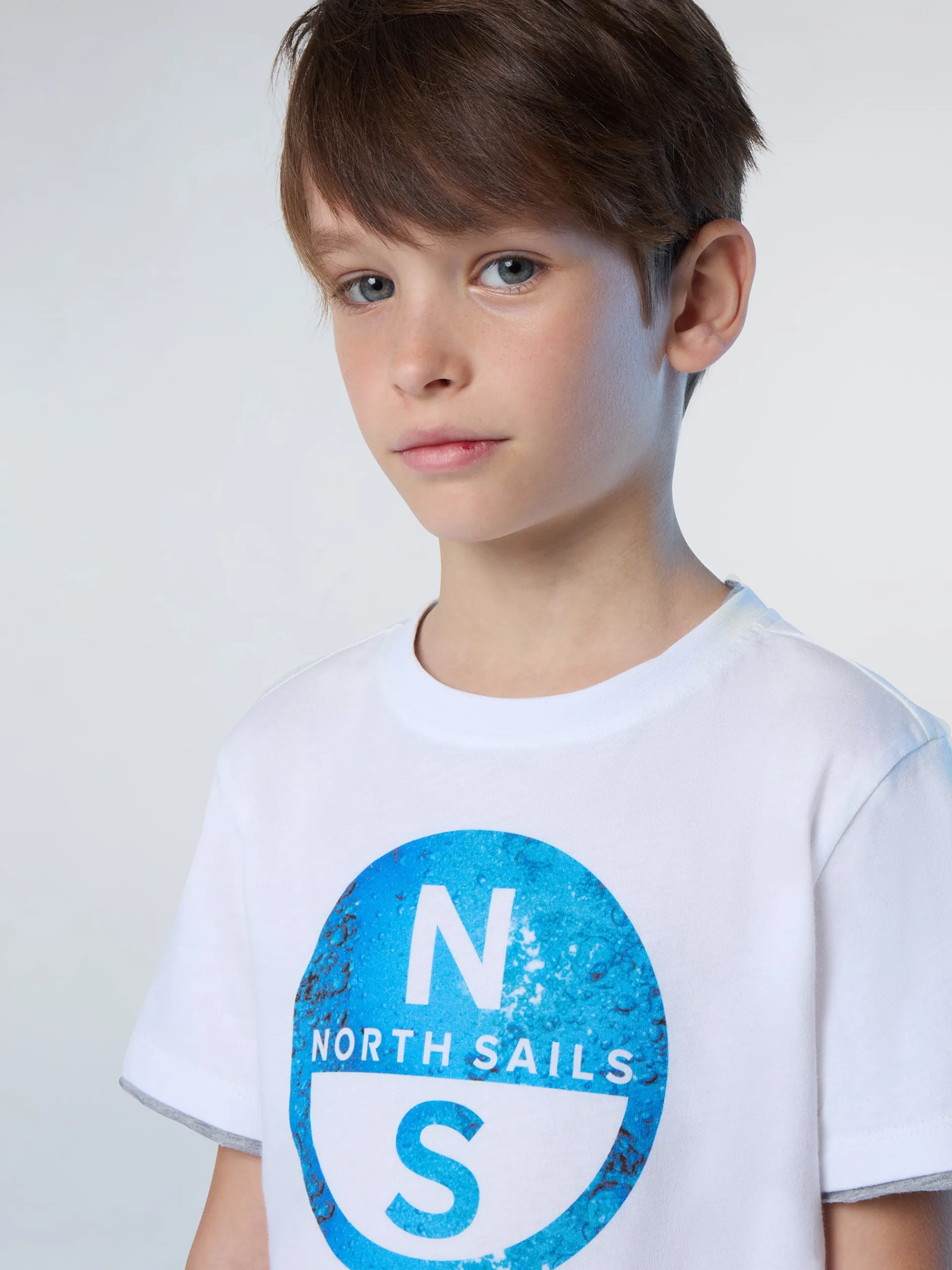 Questa t-shirt girocollo da bambino esprime in ogni dettaglio il DNA North Sails. Il modello ha un design rilassato con bordi a taglio vivo ed è realizzato in jersey di cotone organico che contribuisce a ridurre il consumo di acqua e le emissioni nocive. Il maxi logo sul petto dall'effetto fotografico celebra la nostra passione per le avventure outdoor.