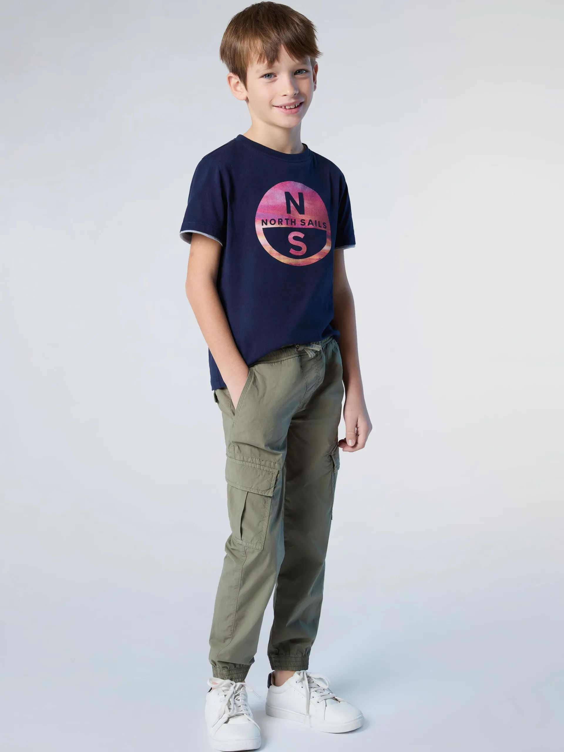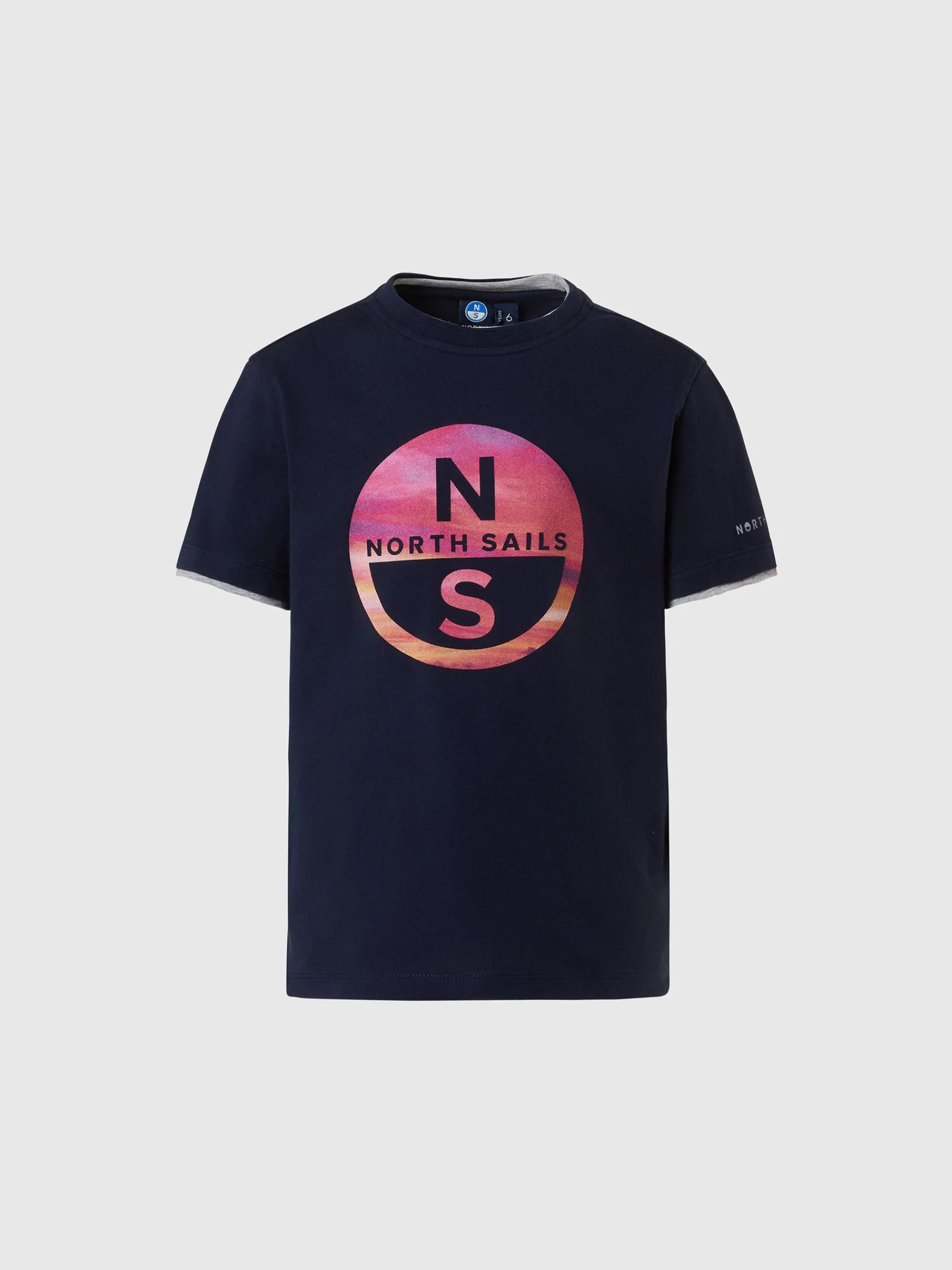 Questa t-shirt girocollo da bambino esprime in ogni dettaglio il DNA North Sails. Il modello ha un design rilassato con bordi a taglio vivo ed è realizzato in jersey di cotone organico che contribuisce a ridurre il consumo di acqua e le emissioni nocive. Il maxi logo sul petto dall'effetto fotografico celebra la nostra passione per le avventure outdoor.