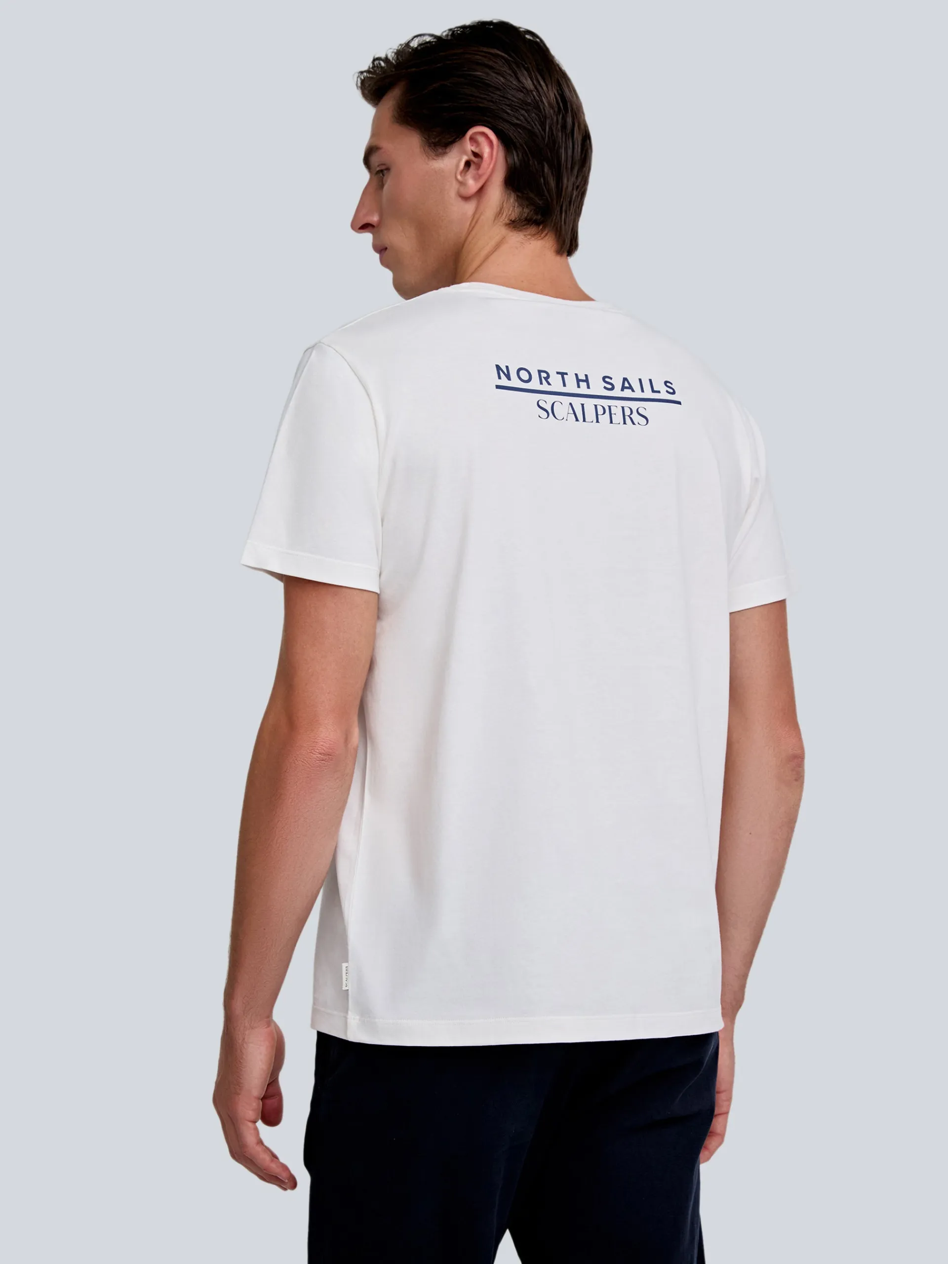 Il basic quotidiano incontra il fascino esclusivo della collaborazione Scalpers x North Sails. Questa t-shirt a maniche corte è realizzata in puro cotone ed è impreziosita con il logo applicato sul petto e stampato sul retro.