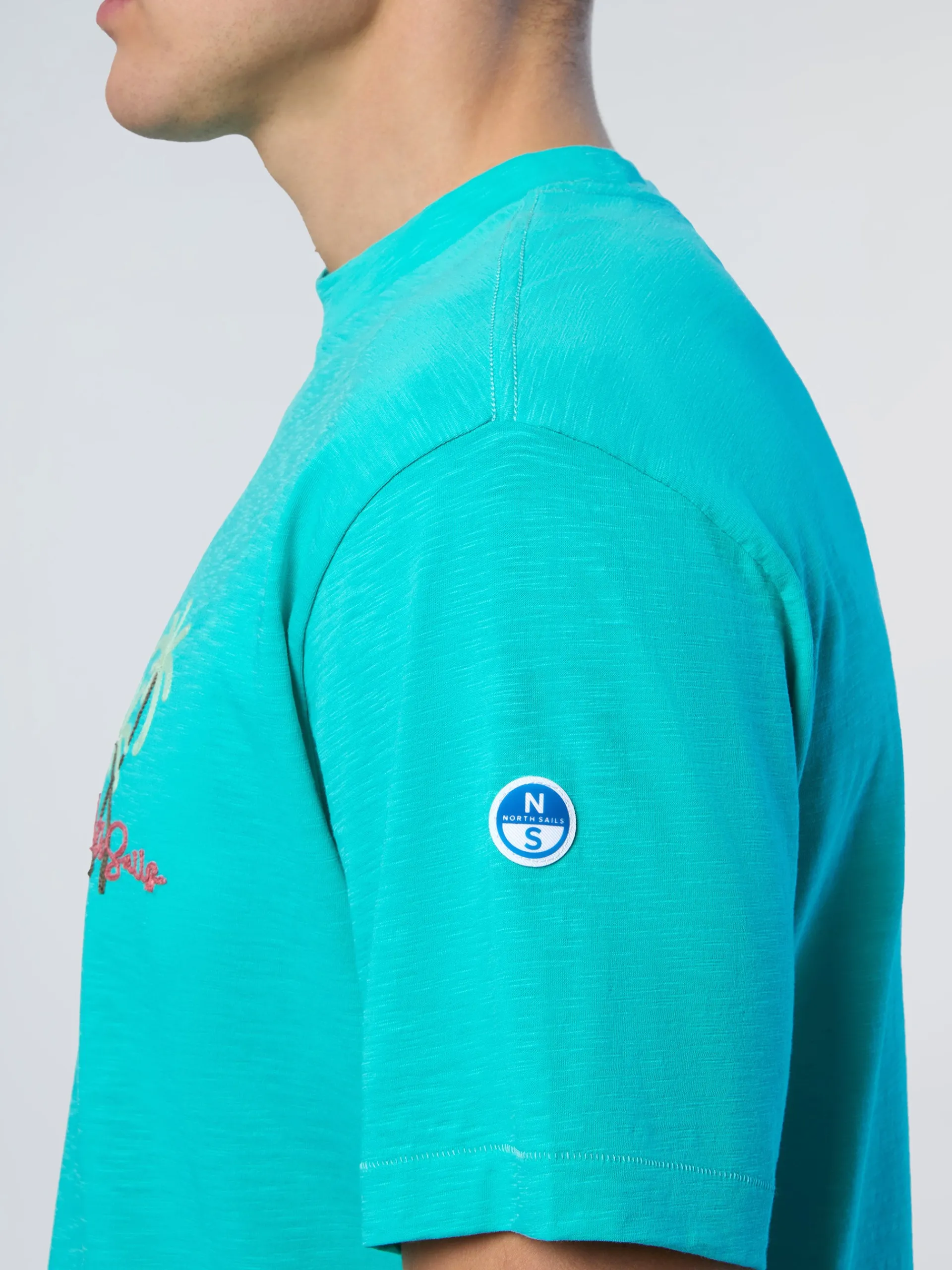 La t-shirt North Sails che interpreta le atmosfere rilassate della bella stagione. Il modello è realizzato in cotone organico che riduce le emissioni nocive ed è rifinito con un trattamento fiammato dal look autentico. La patch applicata sulla manica è la nota iconica del brand, mentre la palma ricamata sul petto aggiunge una nota grafica super estiva.