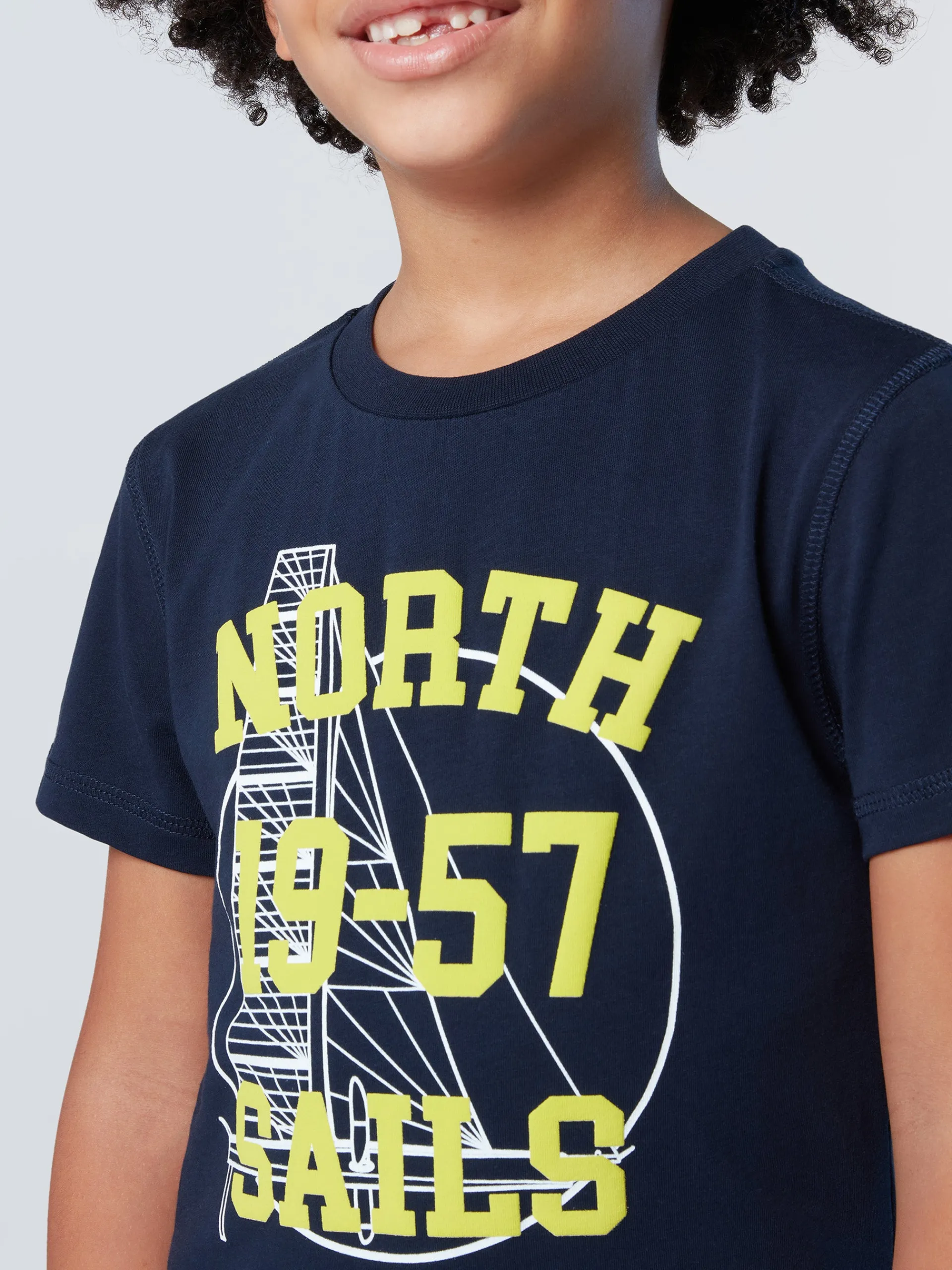 Questa t-shirt da bambino celebra l'heritage North Sails con la maxi stampa a rilievo in stile college. Il modello è realizzato in jersey di cotone organico che rispetta l'ambiente perchè limita le emissioni e il consumo di acqua rispetto alle fibre tradizionali. Si caratterizza per le cuciture a vista e la classica patch sulla manica.