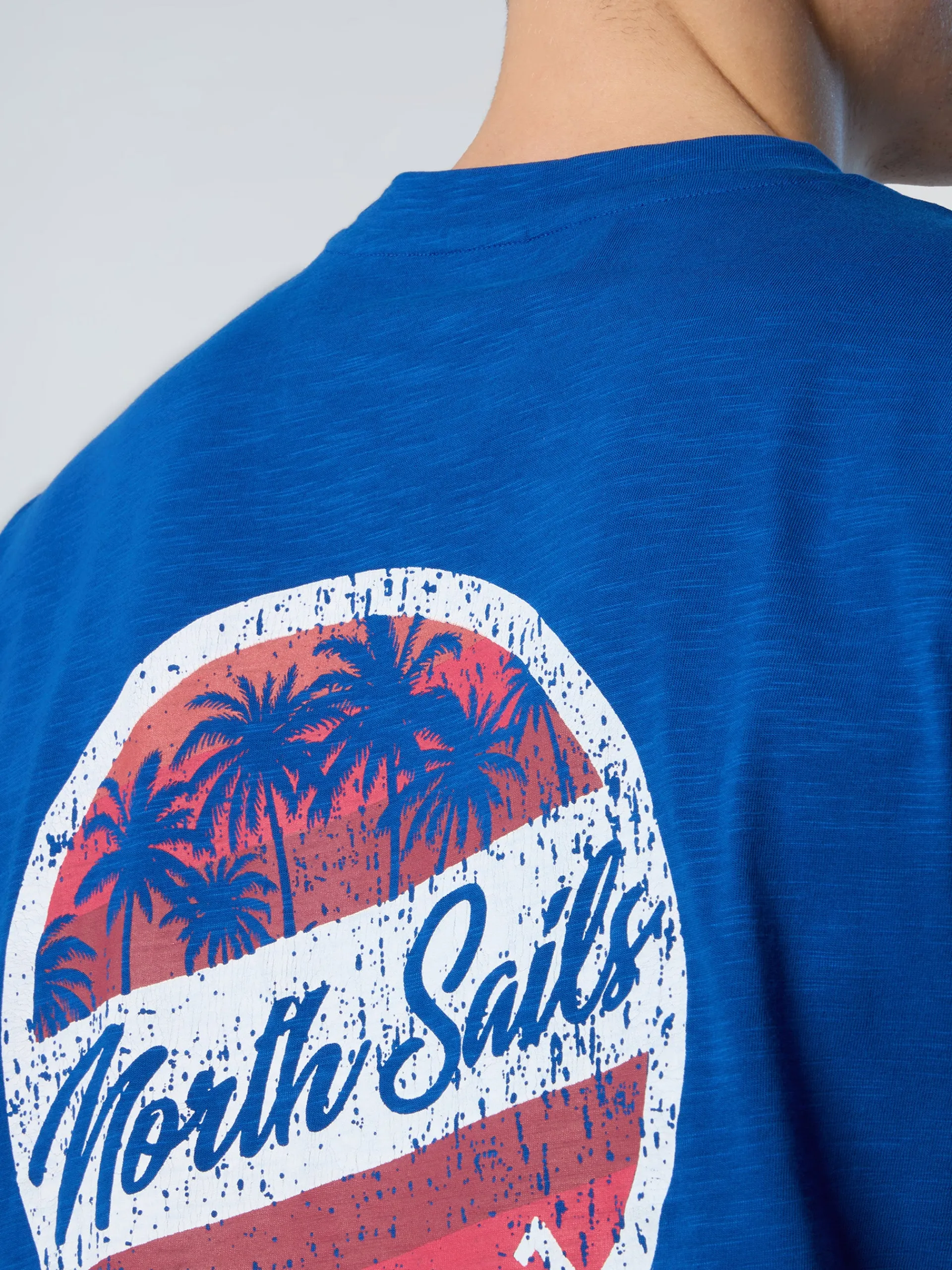 La t-shirt North Sails che interpreta le atmosfere rilassate della bella stagione. Il modello è realizzato in jersey di cotone organico che riduce le emissioni nocive ed è rifinito con un trattamento fiammato dal look autentico. La maxi stampa North Sails con motivo palme aggiunge un twist estivo irresistibile.