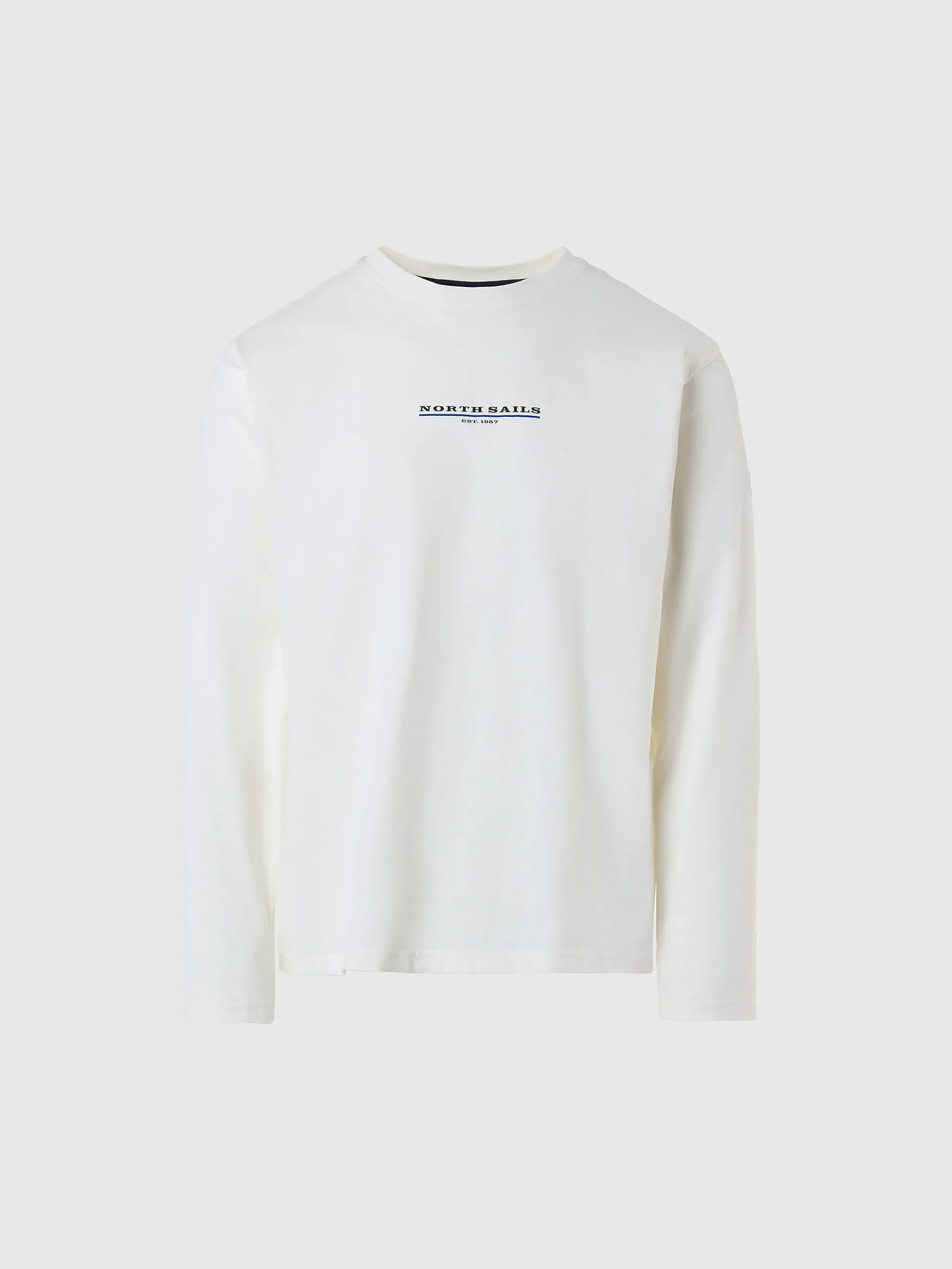 Versatile e disinvolta, questa t-shirt a maniche lunghe è il basic che aggiorna il guardaroba leisure della mezza stagione. Il modello è realizzato in morbido jersey di cotone organico che rispetta il pianeta perchè limita le emissioni e il consumo di acqua rispetto alle fibre tradizionali. La stampa "North Sails Est. 1957" sul davanti e la patch iconica applicata sulla manica sono dettagli heritage del brand.