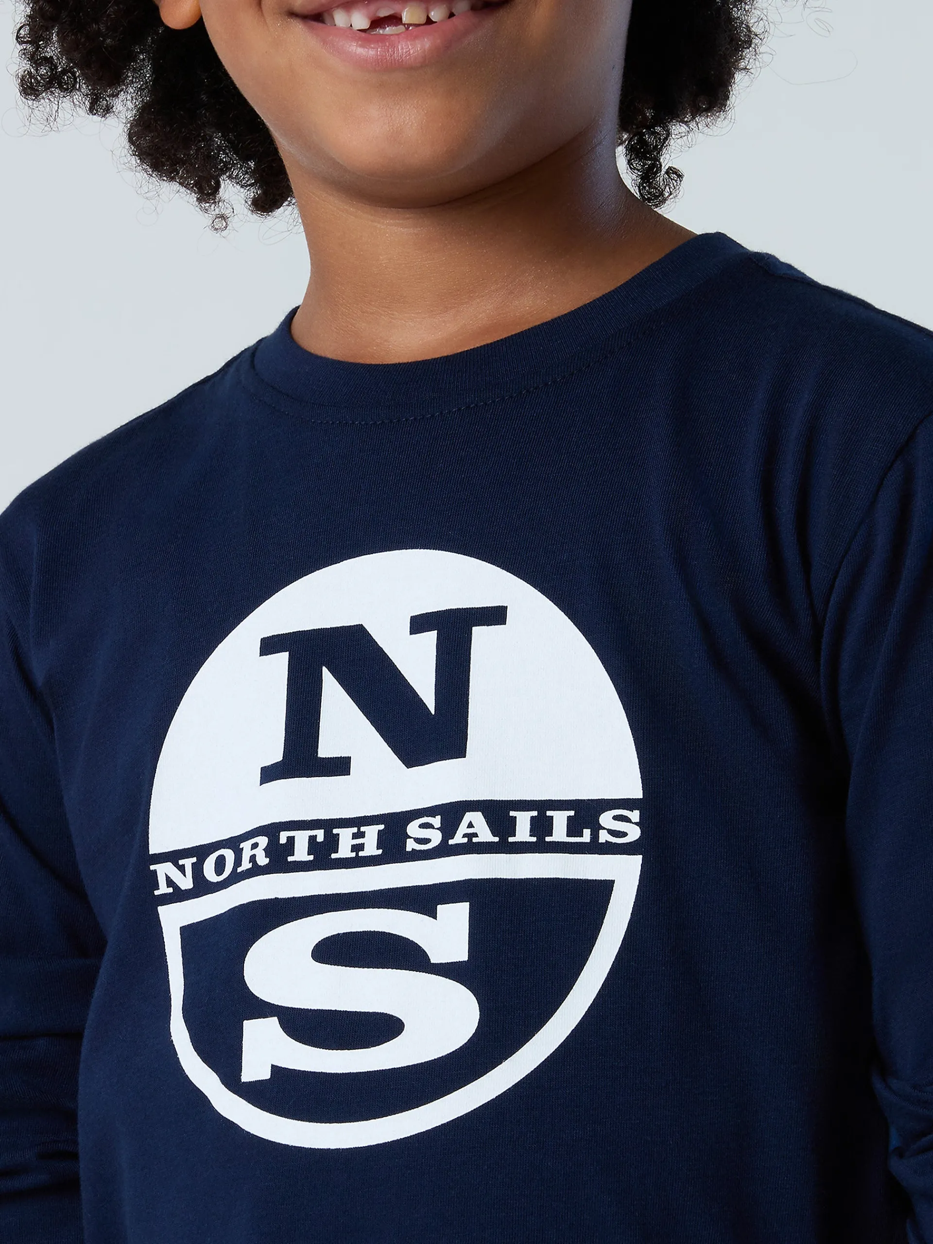 Questa t-shirt a maniche lunghe da bambino è un basic quotidiano dall'attitudine decisa. Il modello esprime il nostro impegno per il pianeta perchè è realizzato in jersey di cotone organico a basso impatto ambientale. Si caratterizza per la maxi stampa North Sails sul davanti.