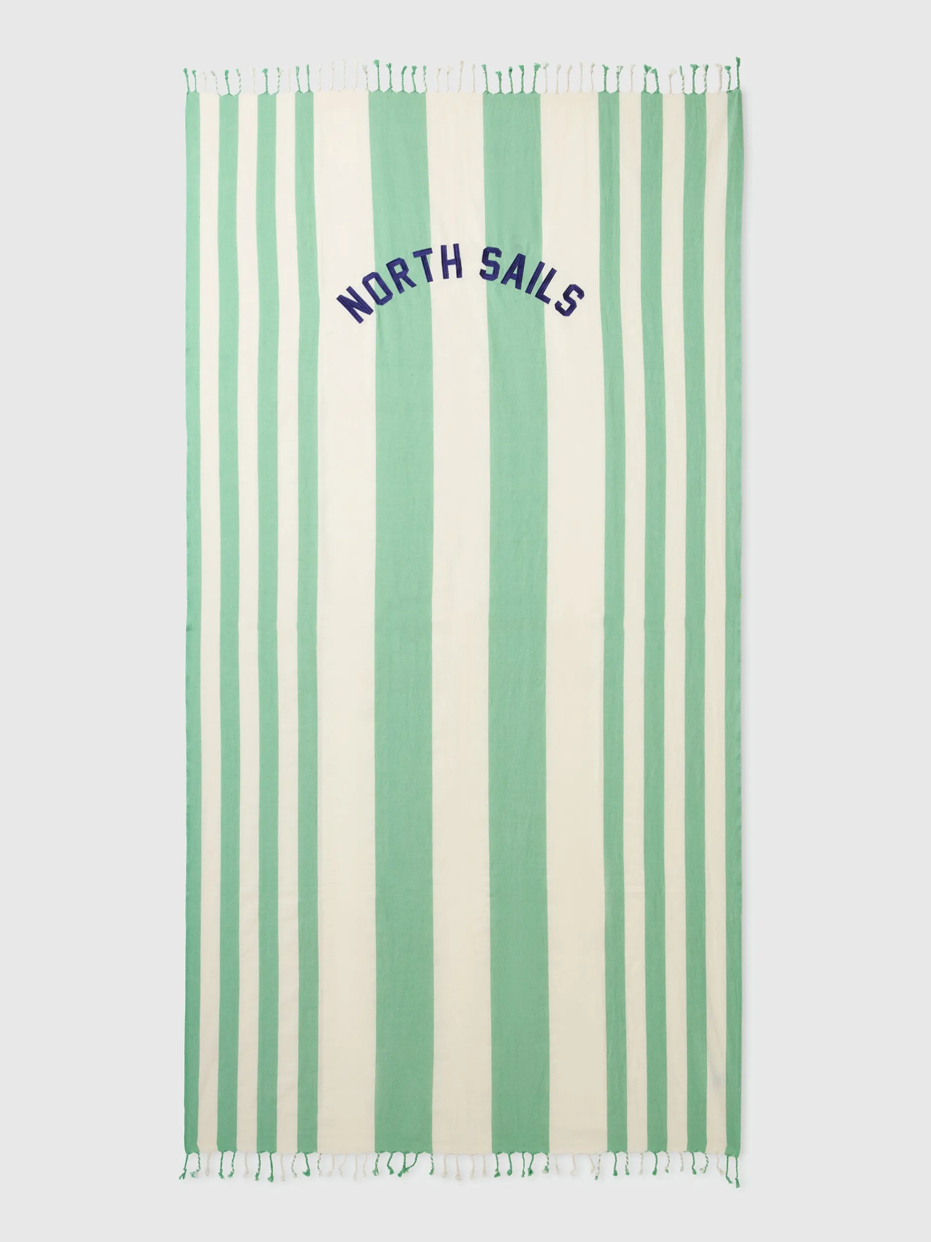Da portare in spiaggia o in piscina, questo telo mare North Sails è l'aggiunta esclusiva per le tue vacanze. L'accessorio è realizzato in cotone organico che riduce le emissioni e il consumo di acqua, esprimendo il nostro impegno per l'ambiente. Rifinito con il motivo a righe jacquard, le nappine e il lettering a contrasto.