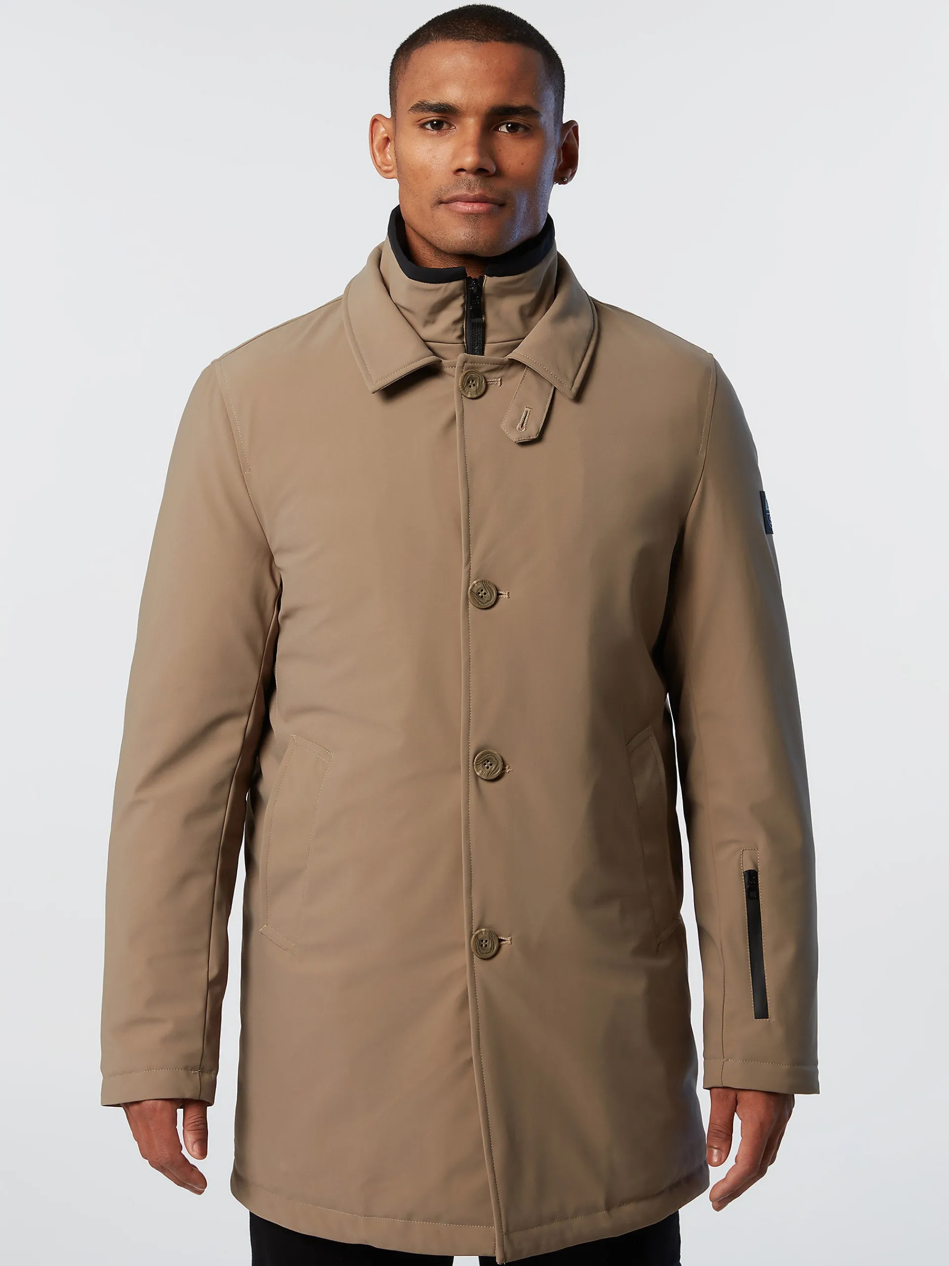 Attitudine elegante e ricerca funzionale si combinano nel trench da uomo North Tech. Il modello ha una costruzione 3 layer in tessuto riciclato traspirante e impermeabile con imbottitura in piuma sintetica riciclata e ultraleggera. La pettorina integrata garantisce una protezione extra, mentre la chiusura con bottoni completa il design con un tocco raffinato.