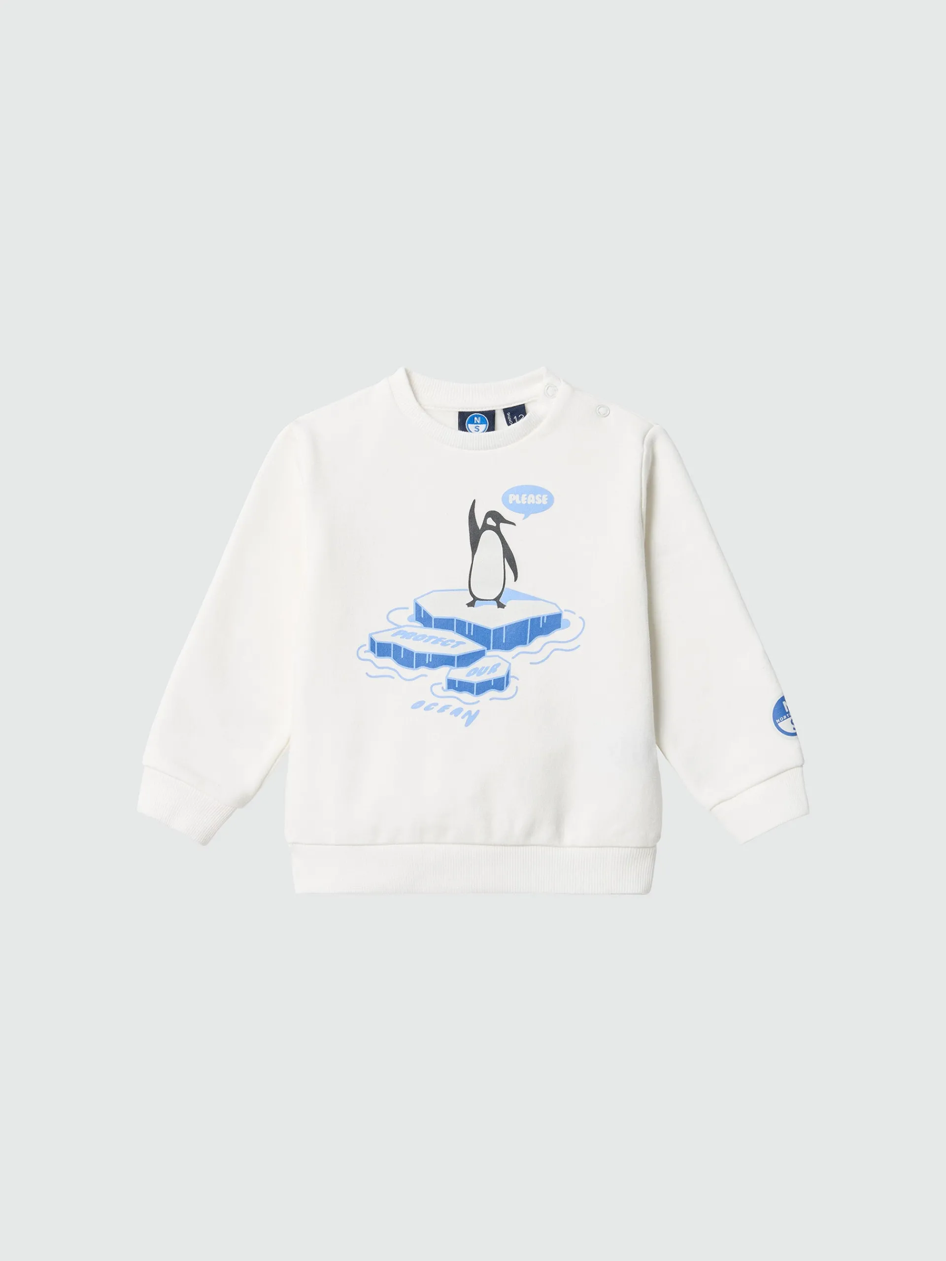 Design sportivo, spirito ironico e attenzione al pianeta. Questa tuta da bambino è realizzata in cotone organico stretch con interno garzato per risultare ancora più soffice al tatto. Si caratterizza per la stampa con i pinguini sul davanti, il logo North Sails sul polso e i bottoni a pressione sulla spalla per la massima comodità all”indosso.
