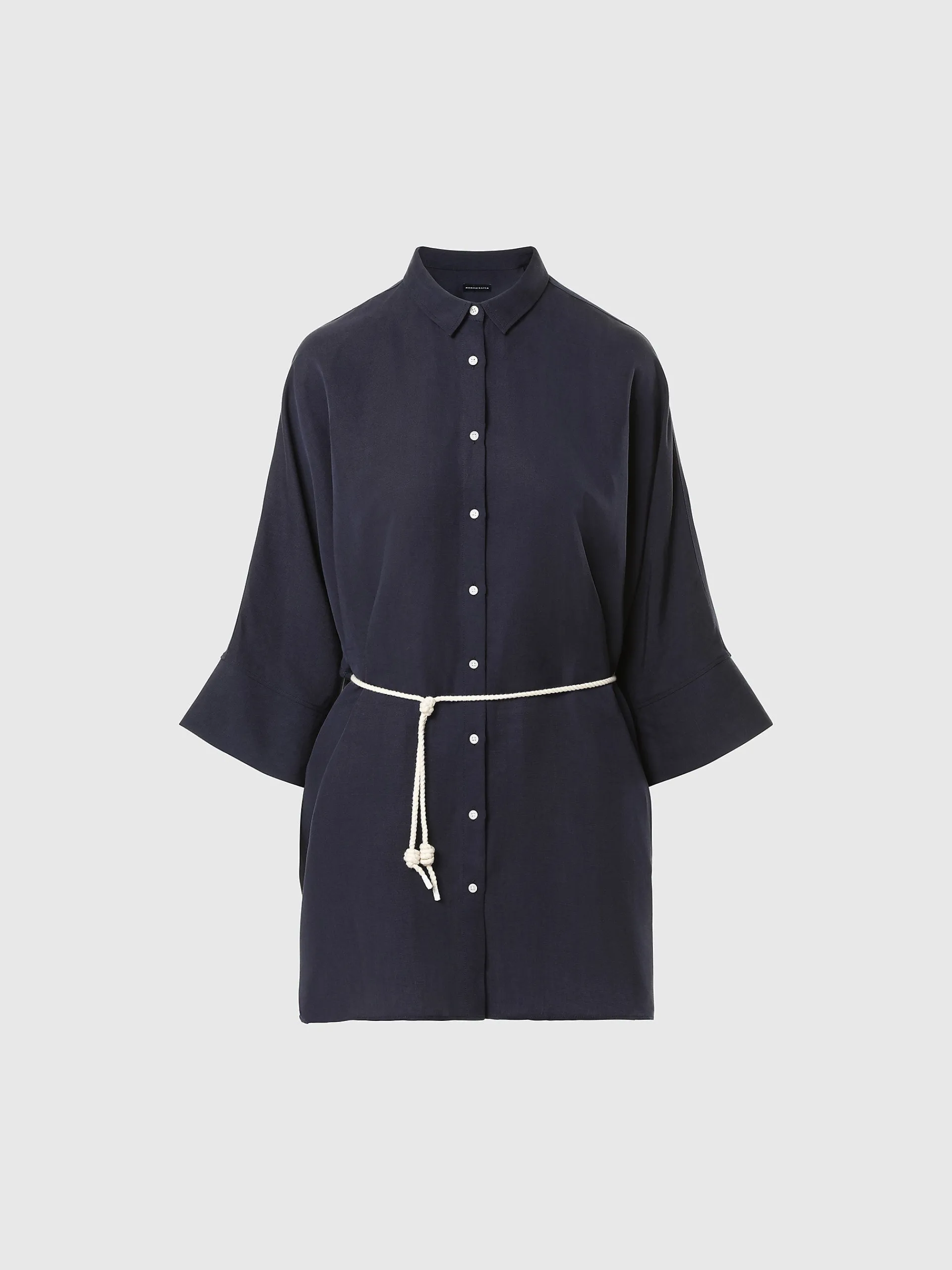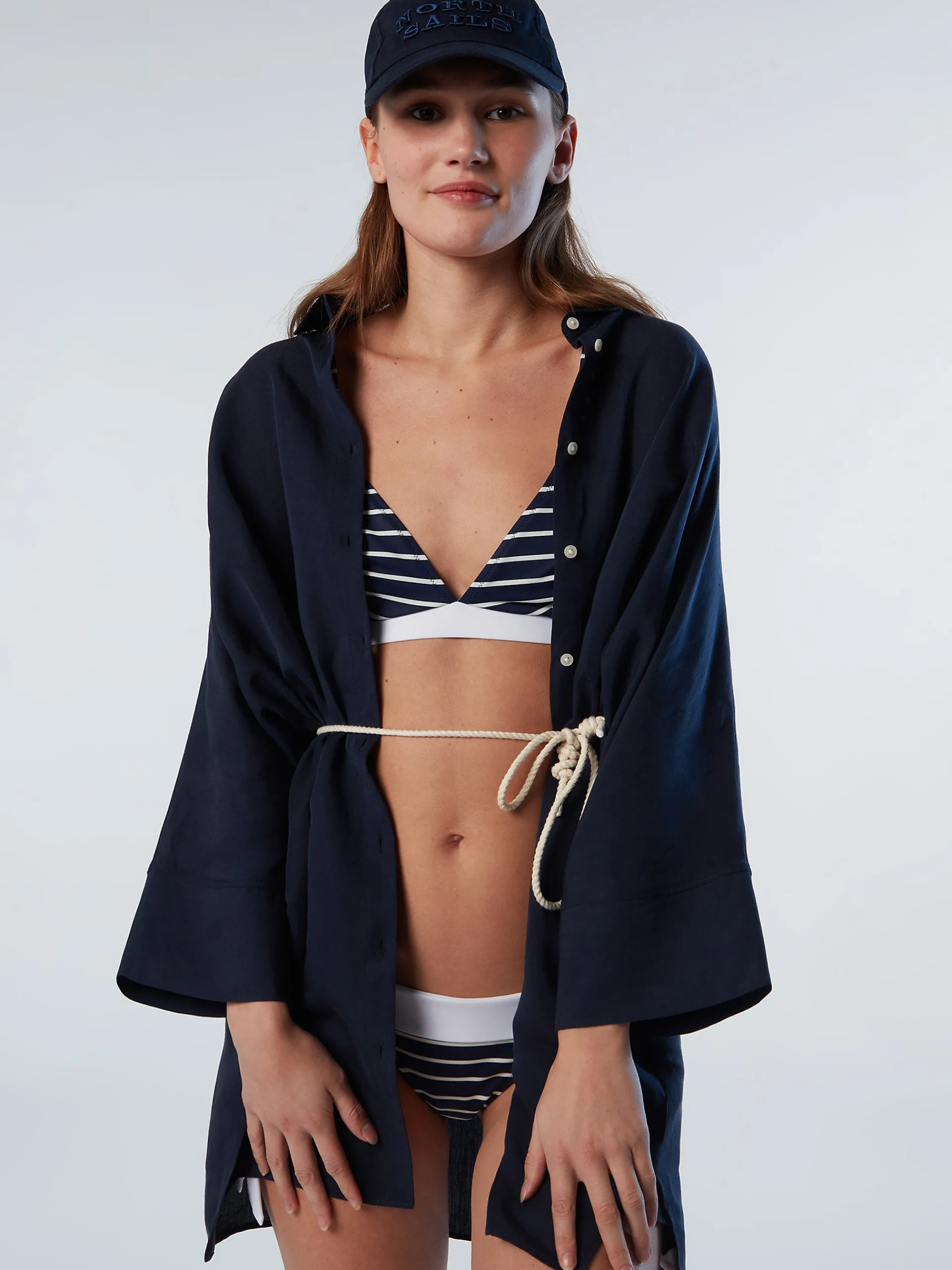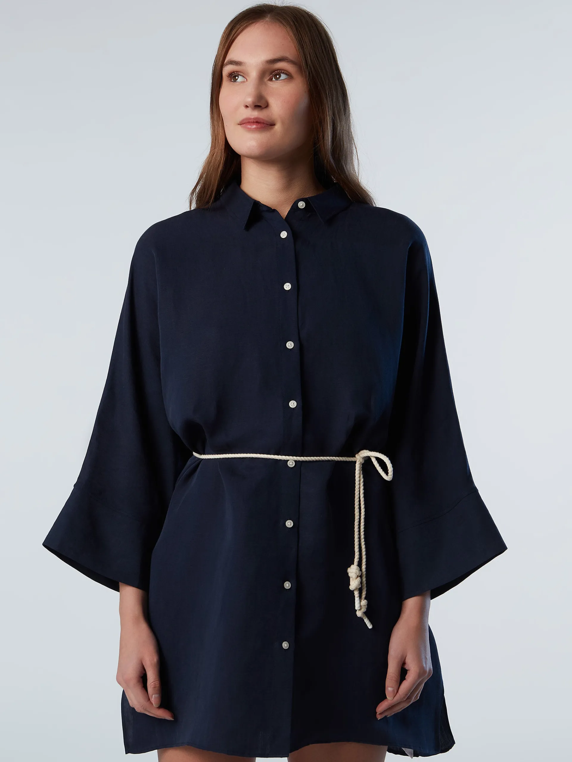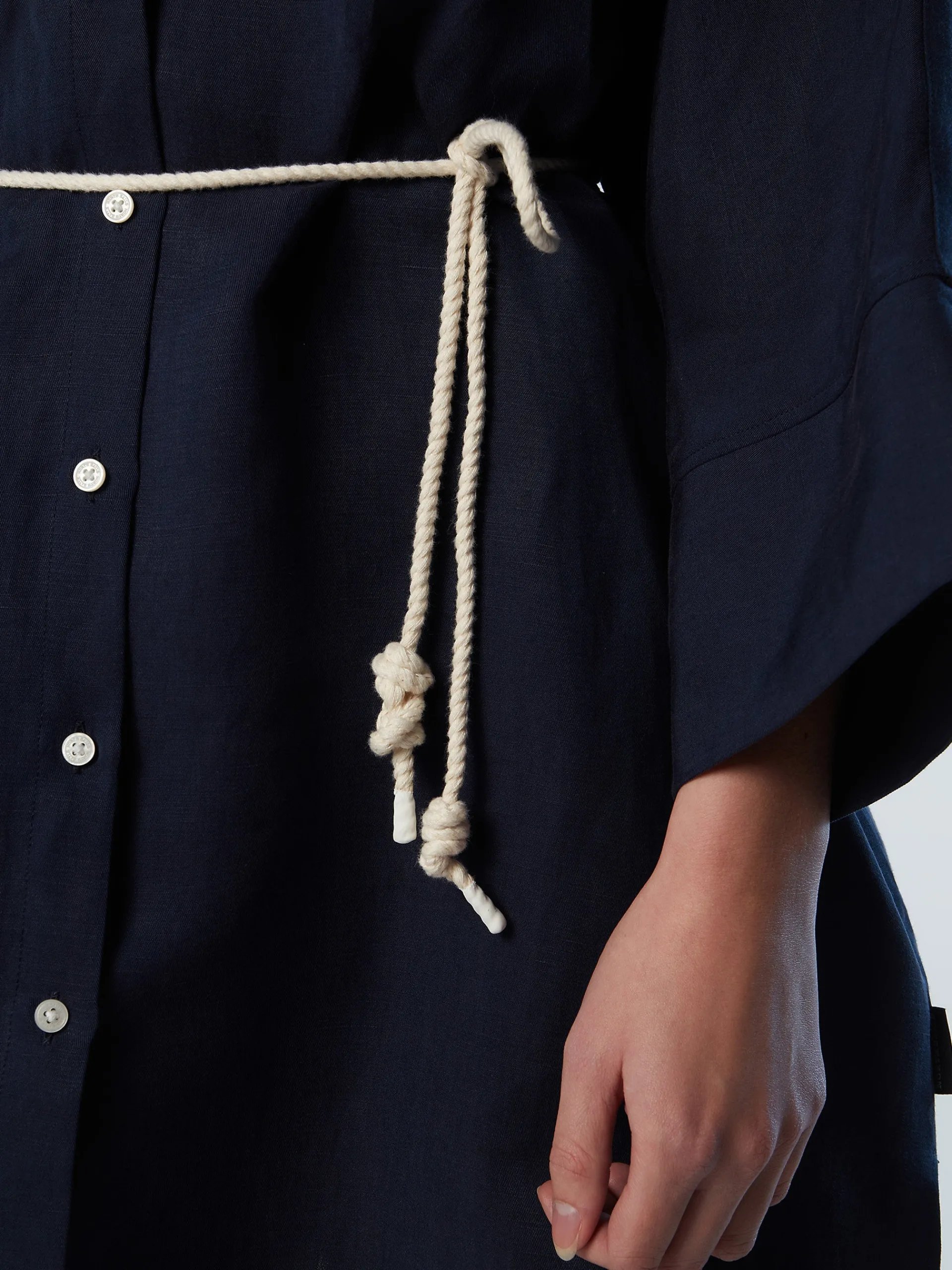 L'abito perfetto per l'estate è questo chemisier con maniche larghe a kimono dal look disinvolto e leggero. Progettato pensando allo stile e al Pianeta, il modello è realizzato in lino ultra resistente e tencel, due fibre naturalmente traspiranti e riciclabili. La coulisse enfatizza il punto vita e conferma il DNA North Sails legato al mare.