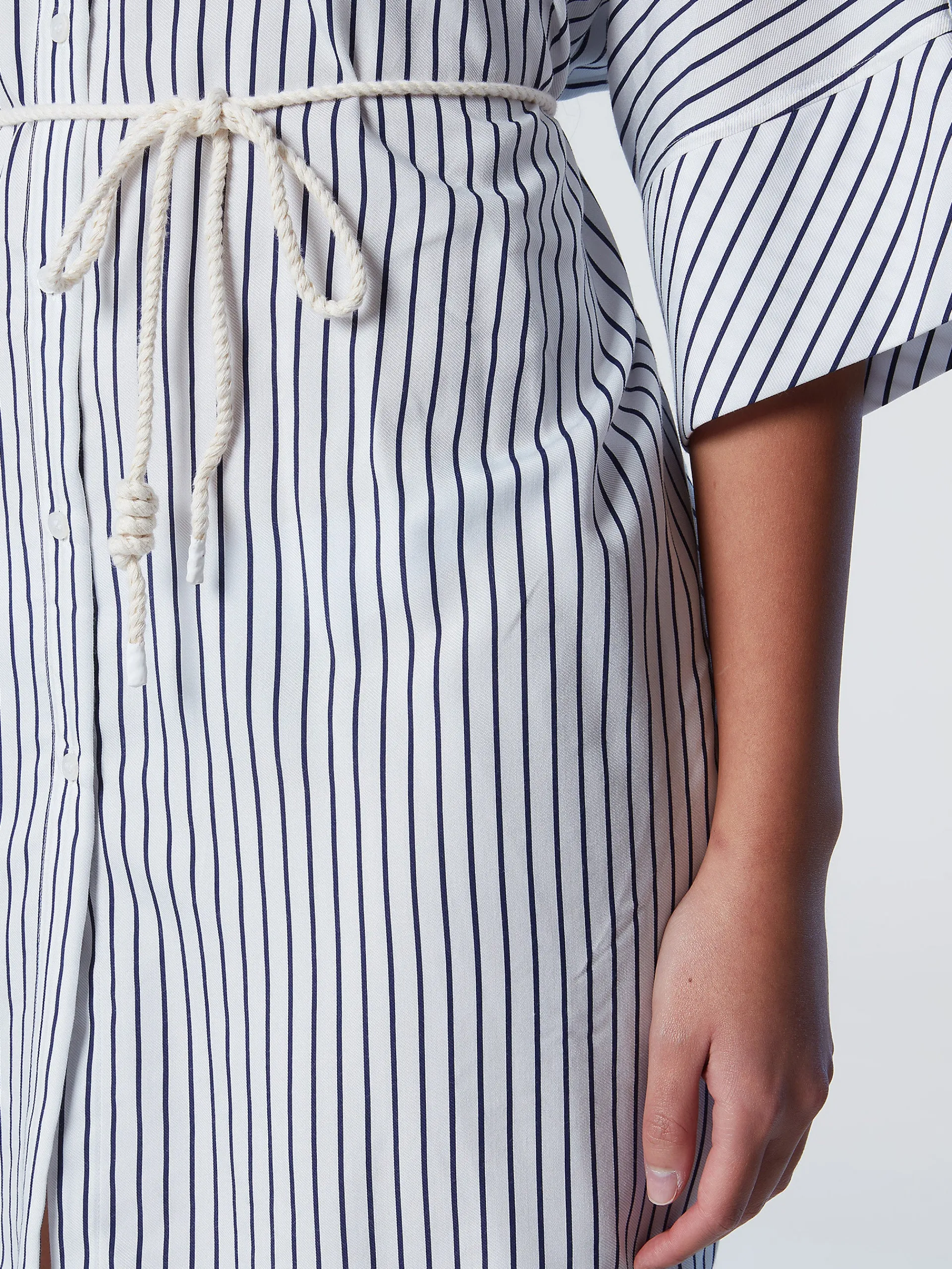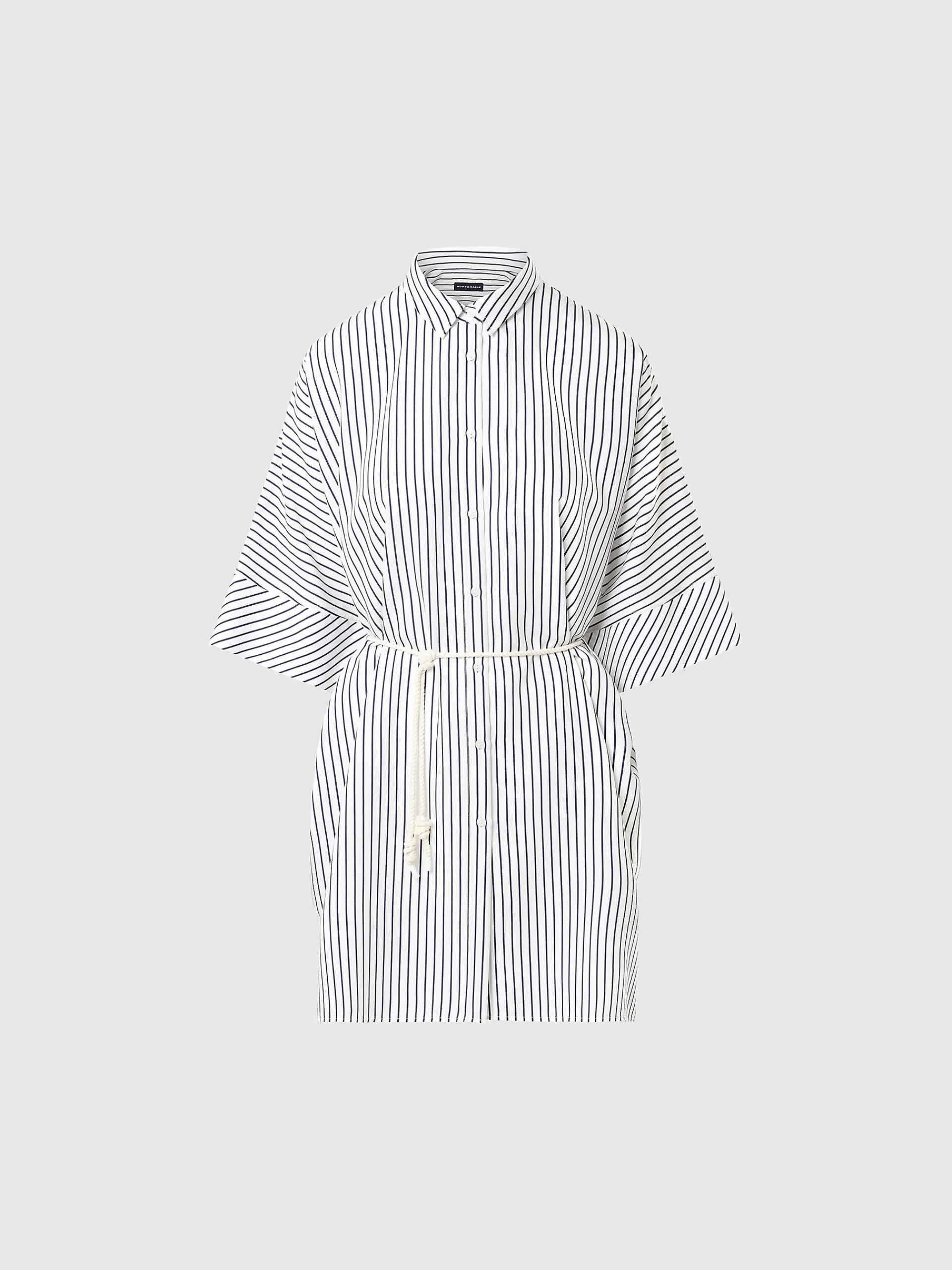 Un abito facile da indossare sopra il costume in spiaggia e come passe-partout dell'estate. Il modello è realizzato in misto viscosa con il classico motivo a righe e la coulisse in corda che richiamano l'heritage North Sails legato al mare e alla vela. Si caratterizza per le ampie maniche a kimono per una silhouette rilassata e versatile.