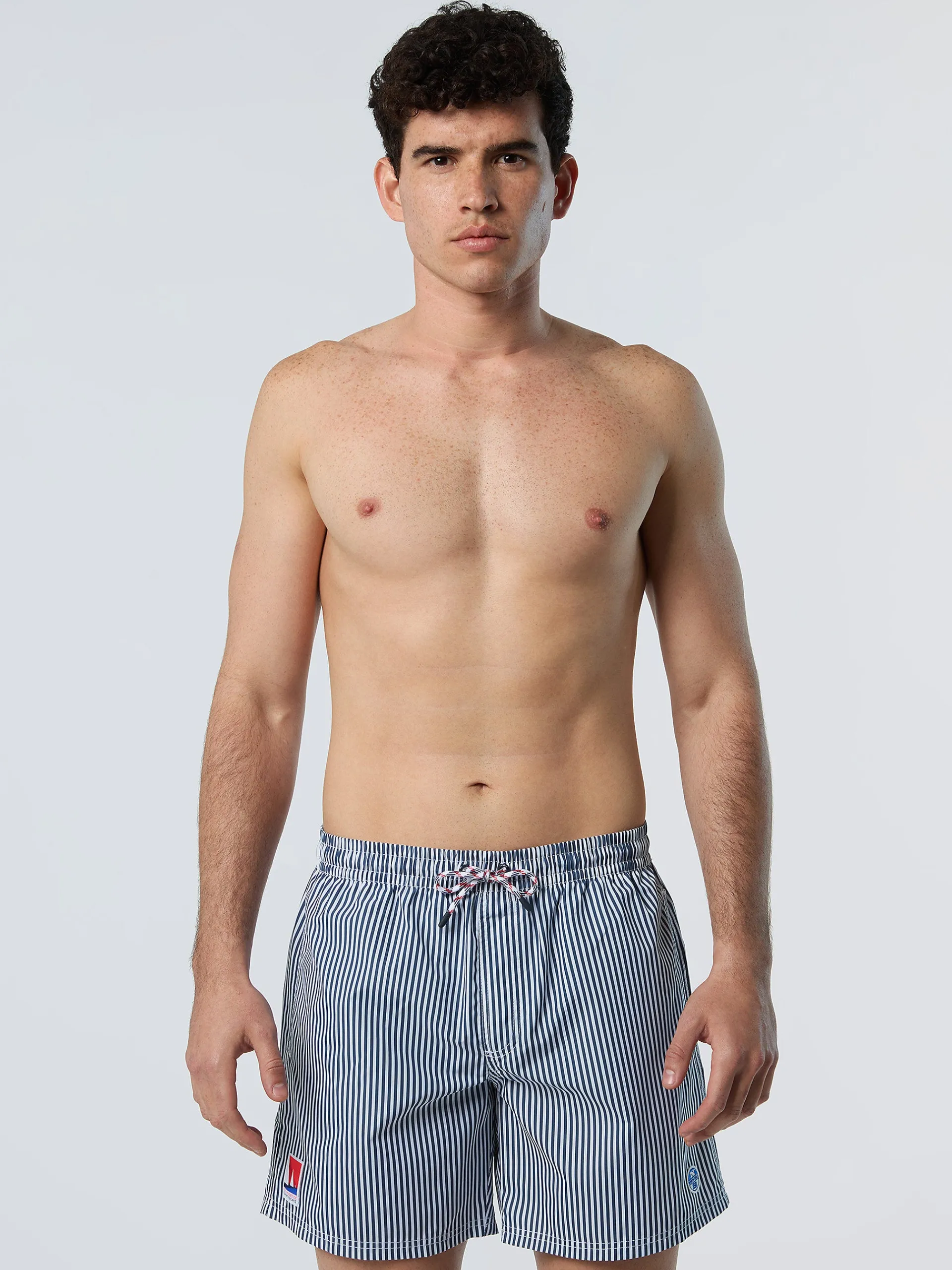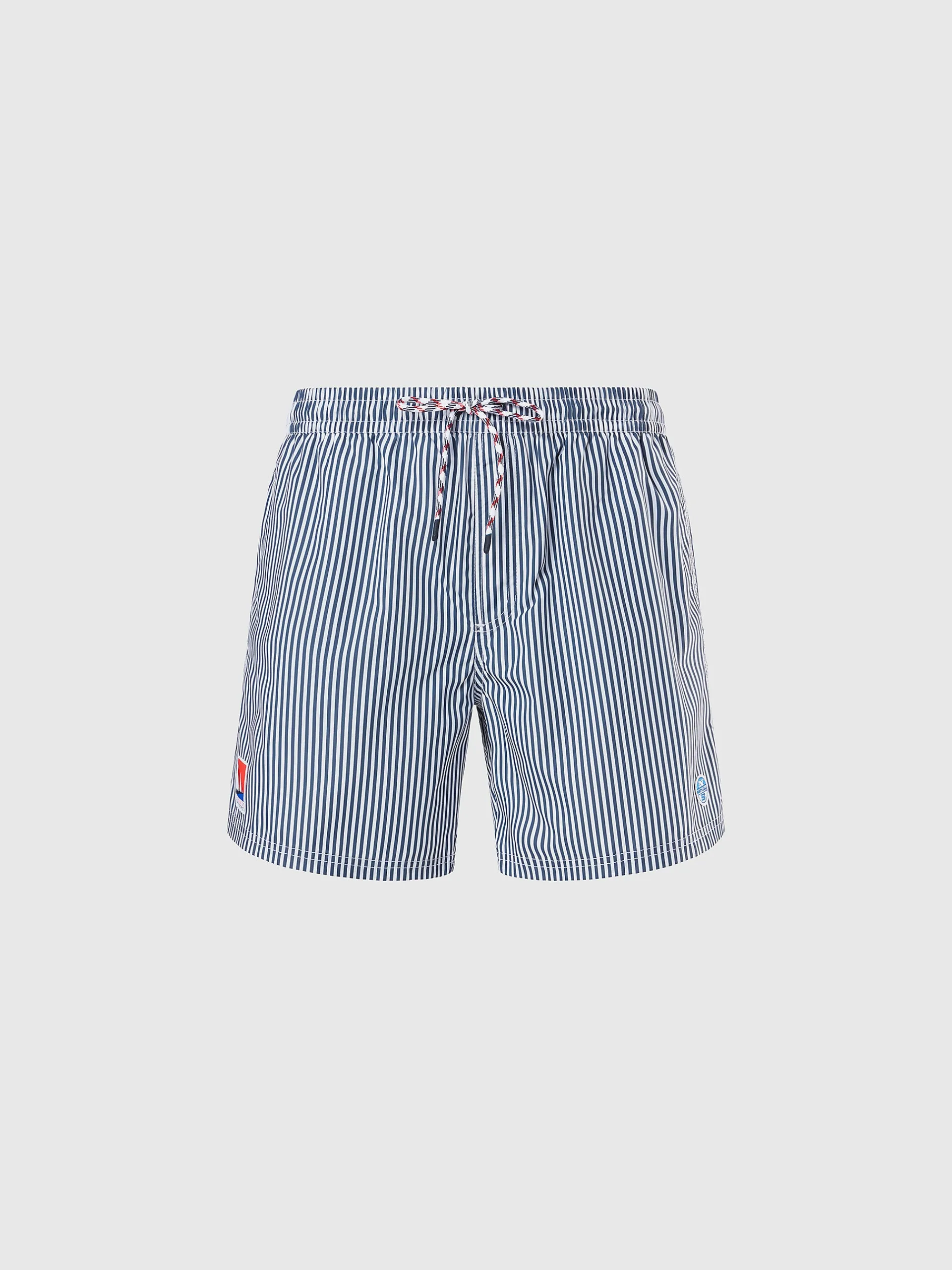 Boxer mare della capsule collection Les Voiles de Saint-Tropez, dedicata alla storica regata del Mediterraneo. Il modello coniuga stile e rispetto per l'ambiente perchè è realizzato in poliestere riciclato che riduce la quantità di rifiuti. Si caratterizza per la stampa del logo LVDST 2023 sulla tasca posteriore e la label ufficiale dell'evento sulla gamba destra per un tocco ultra esclusivo.