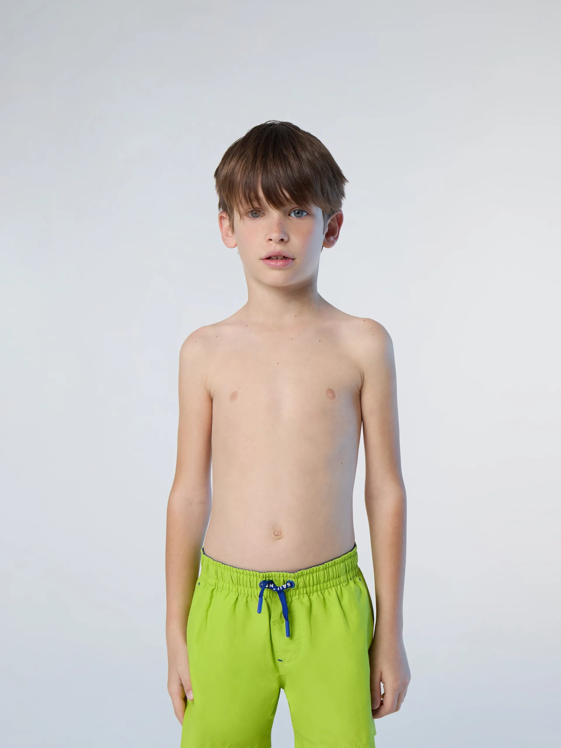 Questi boxer mare in stile volley sono i protagonisti dei look da spiaggia dei bambini. Il modello è realizzato in cotone e nylon riciclato che rispetta il pianeta perchè riduce la quantità di rifiuti dispersi nell'ambiente. Si caratterizza per l'interno del punto vita dal colore a contrasto con lettering North Sails. Rifinito con coulisse logata e patch classica sulla gamba.