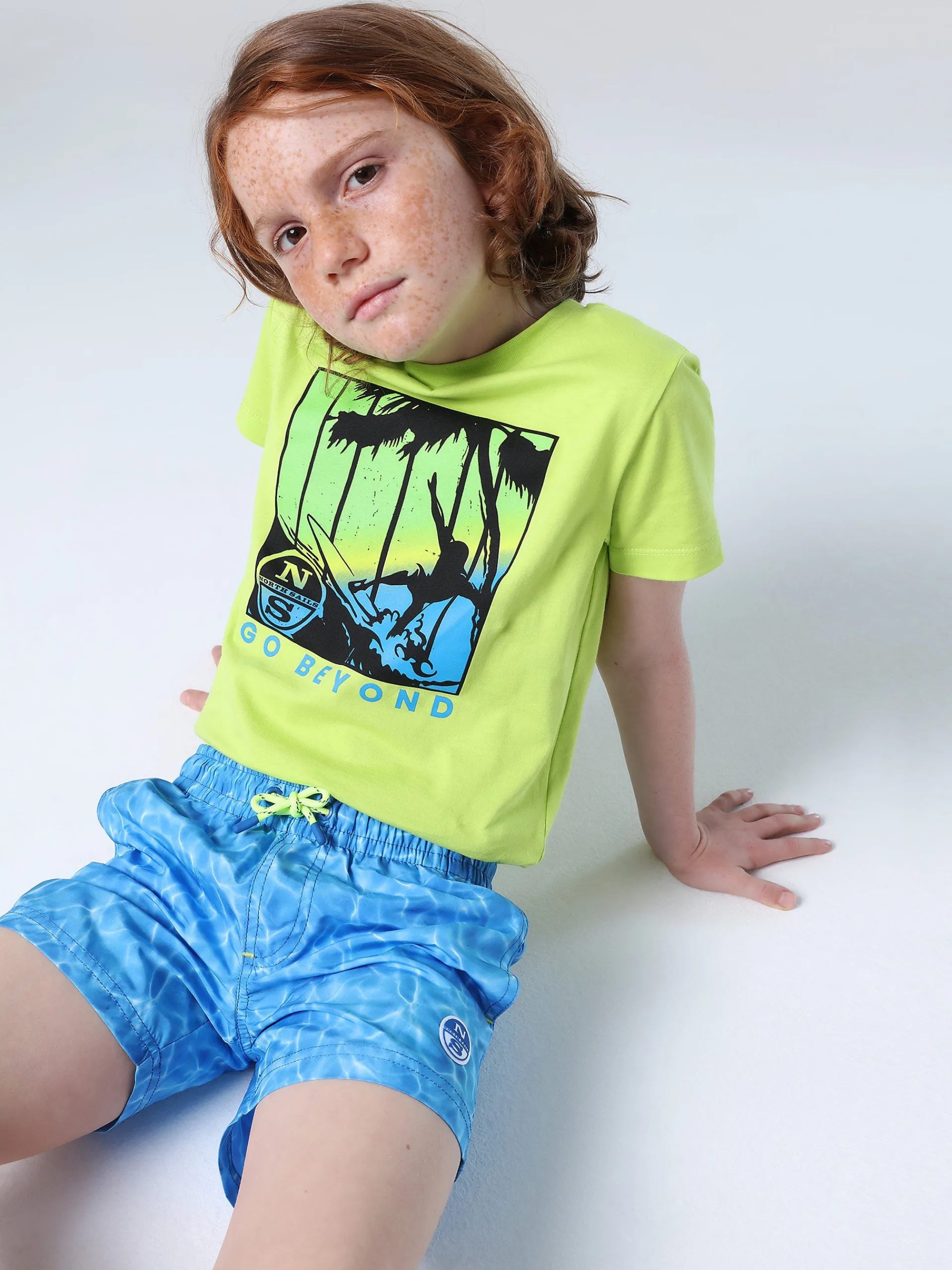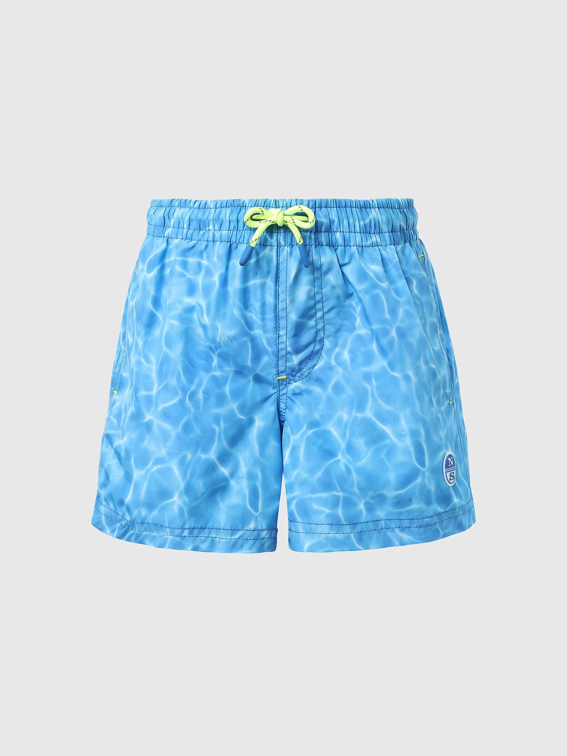 Questi boxer mare con stampa vivace all over aggiungeranno un tocco giocoso al guardaroba mini me delle vacanze. Il modello è realizzato in poliestere riciclato a basso impatto ambientale, trattato con un finish ad asciugatura rapida. L'interno della vita dal colore a contrasto e la coulisse aggiungono un tocco grafico deciso.