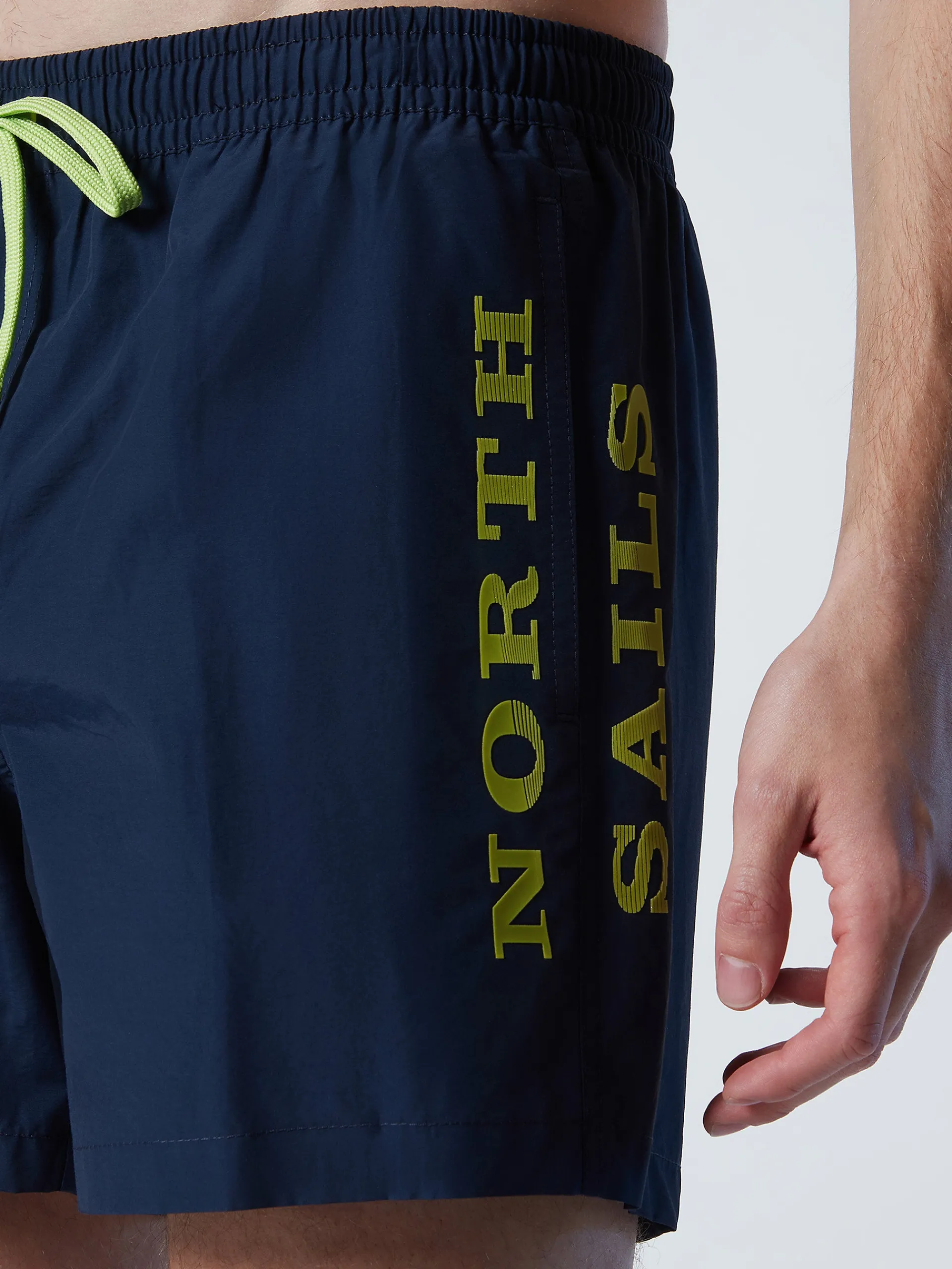 Aggiorna i look da spiaggia con questi boxer mare d'ispirazione volley. Il modello è realizzato in misto cotone e nylon riciclato, un tessuto appositamente progettato per ridurre i rifiuti e rispettare il Pianeta. La stampa 3D North Sails aggiunge un tocco grafico, mentre gli slip interni in rete offrono un supporto extra.