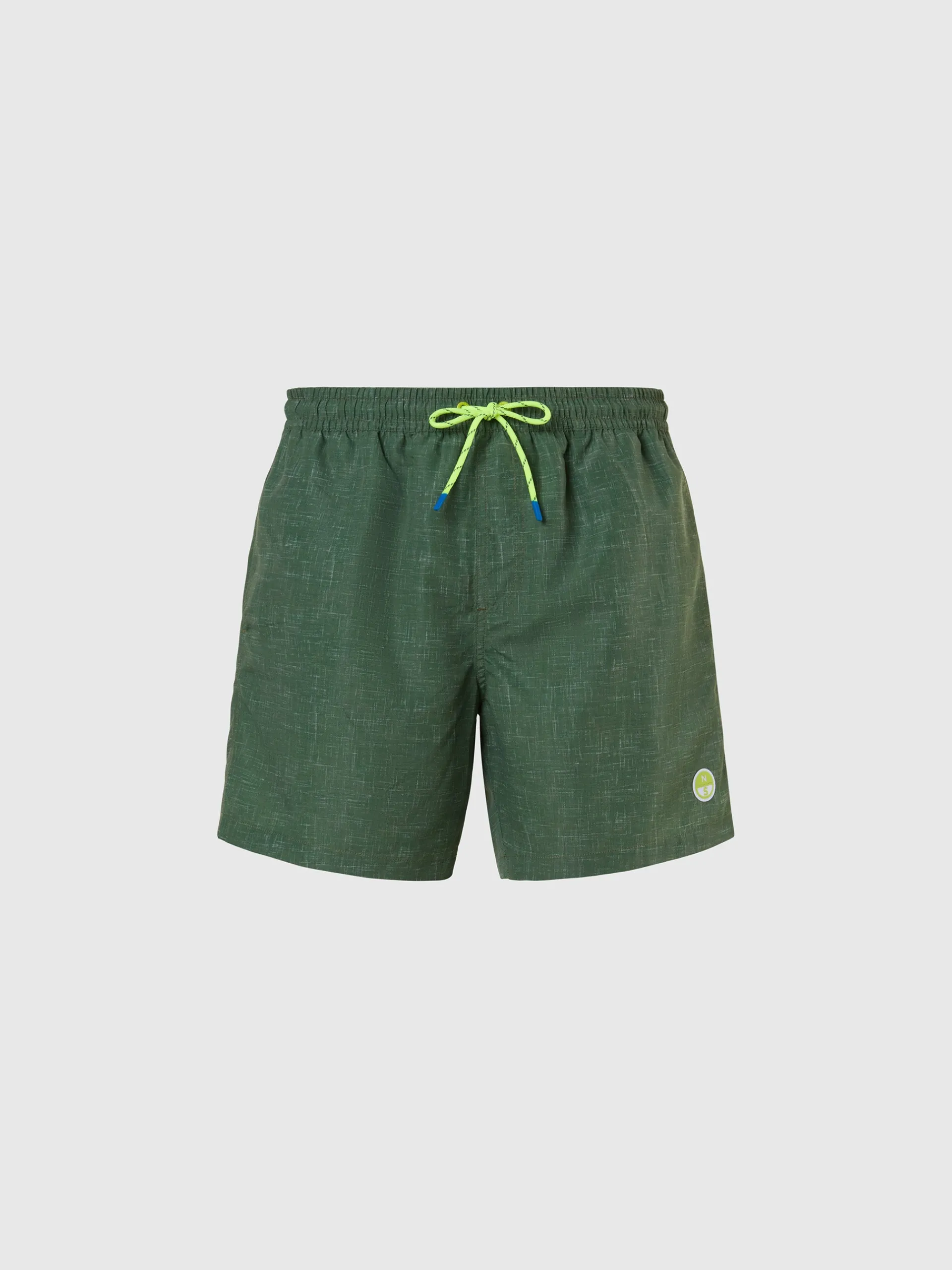 Chic, pratico e attento al pianeta. Questo boxer mare da uomo è realizzato in poliestere riciclato dall'effetto tattile sofisticato simile al lino. Il trattamento ad asciugatura rapida assicura massimo comfort, mentre i dettagli dal colore a contrasto danno ritmo grafico al look.