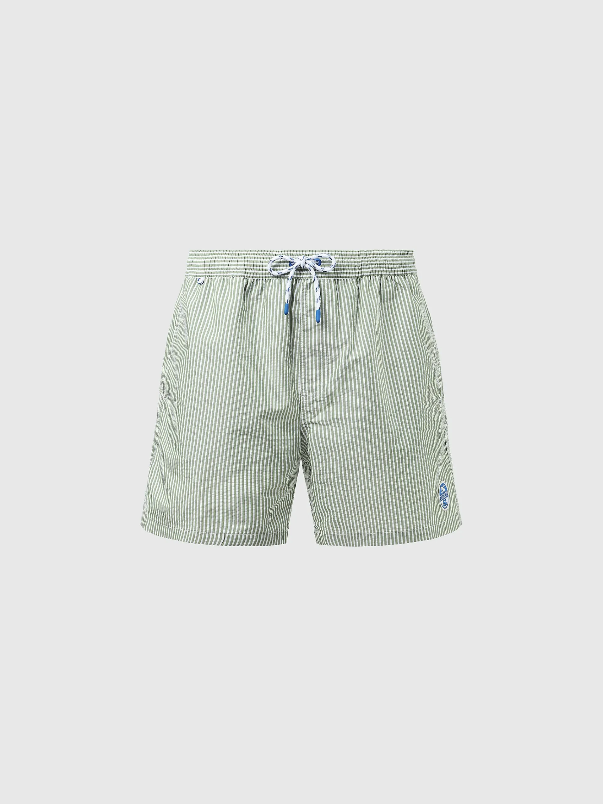 I boxer mare in seersucker a righe danno un tocco elegante ai look da spiaggia. Il modello è realizzato in un mix di cotone e poliestere riciclato che rispetta il Pianeta perché riduce la quantità di rifiuti. Rifinito con la tasca posteriore con patta e il logo sulla gamba per un tocco North Sails inconfondibile.