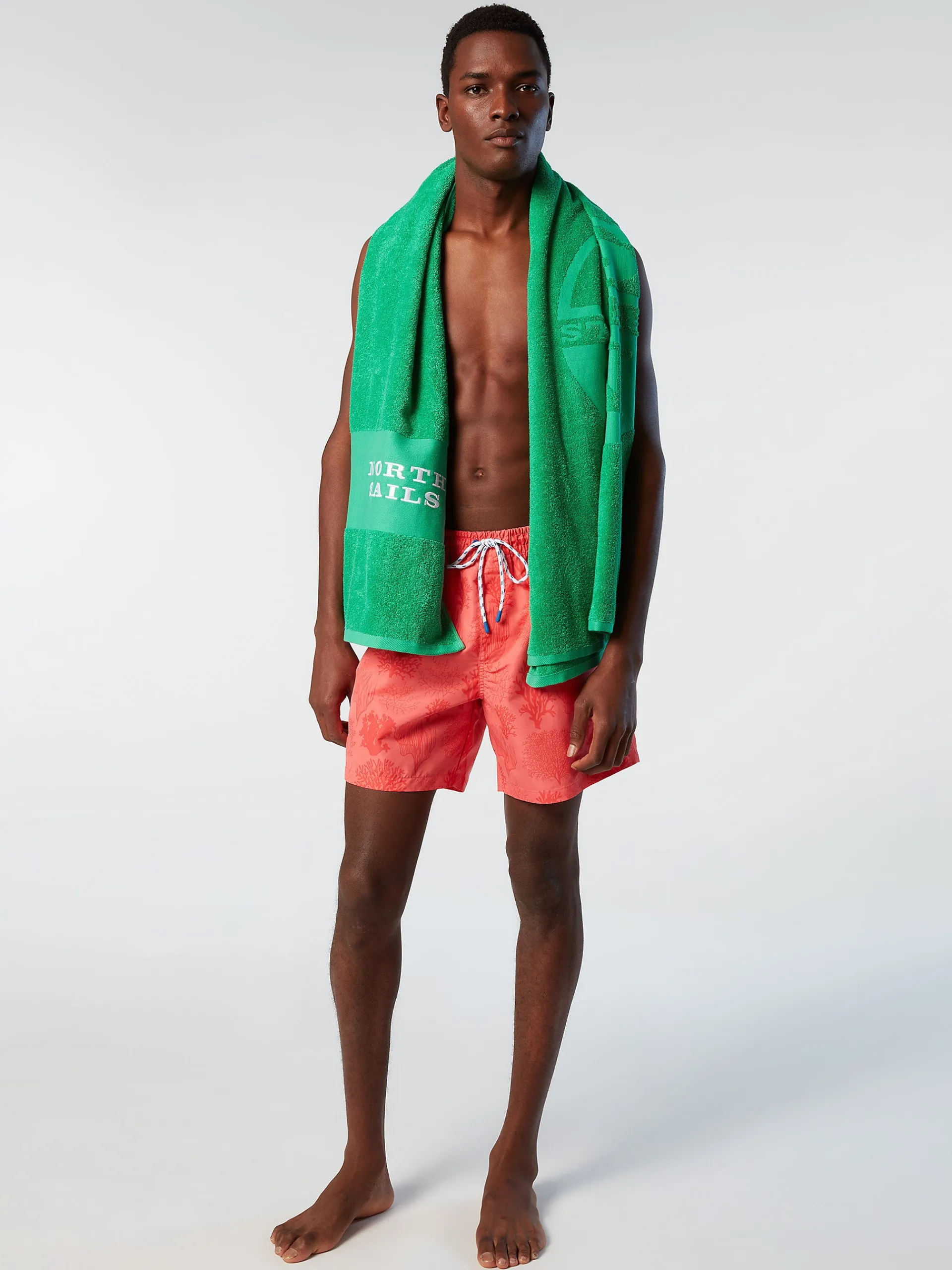 Questi boxer mare con stampa grafica all over lasciano il segno in piscina e in spiaggia. Il modello combina stile e rispetto per il Pianeta perché è realizzato in poliestere riciclato e ha un finish ultra morbido effetto pesca. Rifinito con il logo sulla gamba e la coulisse a righe che richiama il nostro heritage nautico.