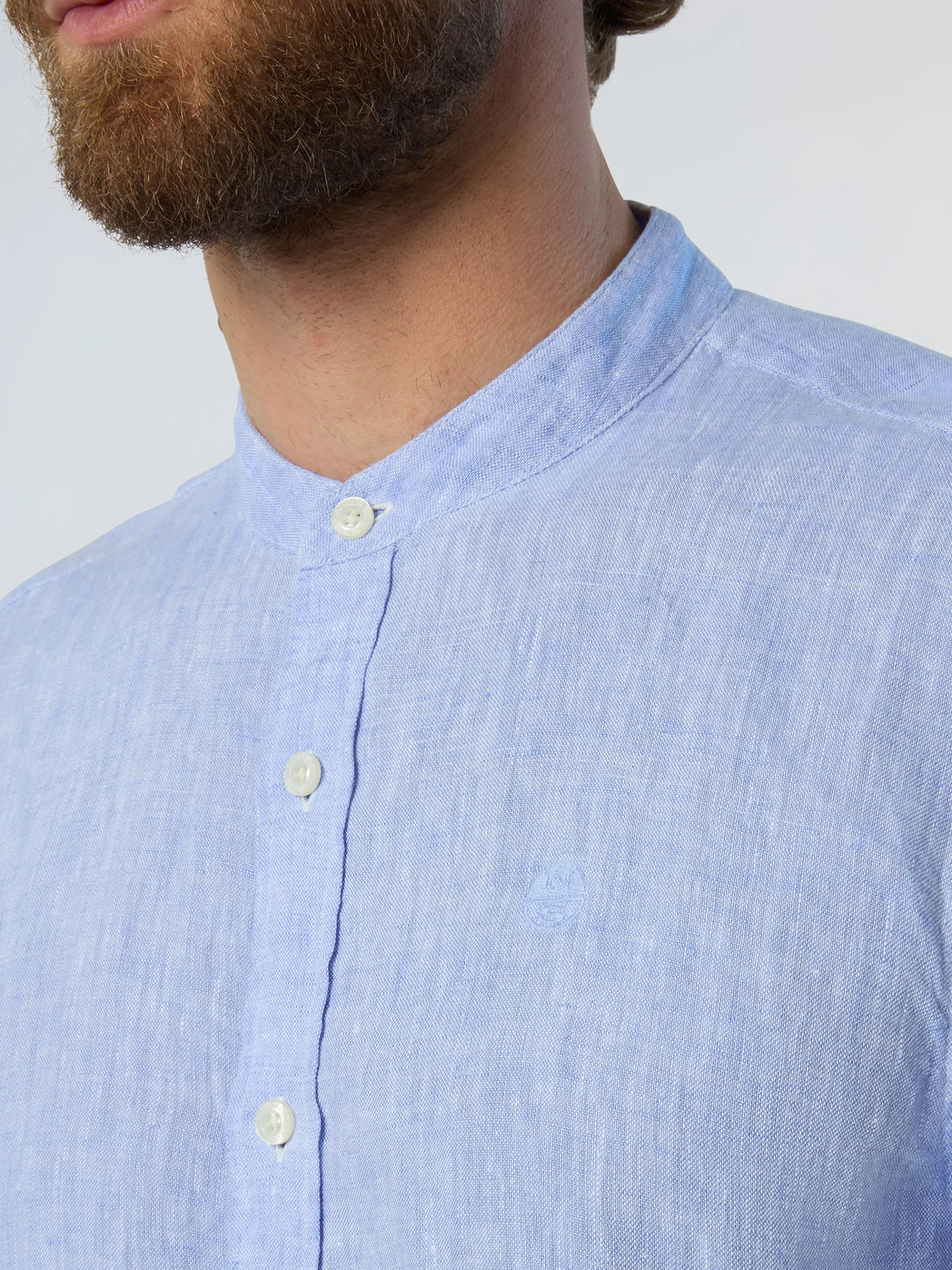 La camicia con collo alla coreana da indossare con il chino in città e fresca in spiaggia sopra il costume da bagno. Il modello è realizzato in lino traspirante e completamente biodegradabile, in linea con il nostro impegno per la protezione del pianeta. Impreziosita con il ricamo del logo in un elegante tono su tono.