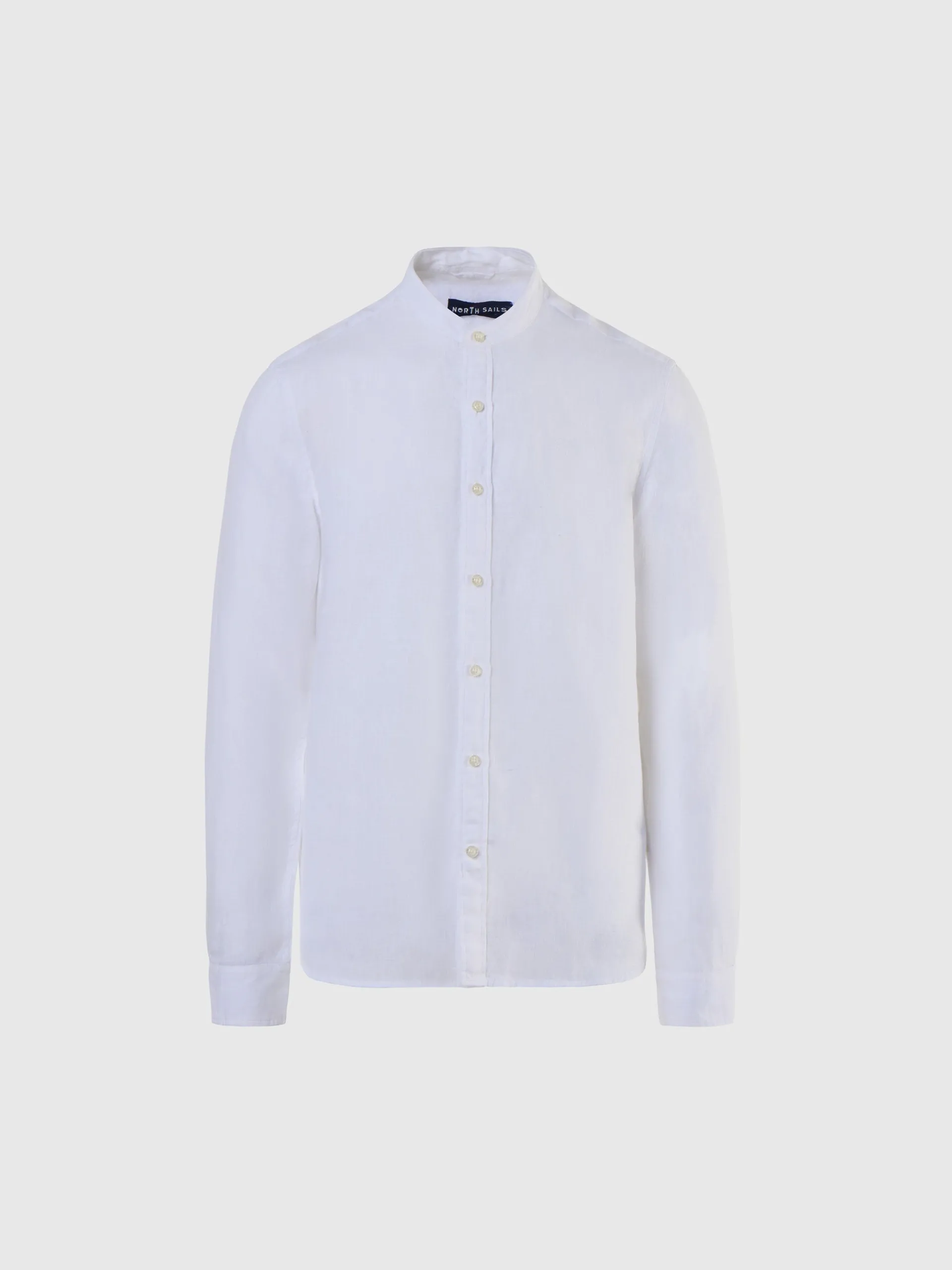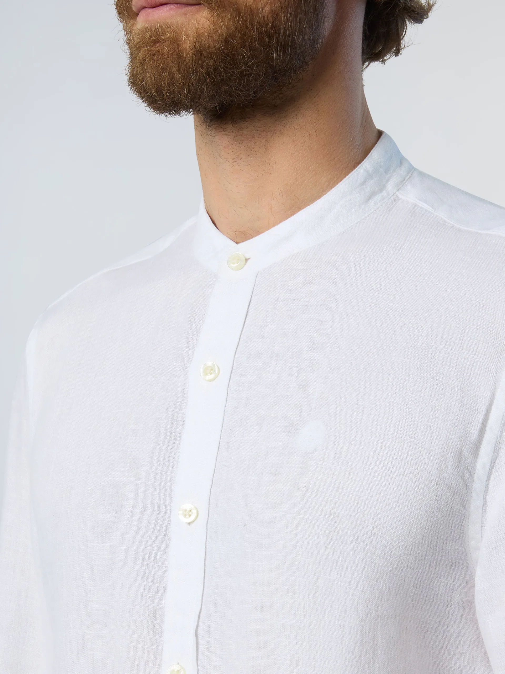 La camicia con collo alla coreana da indossare con il chino in città e fresca in spiaggia sopra il costume da bagno. Il modello è realizzato in lino traspirante e completamente biodegradabile, in linea con il nostro impegno per la protezione del pianeta. Impreziosita con il ricamo del logo in un elegante tono su tono.