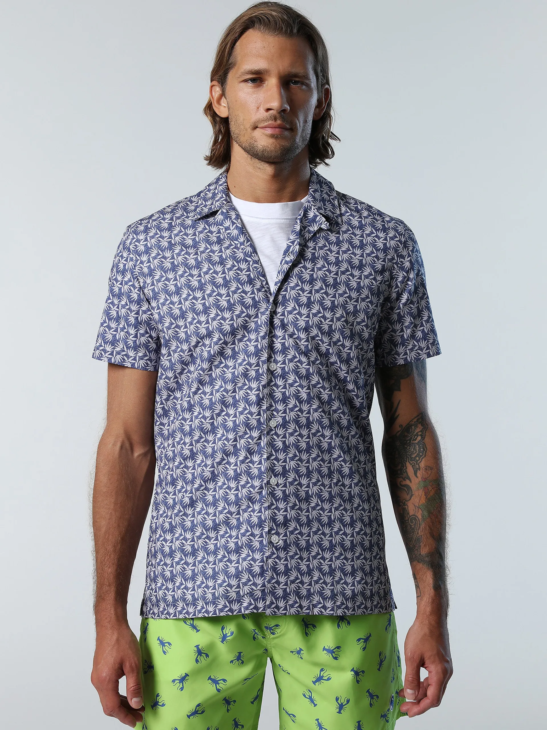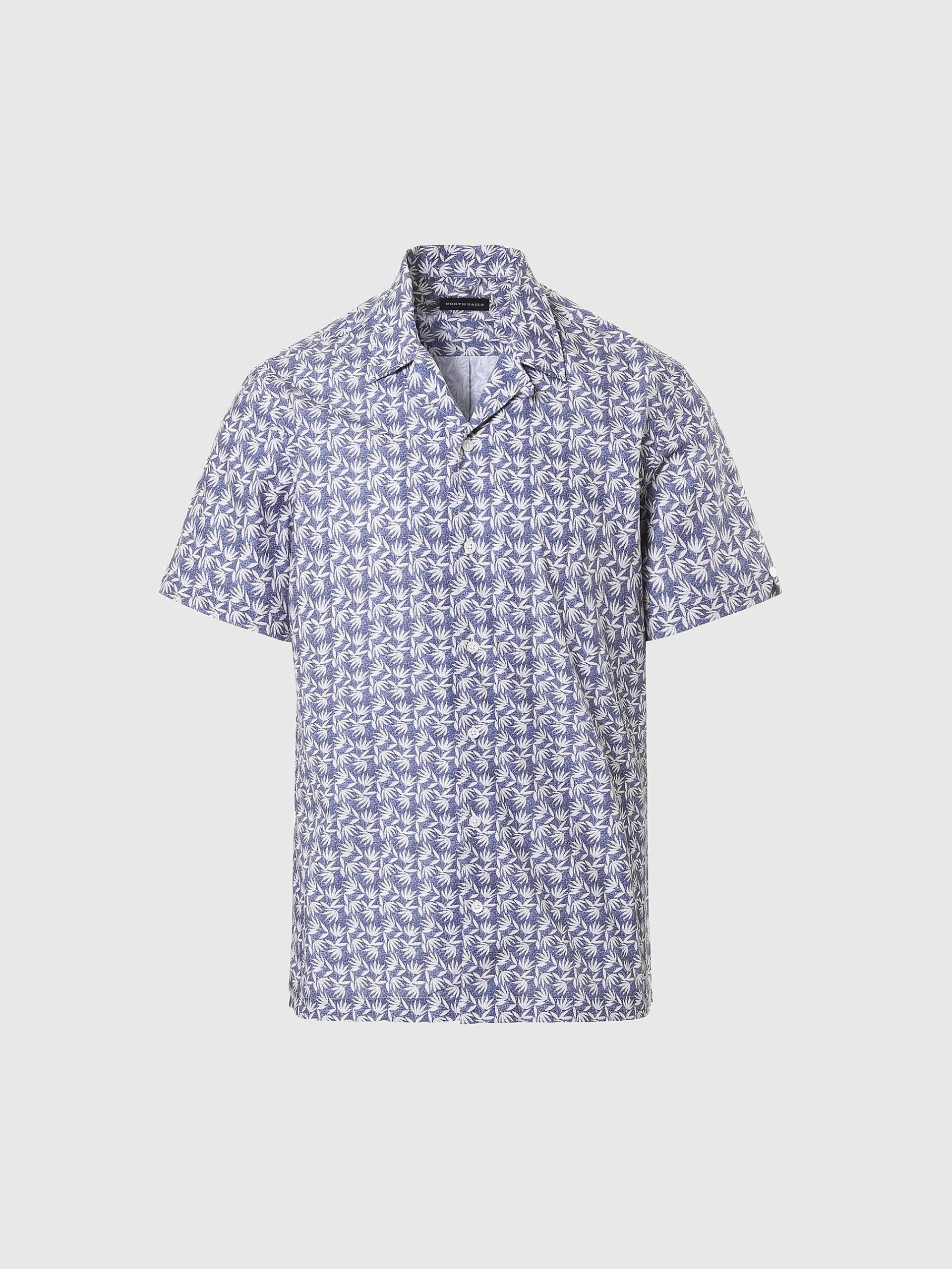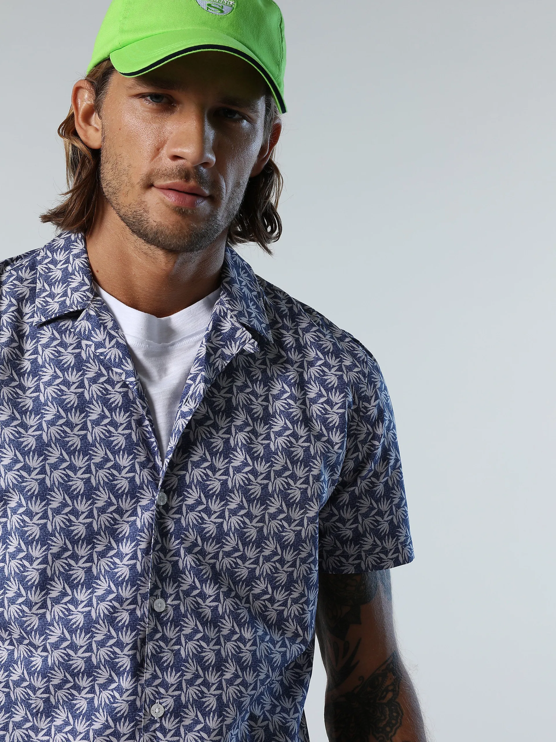 La camicia da uomo a maniche corte che aggiunge un twist ironico e vacanziero al guardaroba dell'estate. Il modello è realizzato in morbido popeline di cotone con stampa tropicale all over. Si caratterizza per il classico colletto bowling dal mood rilassato, la chiusura con bottoni e il carré sul retro.