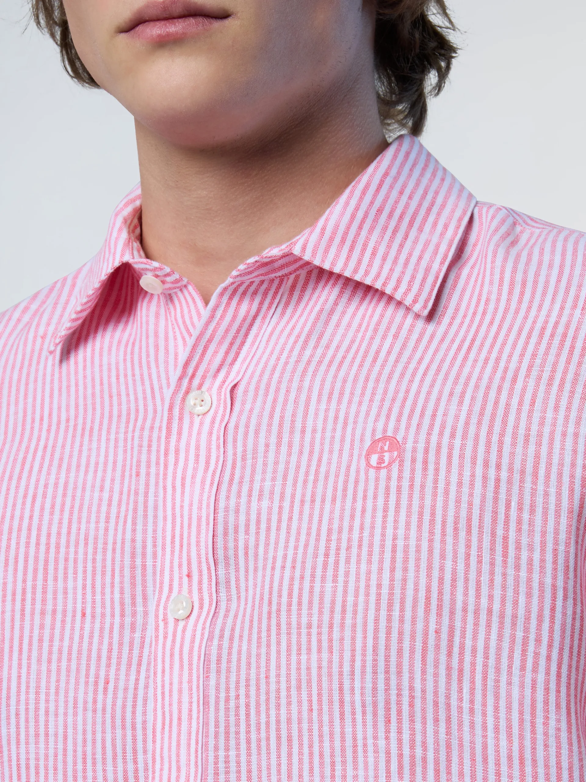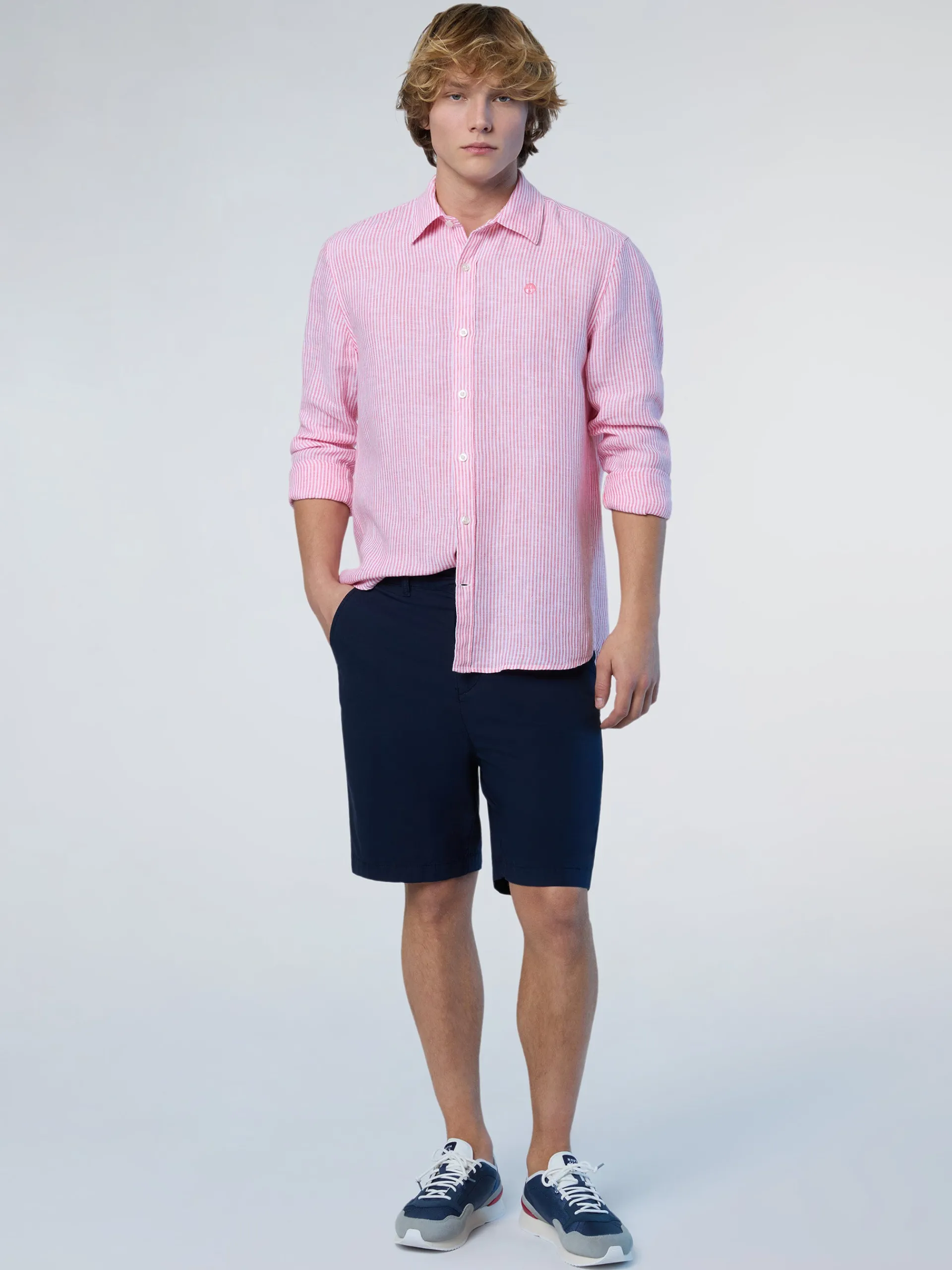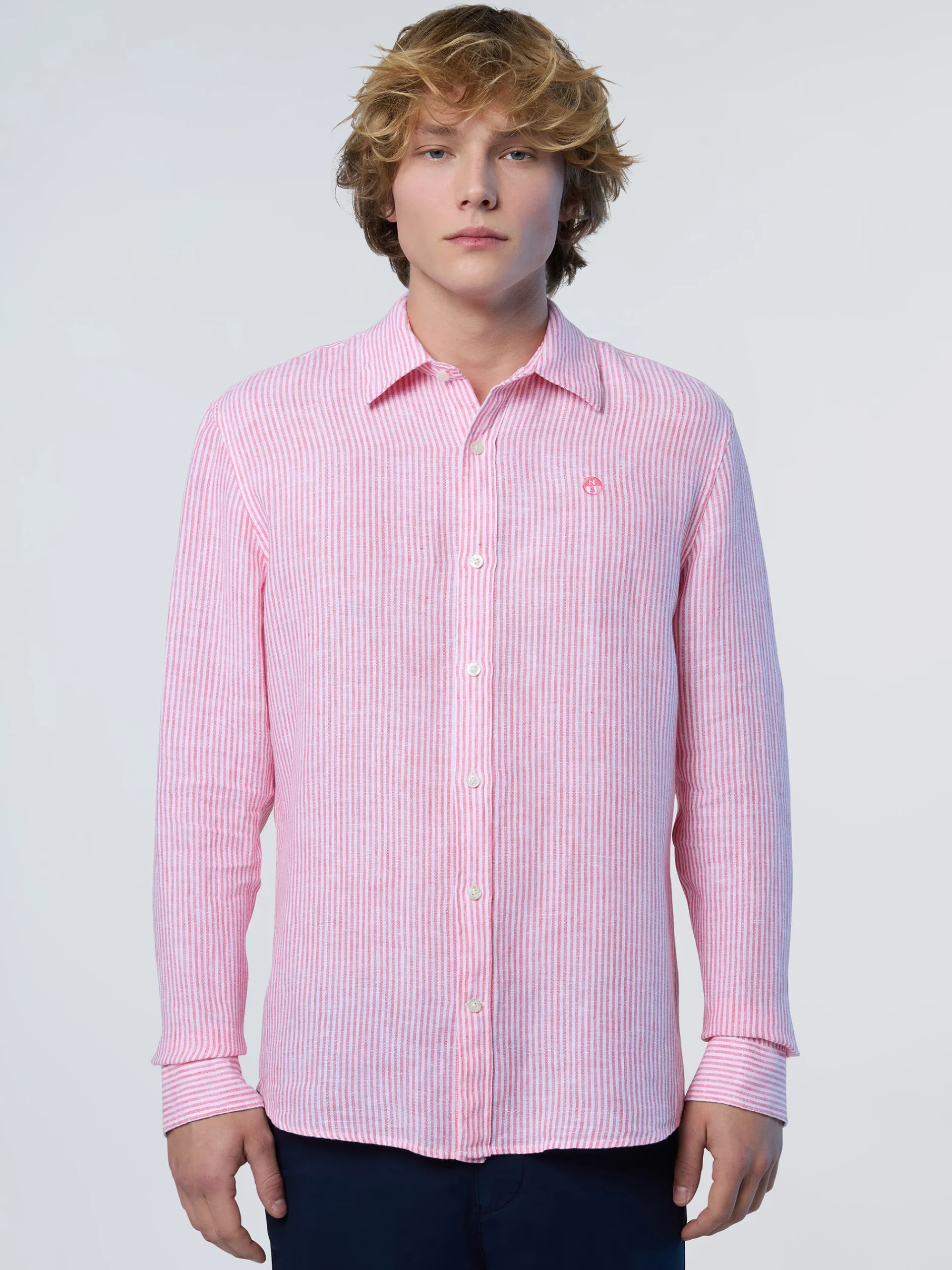 Facile da indossare, leggera e rispettosa del pianeta. Questa camicia a maniche lunghe è realizzata in puro lino: una fibra naturale fresca, traspirante e completamente biodegradabile, perfetta per i mesi estivi. Con il suo caratteristico motivo a righe, il modello da uomo presenta una vestibilità regolare con colletto alla francese, orlo arrotondato e logo sul petto per un tocco distintivo e discreto.