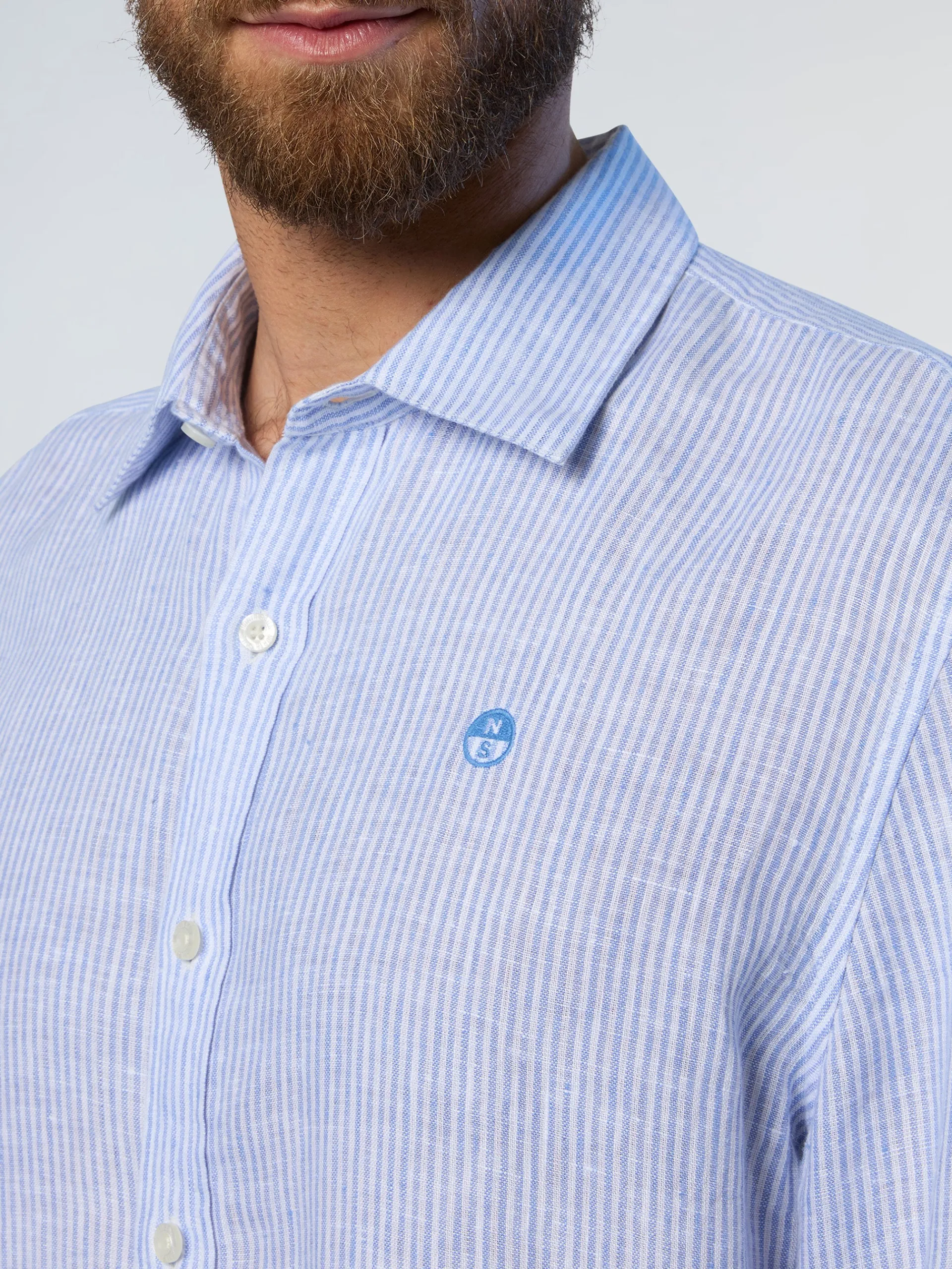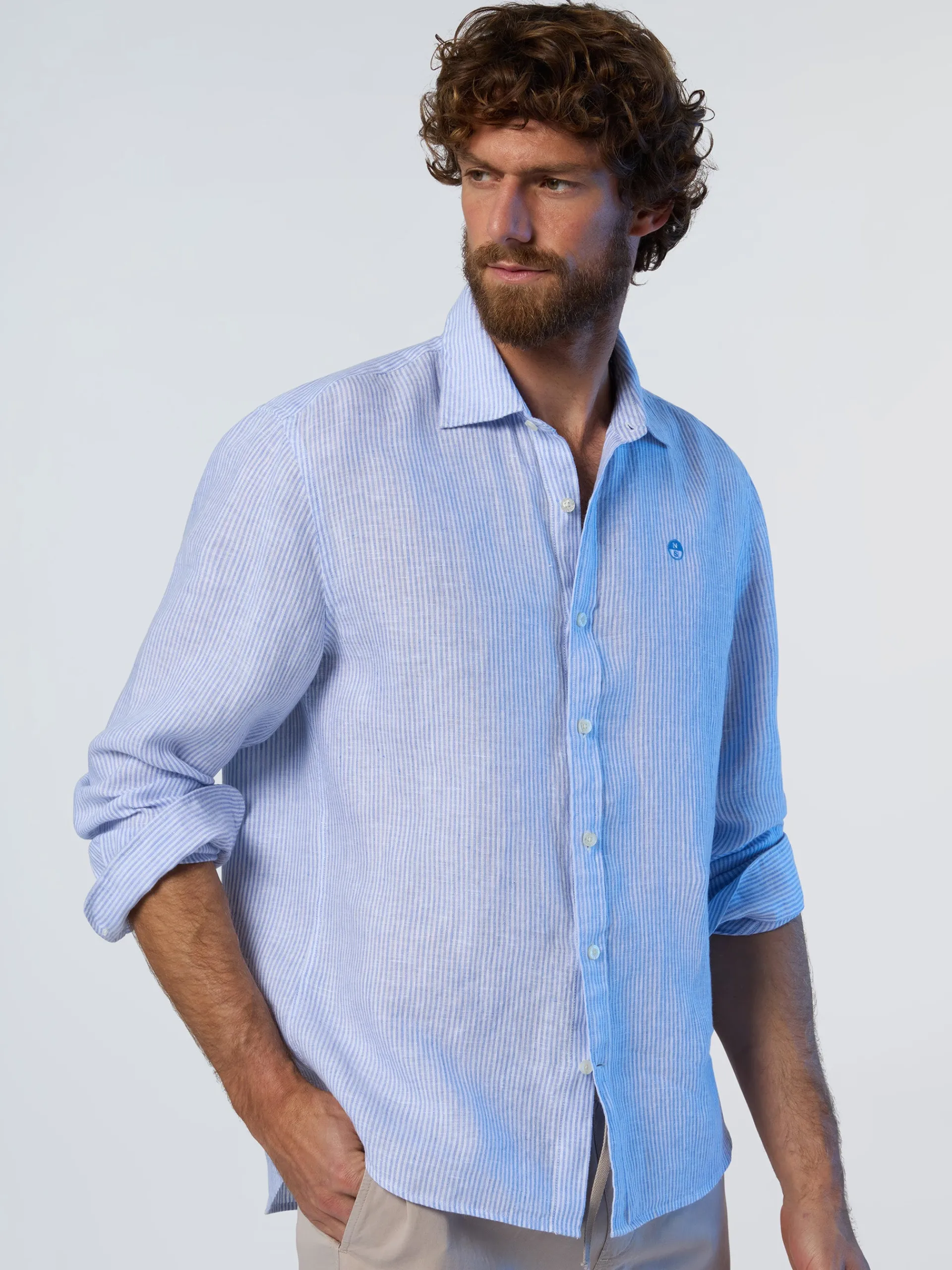 Facile da indossare, leggera e rispettosa del pianeta. Questa camicia a maniche lunghe è realizzata in puro lino: una fibra naturale fresca, traspirante e completamente biodegradabile, perfetta per i mesi estivi. Con il suo caratteristico motivo a righe, il modello da uomo presenta una vestibilità regolare con colletto alla francese, orlo arrotondato e logo sul petto per un tocco distintivo e discreto.