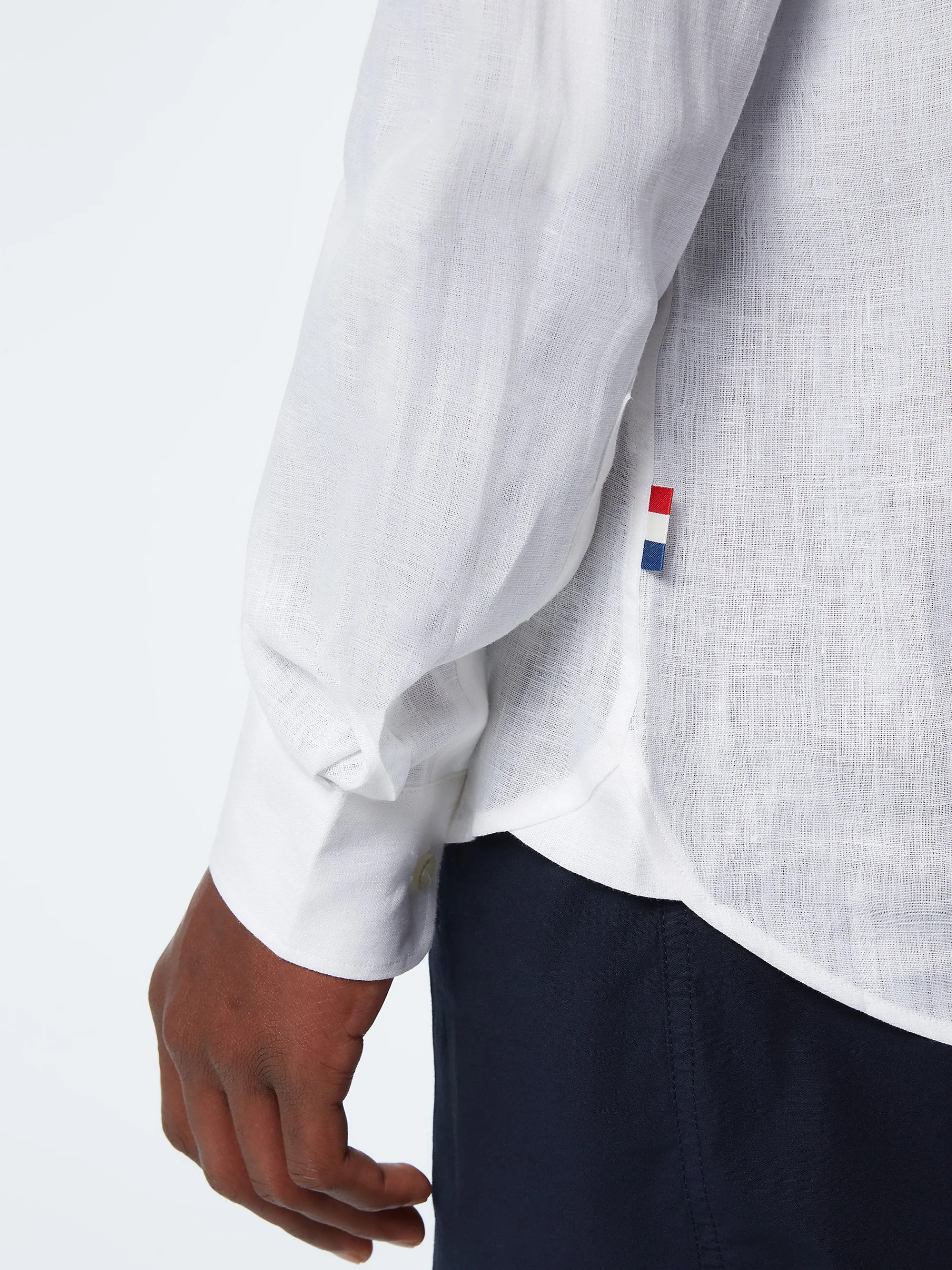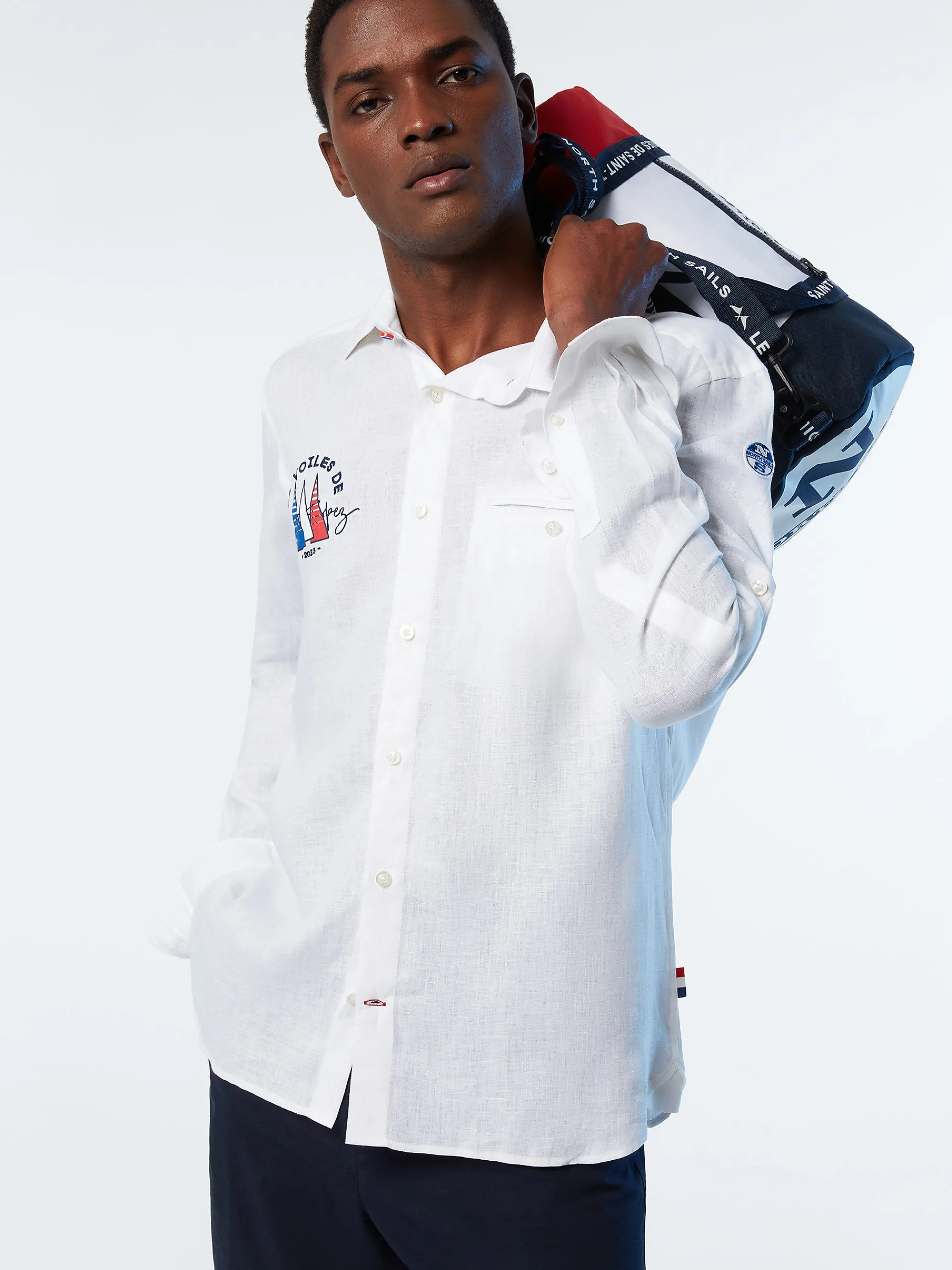La camicia da uomo dal look senza tempo è enfatizzata dall'attitudine esclusiva della capsule collection Les Voiles de Saint-Tropez. Il modello è realizzato in lino ultra traspirante e completamente biodegradabile per un design ricercato, confortevole e attento al Pianeta. Si caratterizza per le maniche da risvoltare e i dettagli grafici LVDST sul petto.