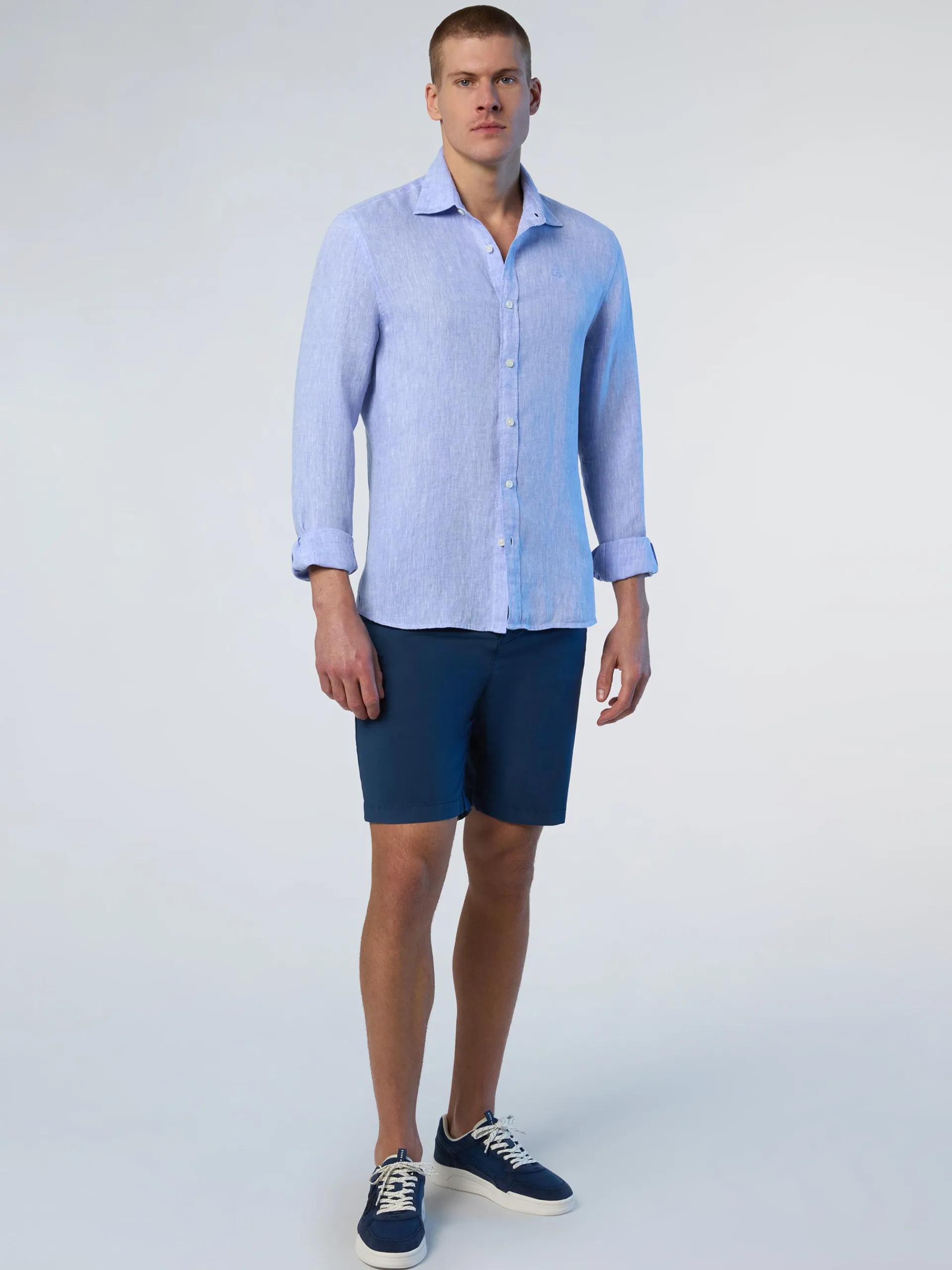 La camicia da uomo perfetta da indossare con il chino in città e fresca in spiaggia sopra il costume da bagno. Il modello ha un design senza tempo con collo alla francese ed è realizzato in lino traspirante e completamente biodegradabile, in linea con il nostro impegno per la protezione del pianeta. Impreziosita con il ricamo del logo in un elegante tono su tono.