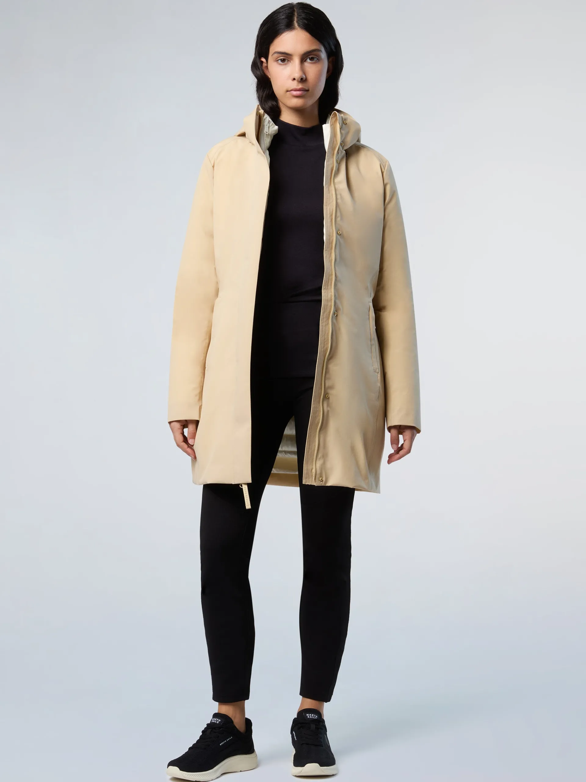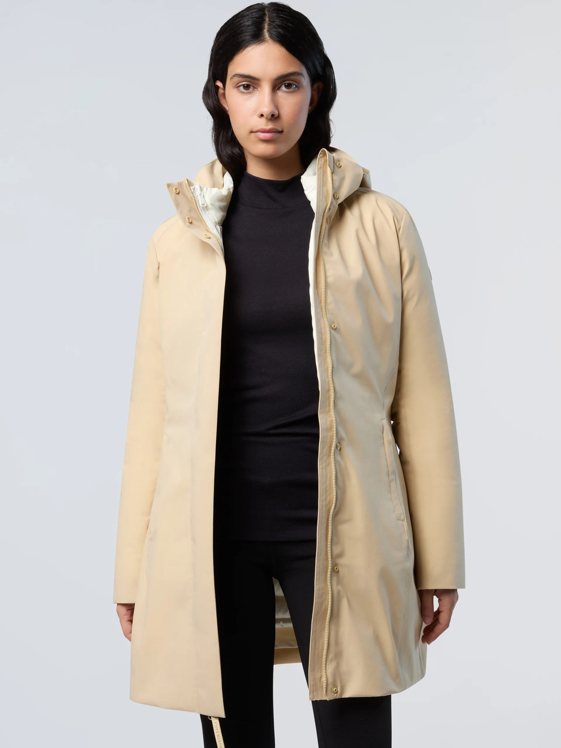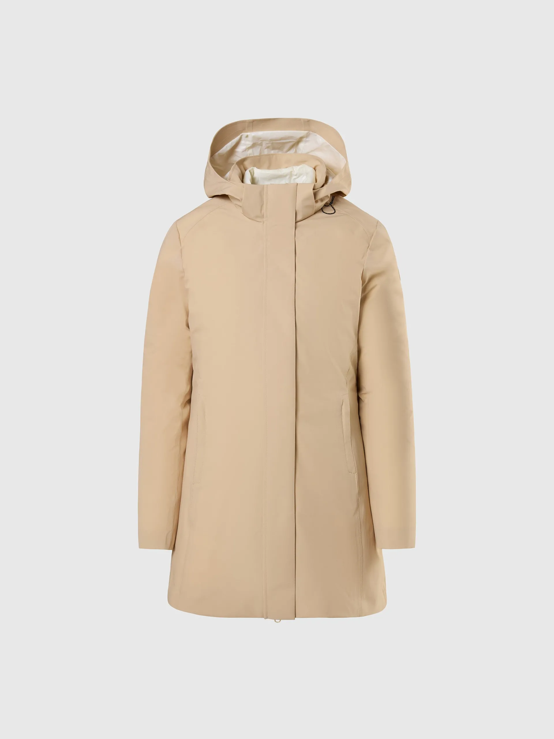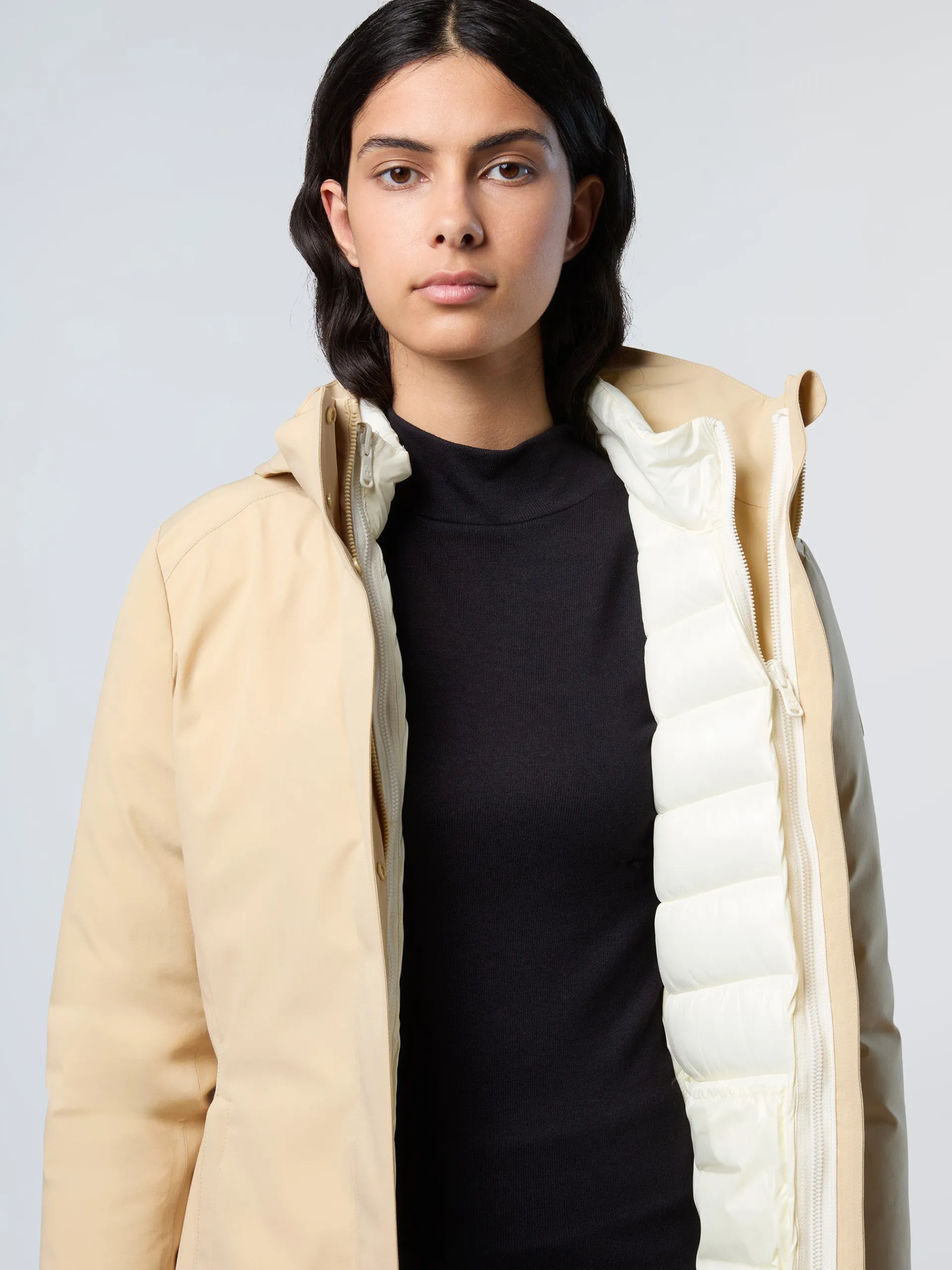Dartmouth è il cappotto da donna multifunzionale, elegante e accogliente. Il modello si caratterizza per il design 3 in 1 con guscio esterno in nylon riciclato 2 layer impermeabile, antivento e ultra traspirante che protegge dalle intemperie ed è gentile con il pianeta. Si caratterizza per il cappuccio rimovibile e l'imbottitura rimovibile, utilizzabile separatamente come piumino leggero. La sua silhouette femminile è rifinita dalle tasche con zip e dal logo North Sails sulla manica.