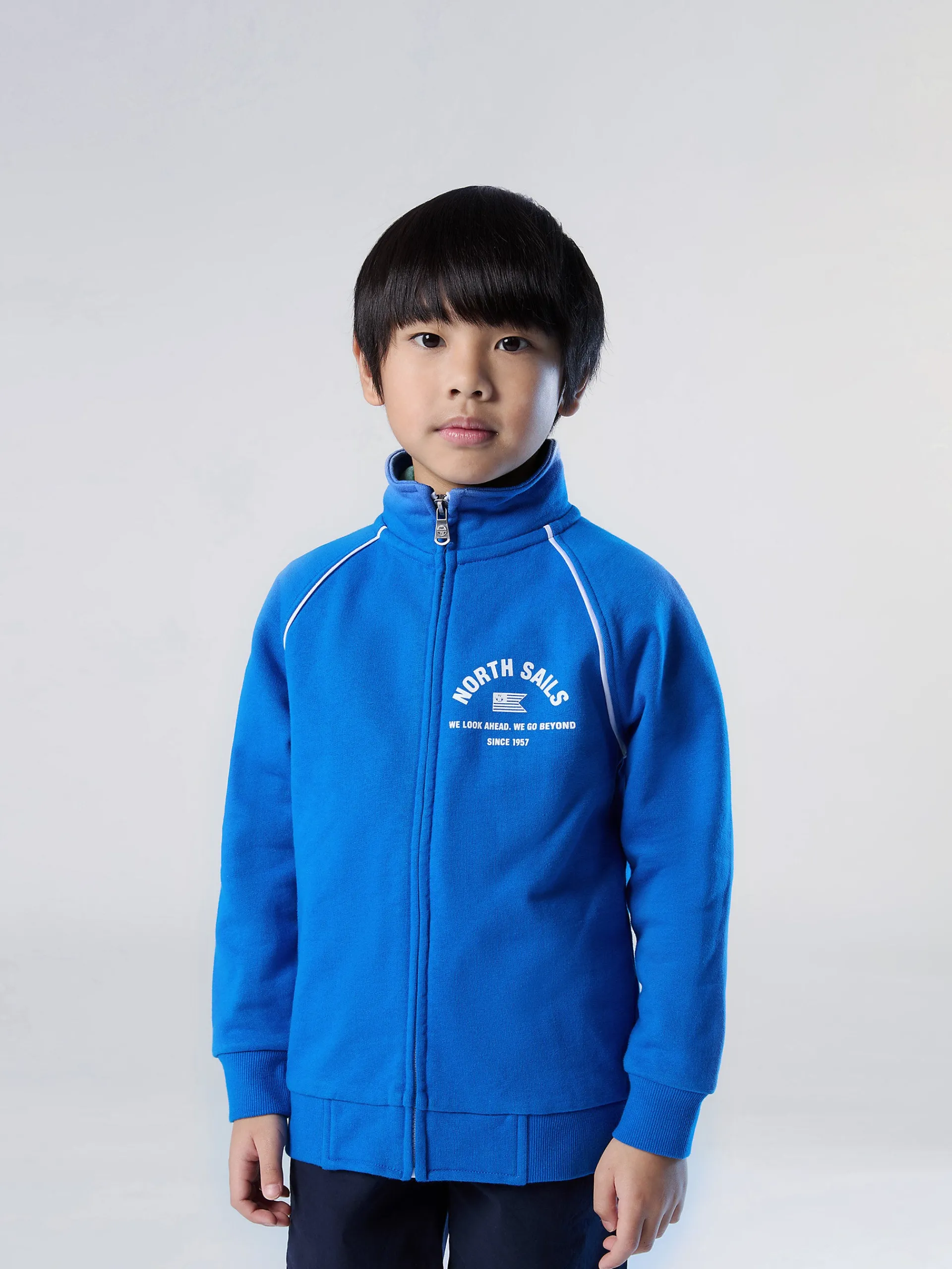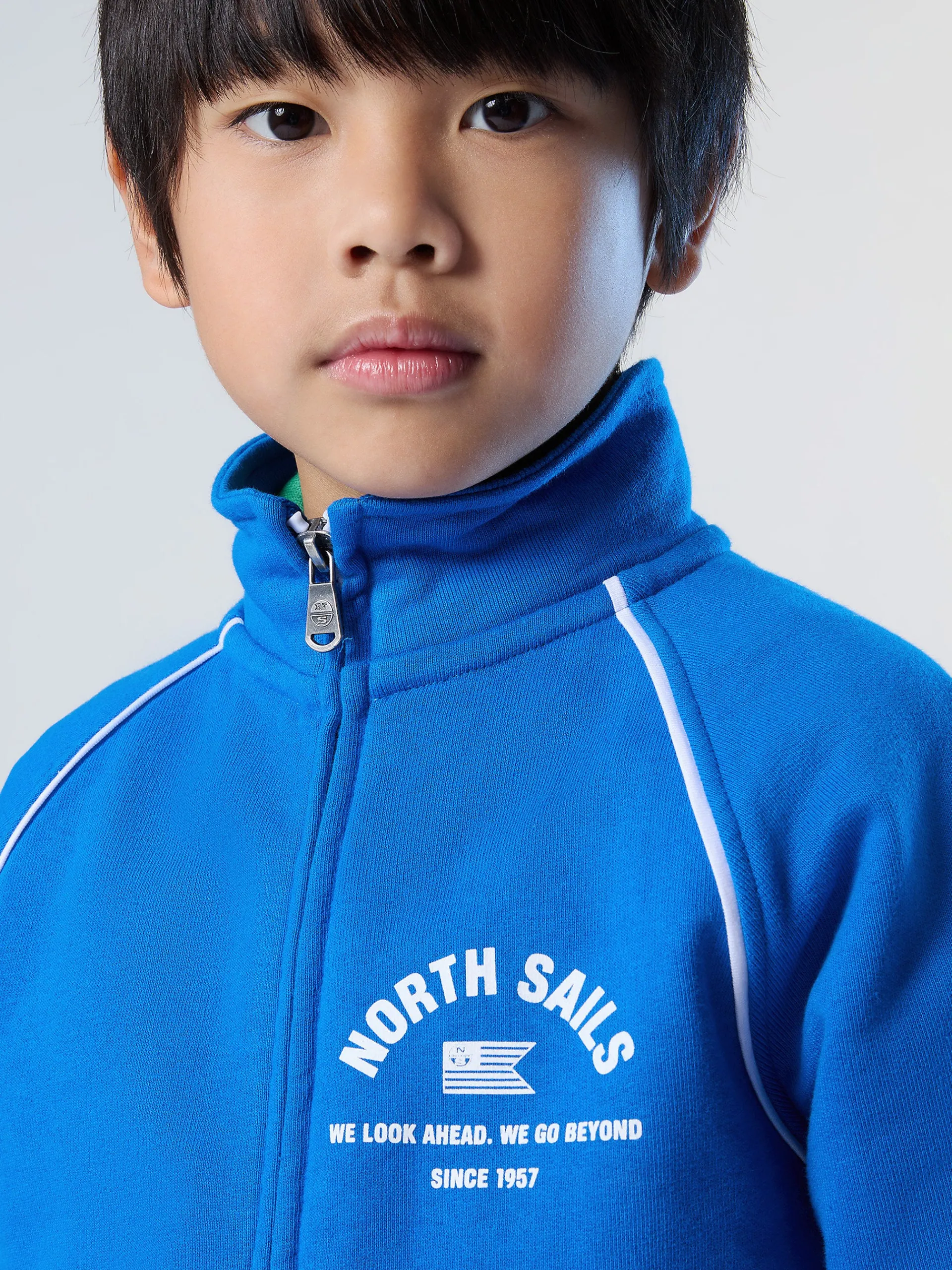 Versatile e facile da indossare, questa felpa è un essenziale del guardaroba casual dei bambini. Progettato pensando allo stile e al Pianeta, il modello con cappuccio e zip è realizzato in 100% cotone organico. Le maniche raglan con profilo a contrasto e il collo alto a costine danno un tocco sportivo, mentre la stampa sul petto celebra il nostro motto "Go Beyond".
