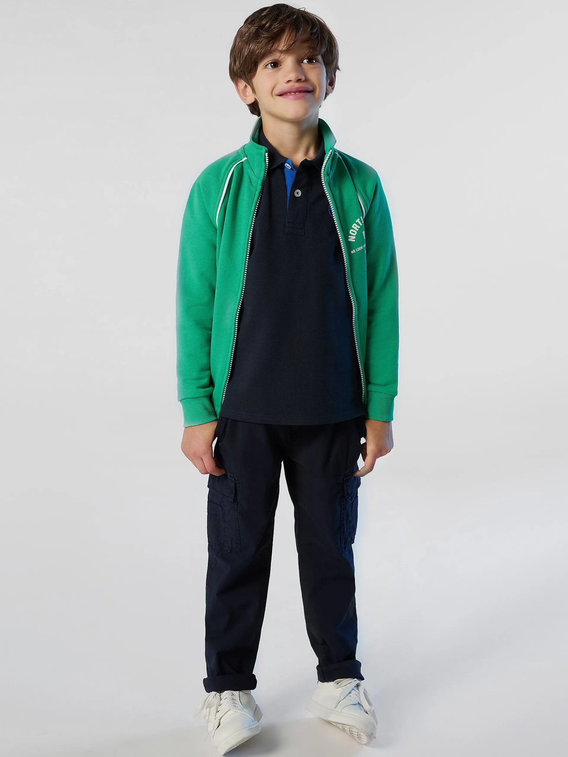 Versatile e facile da indossare, questa felpa è un essenziale del guardaroba casual dei bambini. Progettato pensando allo stile e al Pianeta, il modello con cappuccio e zip è realizzato in 100% cotone organico. Le maniche raglan con profilo a contrasto e il collo alto a costine danno un tocco sportivo, mentre la stampa sul petto celebra il nostro motto "Go Beyond".