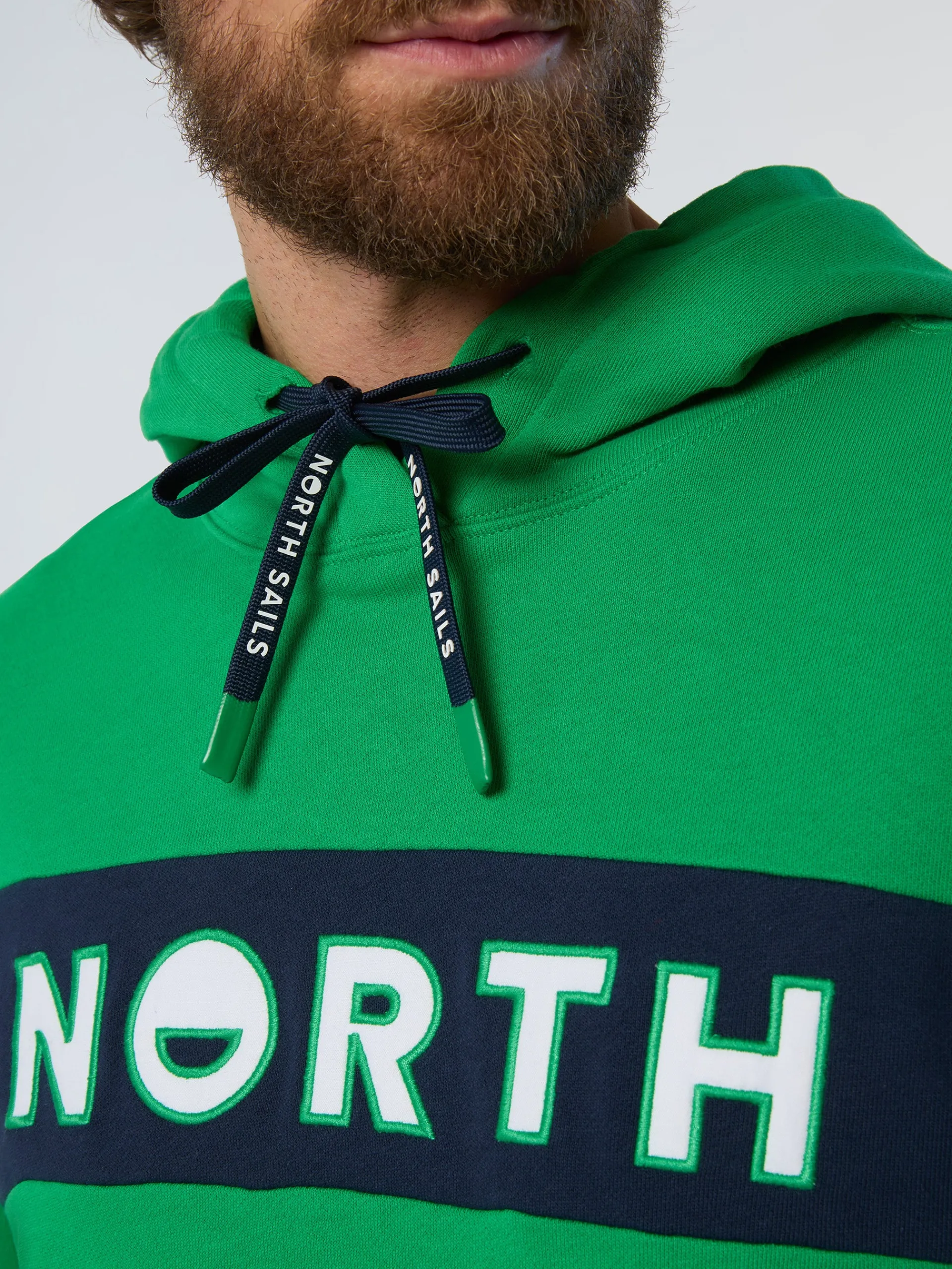 Un design accogliente d'ispirazione sportswear intriso di energia North Sails. Questa felpa hoodie da uomo è realizzata in cotone organico a basso impatto ambientale ed è aggiornata con la banda a contrasto in twill che crea un deciso motivo color block. Il design dinamico con cappuccio e tasche a marsupio è rifinito con bordi a costine per la massima aderenza.
