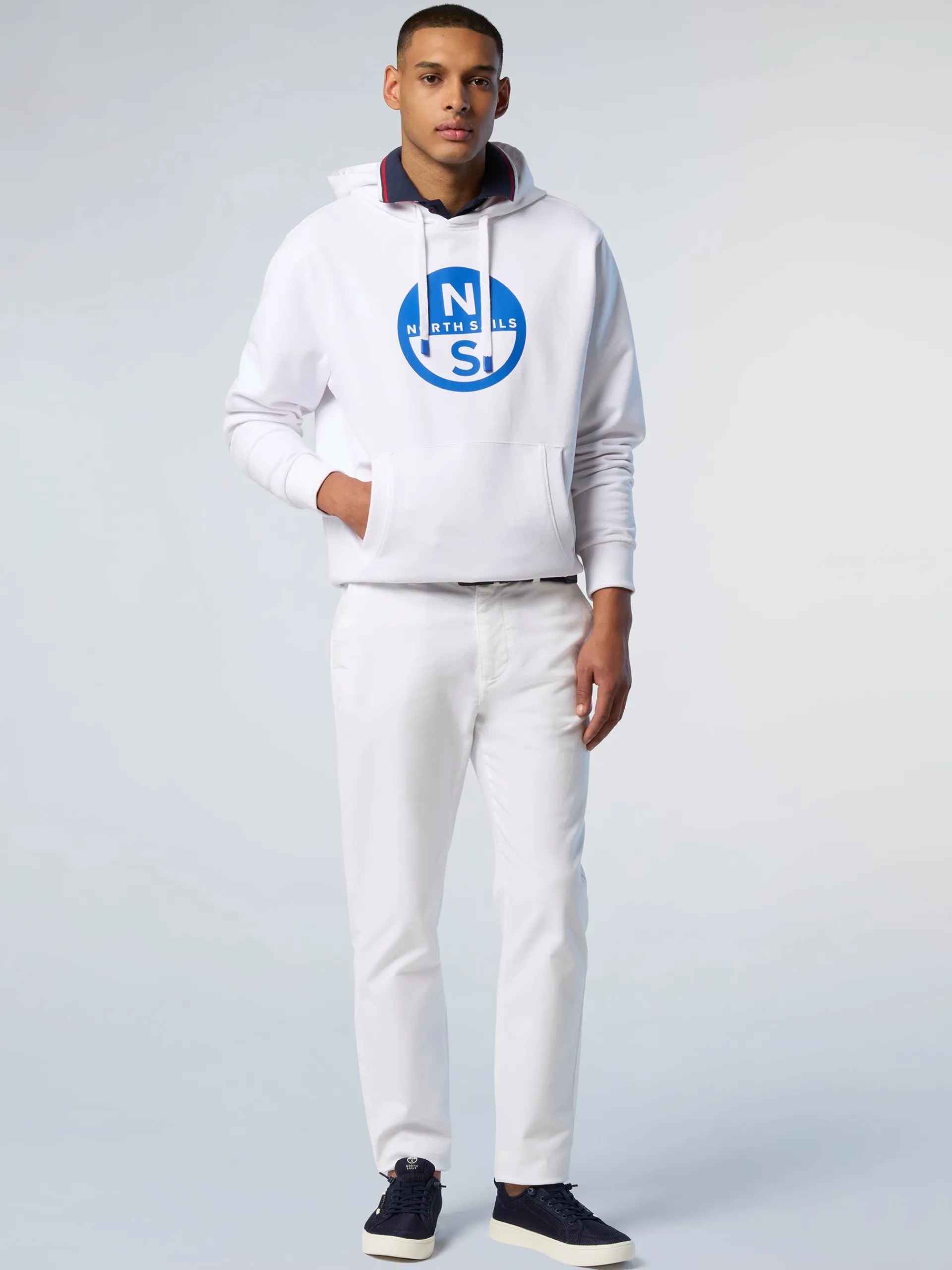 Un essenziale del guardaroba casual che trasmette in ogni dettaglio lo spirito North Sails. Questa felpa hoodie da uomo è progettata per combinare comfort e rispetto per il pianeta. Il modello è realizzato in cotone organico che riduce le emissioni e il consumo di acqua. Si caratterizza per il maxi logo che dà un aggiornamento grafico al look e la pratica tasca a marsupio.
