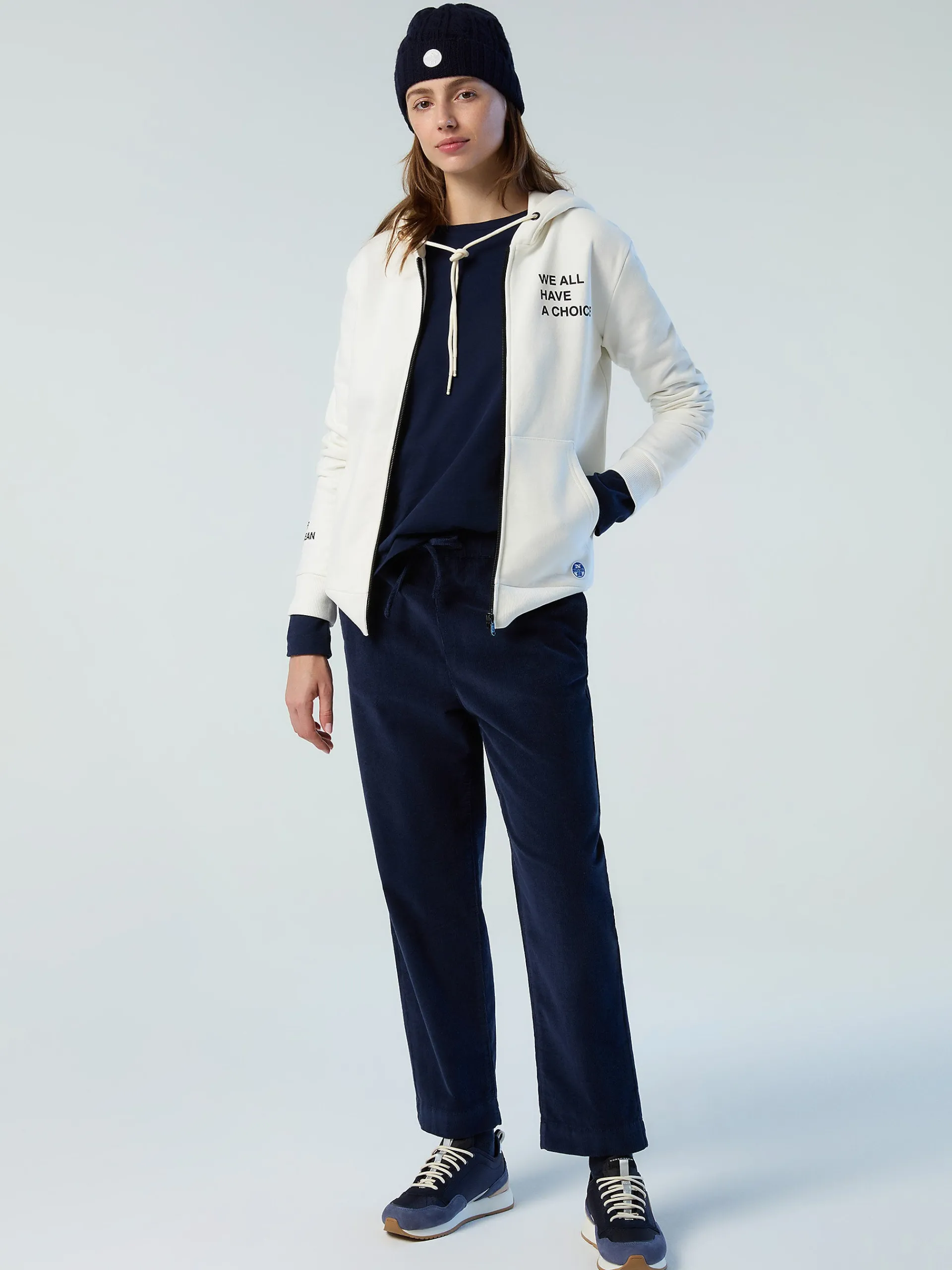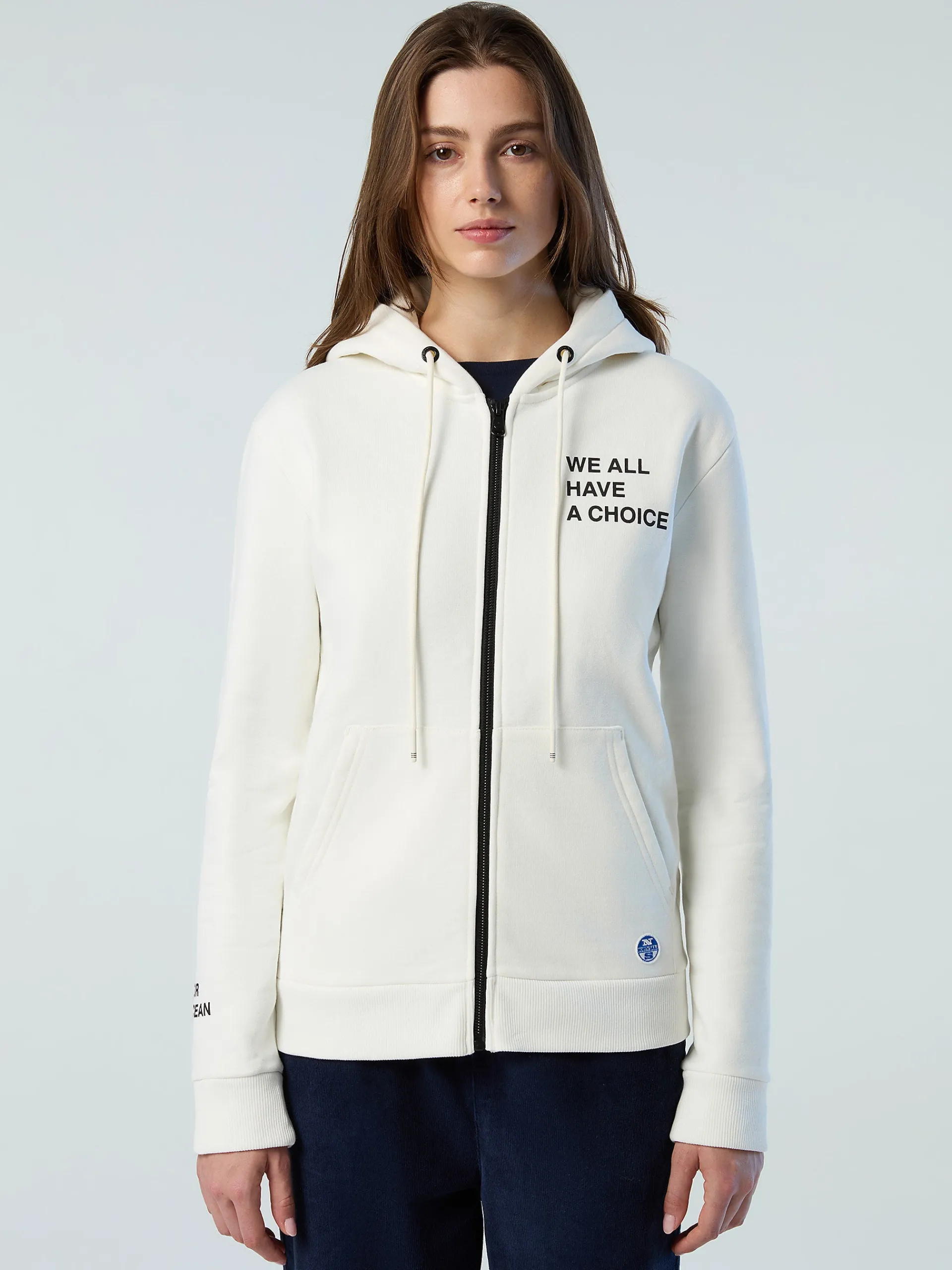 Questa felpa da donna con maxi stampa lettering esprime il tuo impegno per gli oceani. Il modello è realizzato in cotone organico che riduce le emissioni e lo spreco di acqua rispetto alle fibre tradizionali. Si caratterizza per la zip a doppio cursore comoda per i look a strati e il logo North Sails sulla tasca.