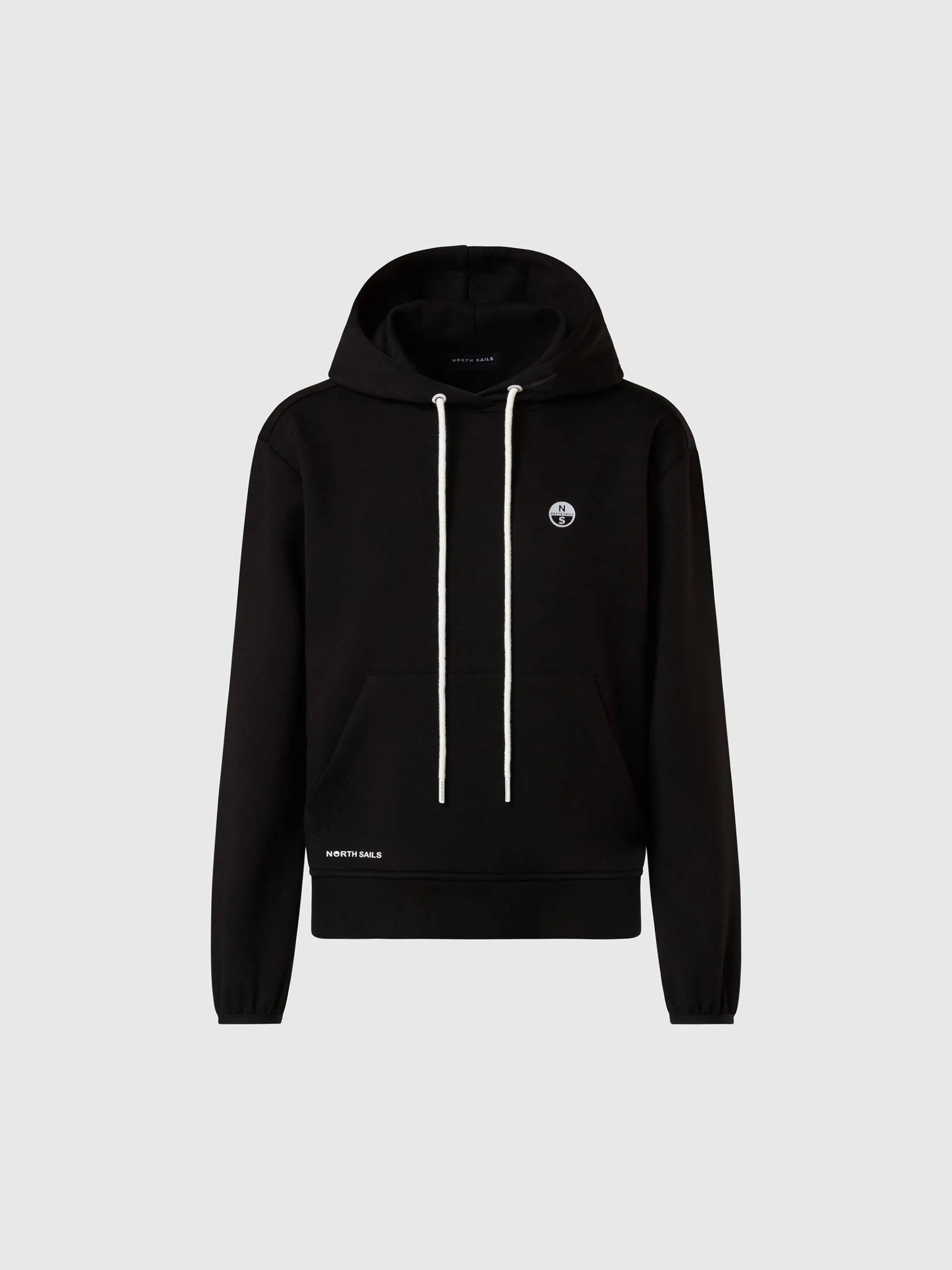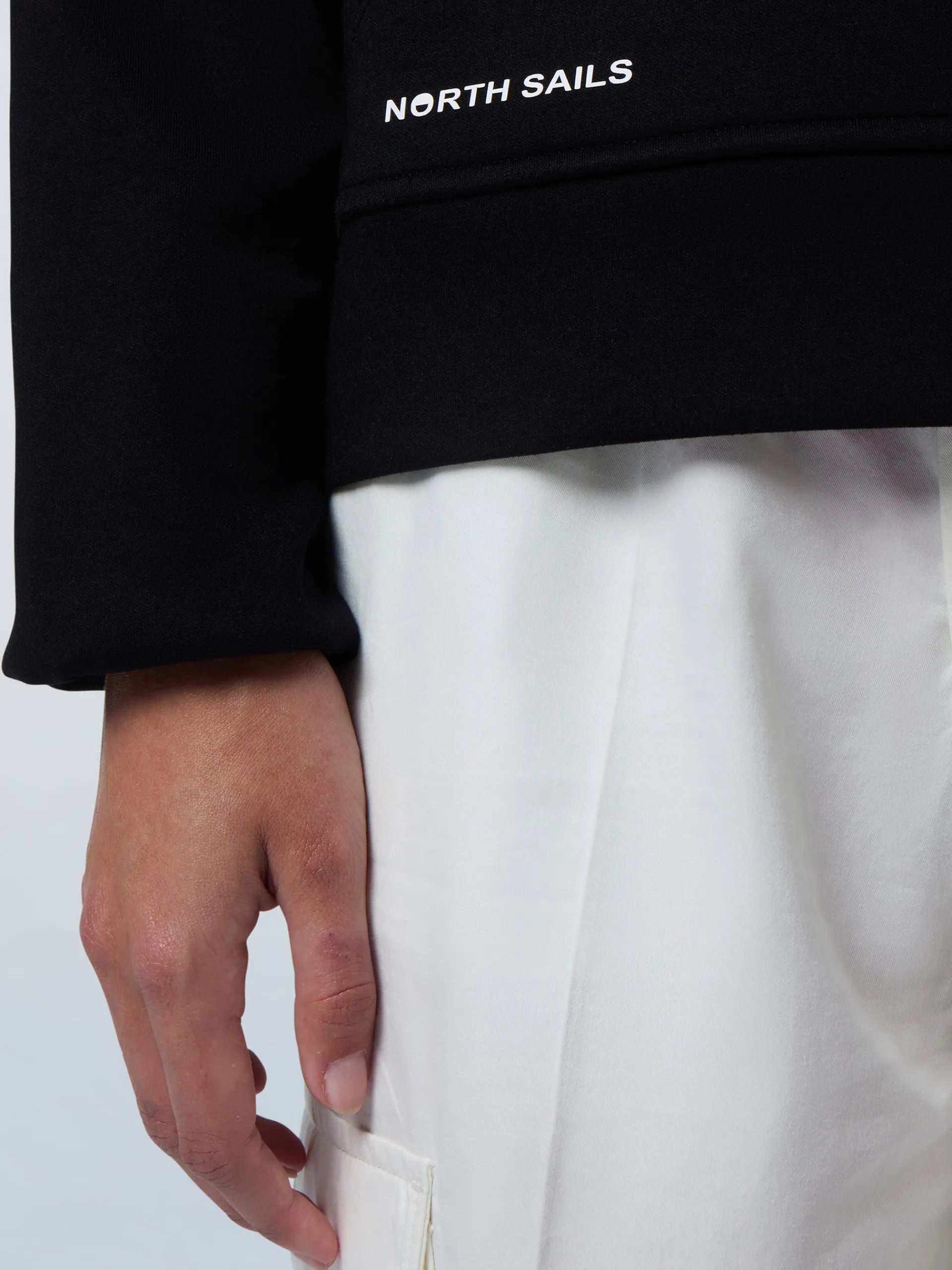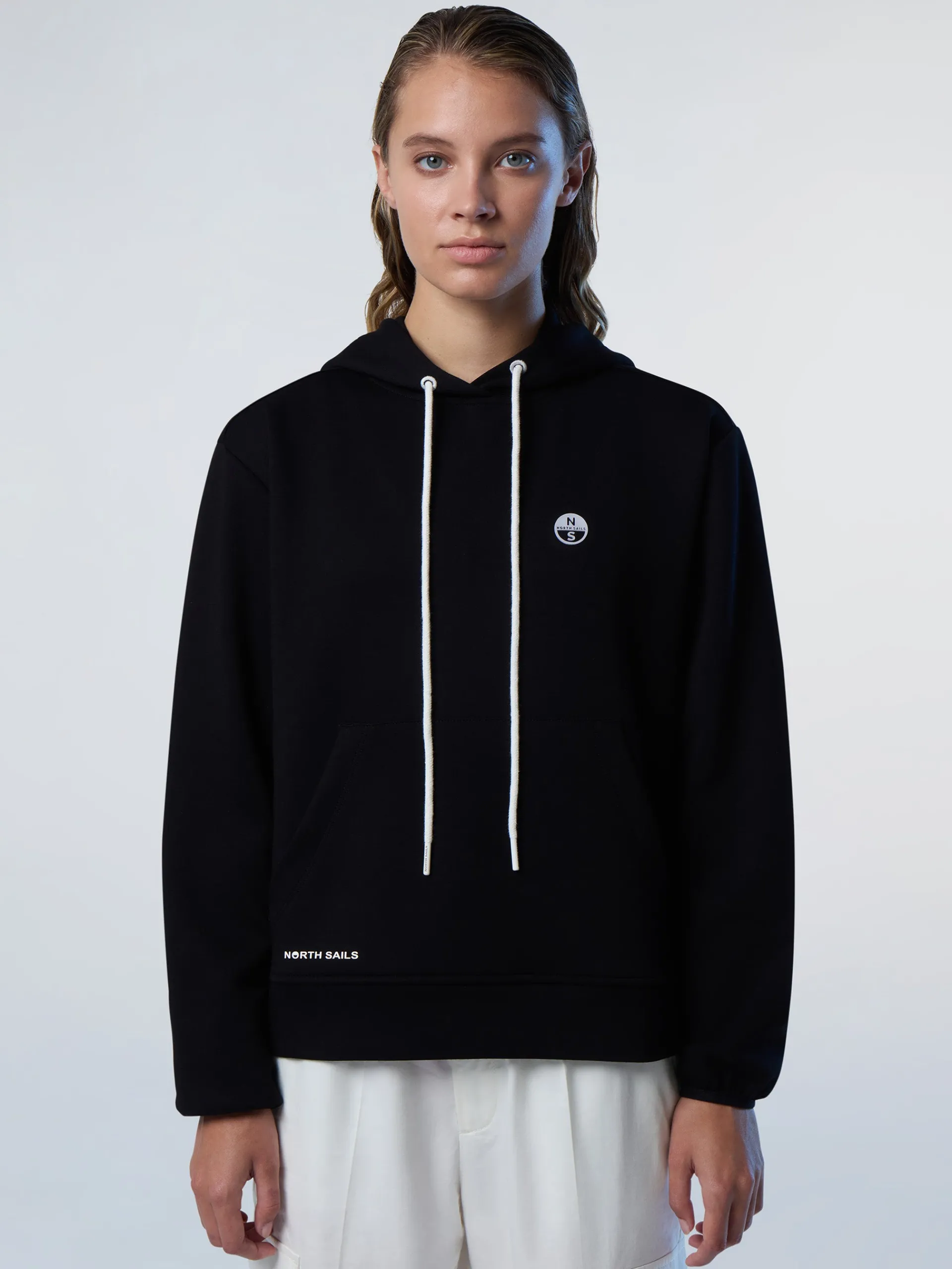 Perfetta per le avventure urbane e le attività all'aria aperta, questa felpa da donna unisce stile e praticità. Il modello è realizzato in misto cotone tecnico dall'aspetto luminoso e si caratterizza per il cappuccio e le comode tasche a marsupio. Logo in gomma sul petto per un tocco distintivo North Sails.